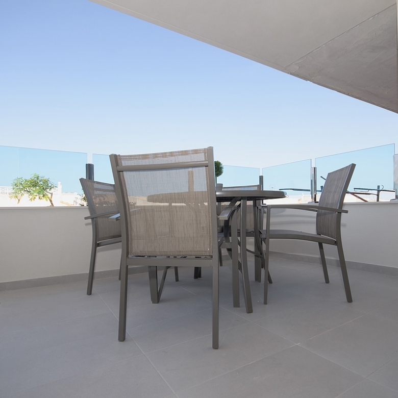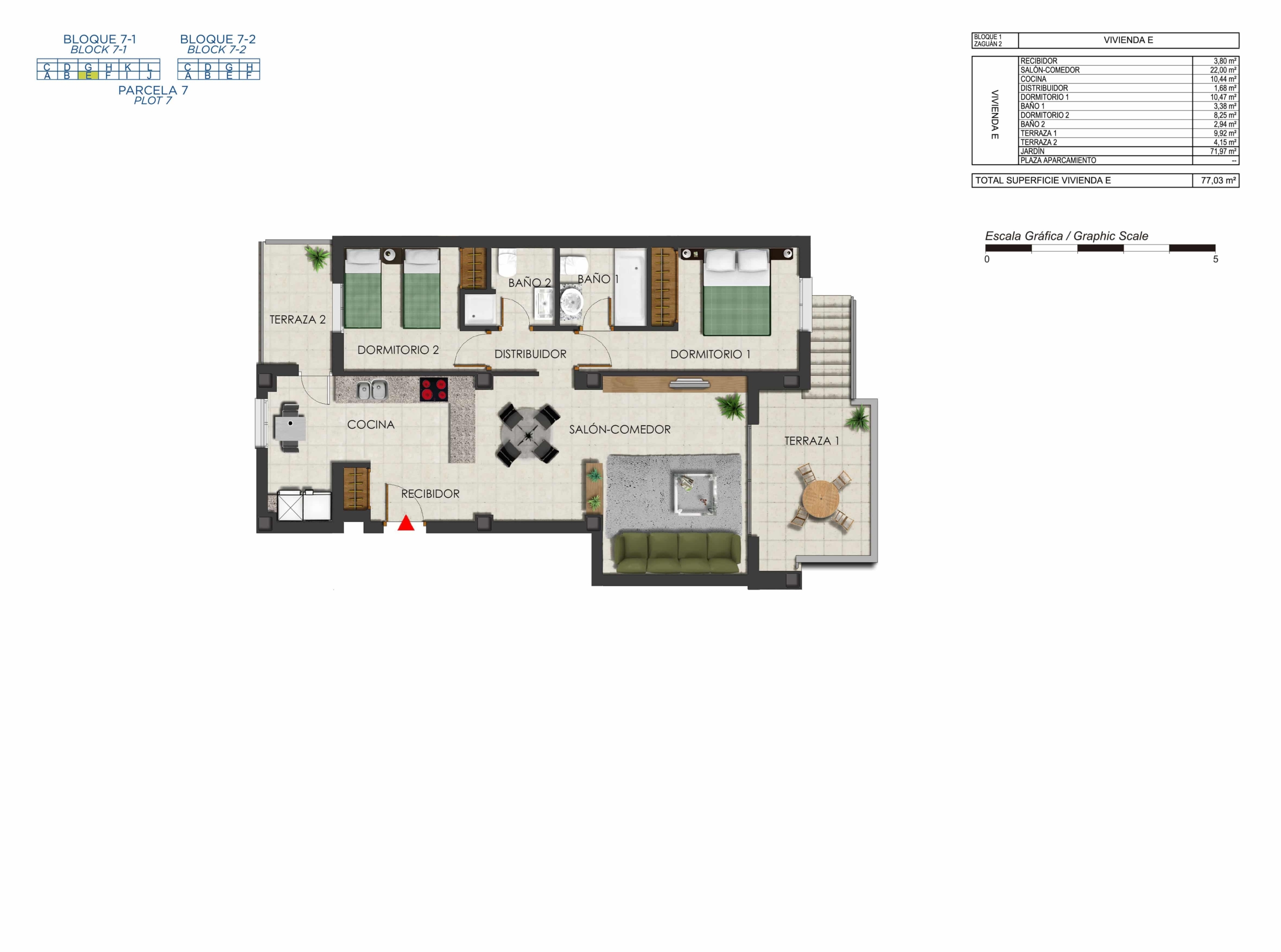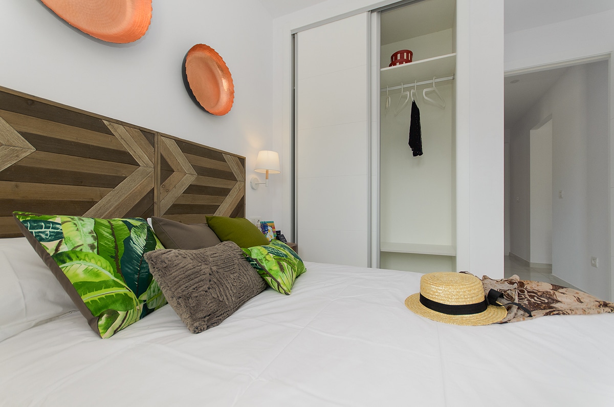 In the interior distribution, we find 2 bedrooms with fitted wardrobes, 2 full bathrooms (1 en suite), a large living room and an open kitchen area, and covered terraces.