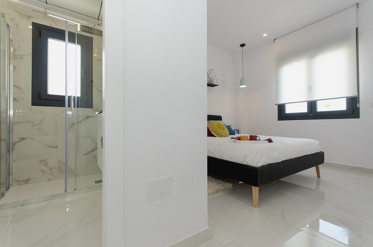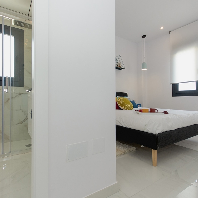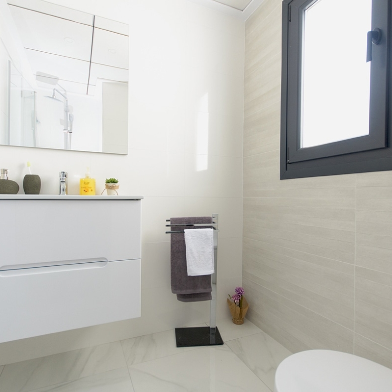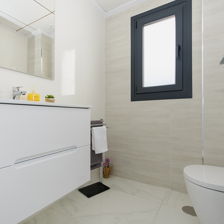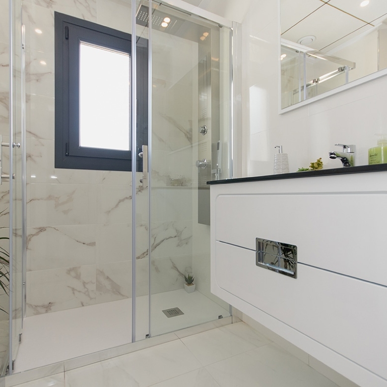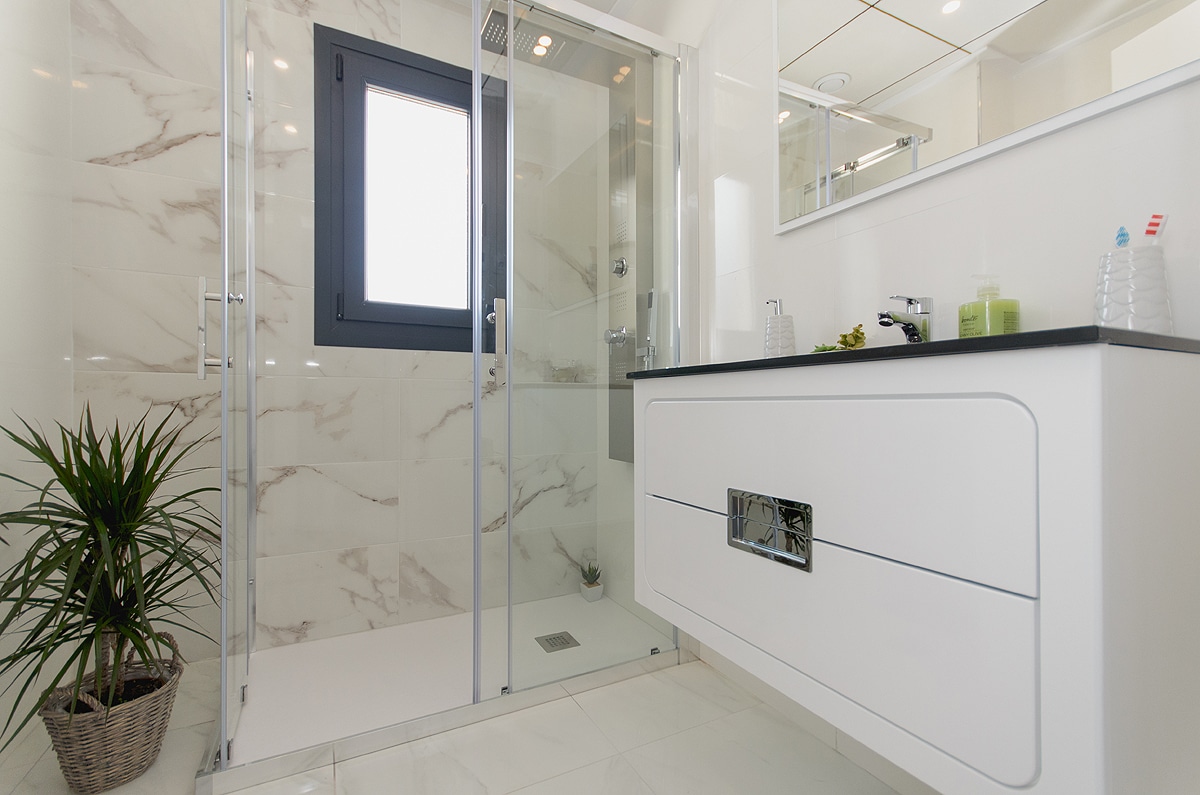 The qualities and standard finishes of this new work are excellent: all homes include automated shutters, underfloor heating in bathrooms, pre-installation of air conditioning ducts, hydromassage column in the bathroom…