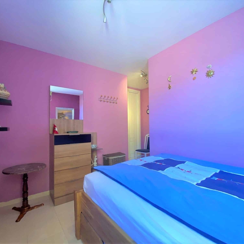 The bedroom is a peaceful retreat, featuring a comfortable double bed, ample closet space, and a charming ambiance. It provides a soothing sanctuary where you can escape the cares of the day and indulge in a restful night’s sleep.