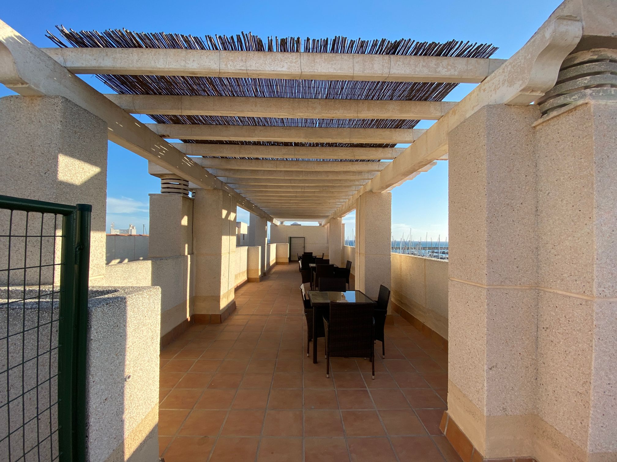 Duplex house with 4 bedrooms and 3 bathrooms, which has a living room, an equipped independent kitchen and a terrace. Located in the Nautilus Building, on the first line of the Marina, 250 meters from the beach and next to the Almerimar Golf Course. It has a solarium area with rooftop pools and fantastic views of the port and the sea.