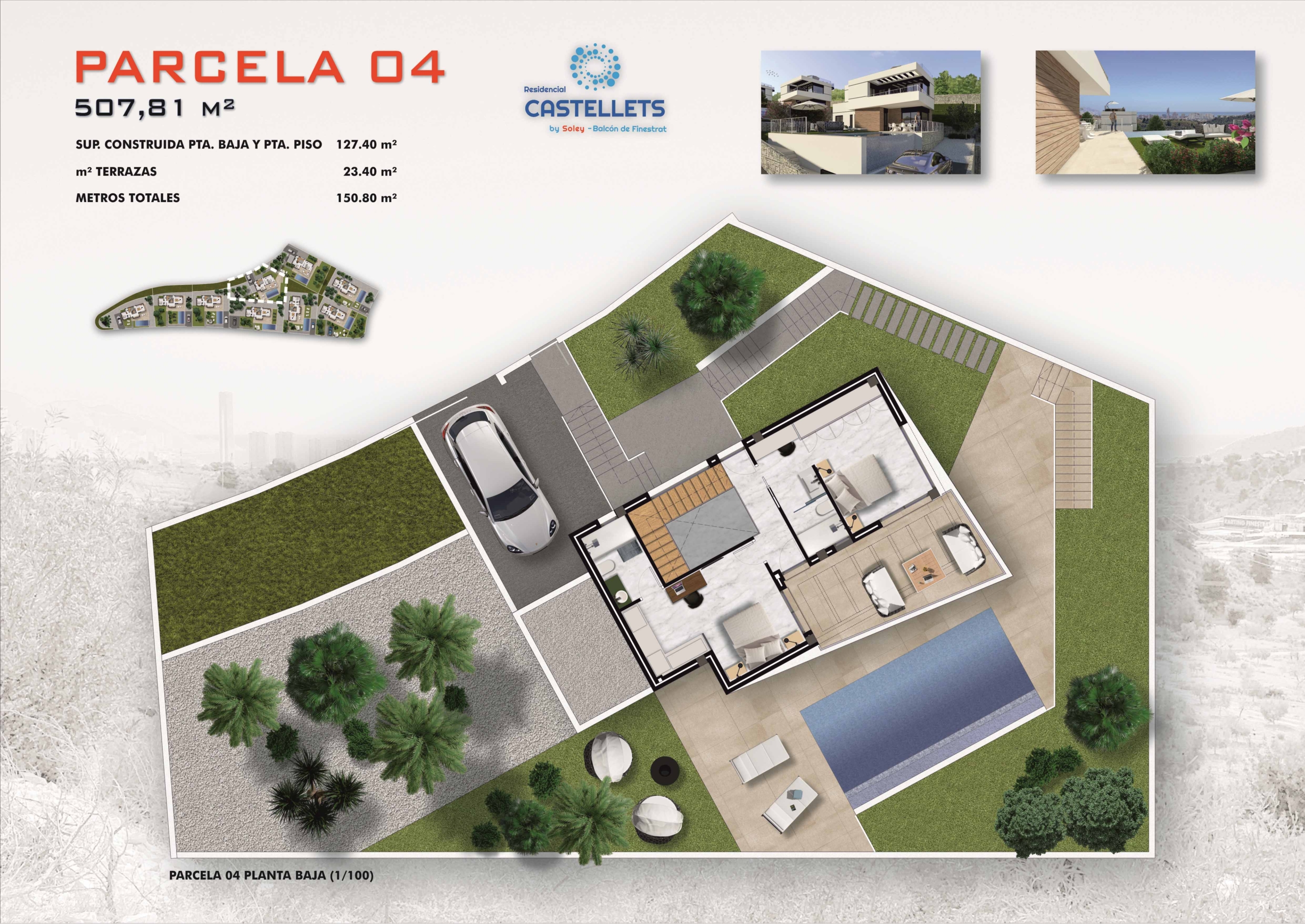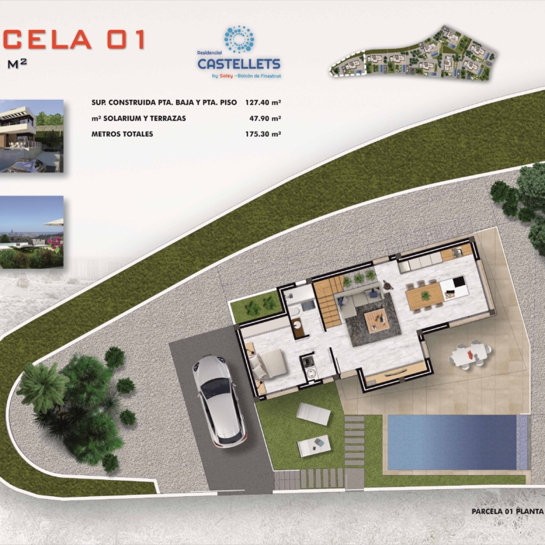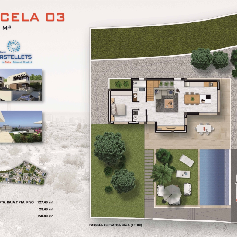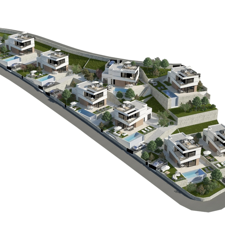 Brand New 9 detached villas with 3 bedrooms 3 bathrooms just minutes from the Golf Bay and just 10 minutes drive from the city of Benidorm. Balcon de Finestrat is a residential complex with several housing models to satisfy all tastes.