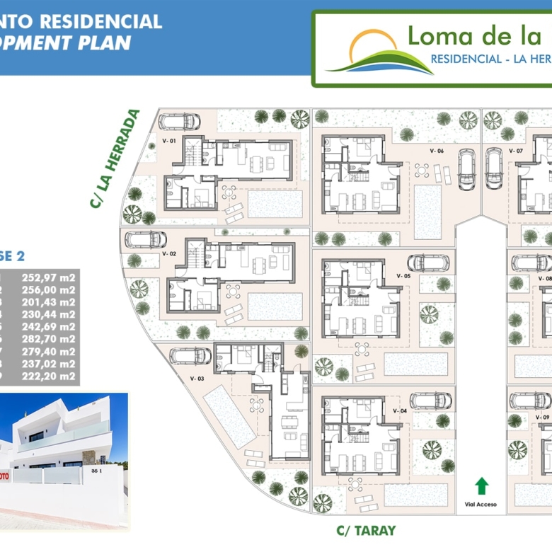New residential of detached villas with private plot and pool.