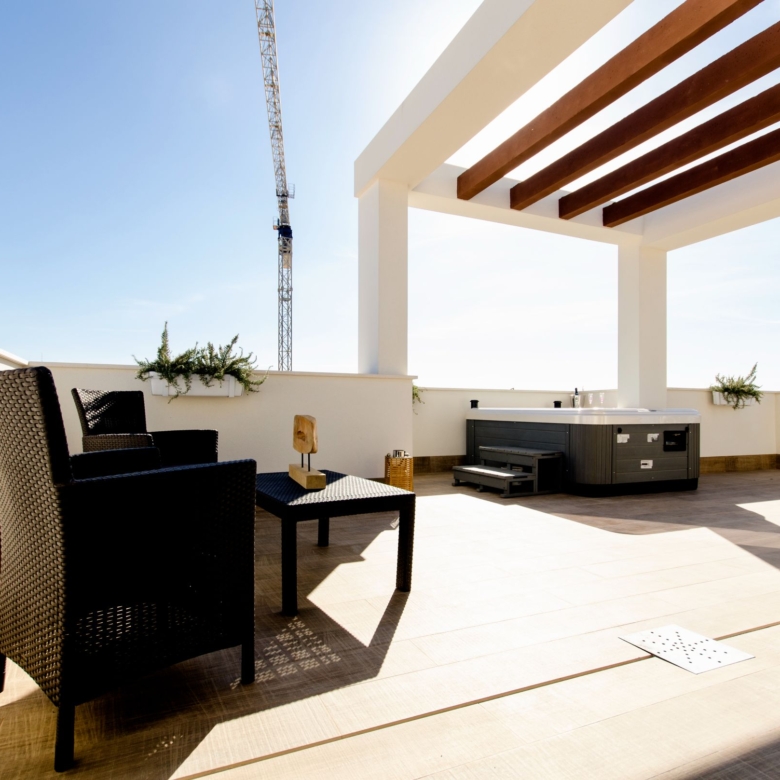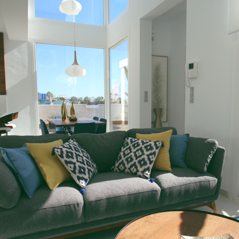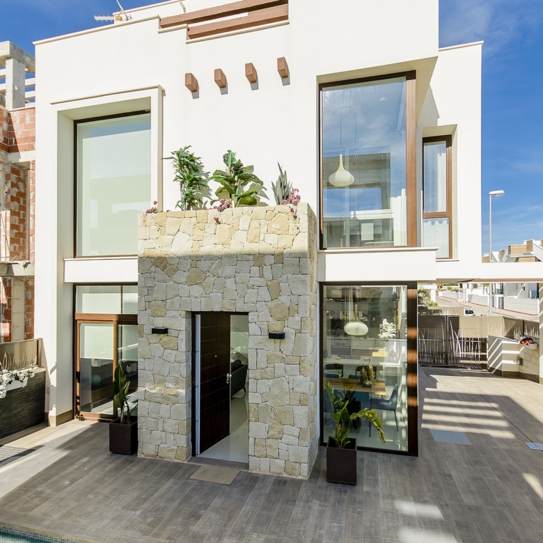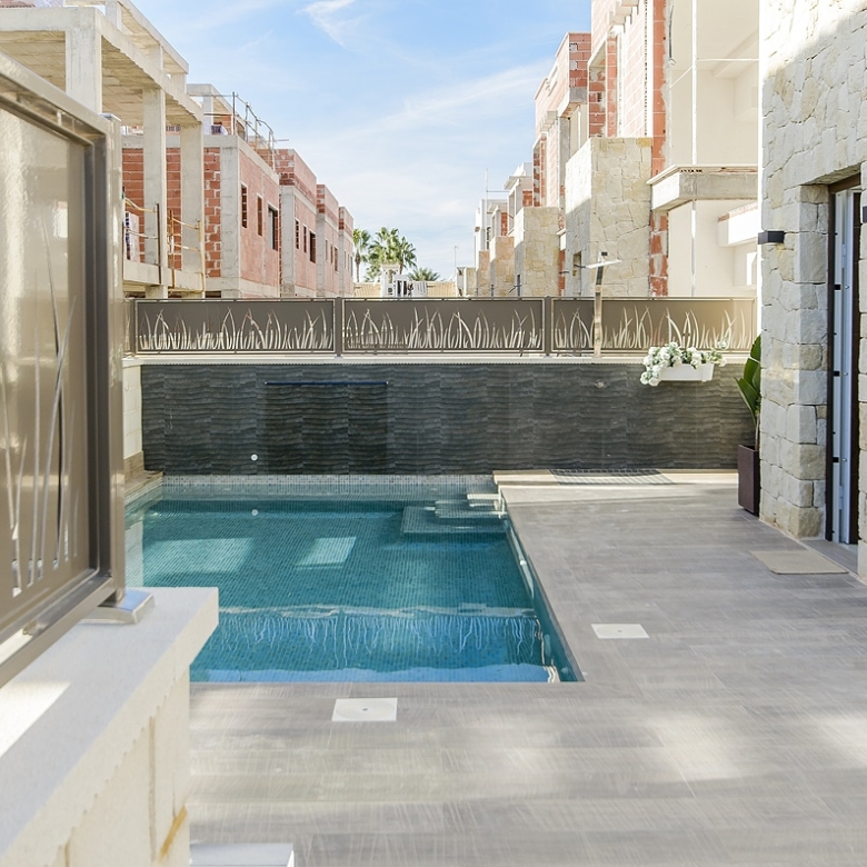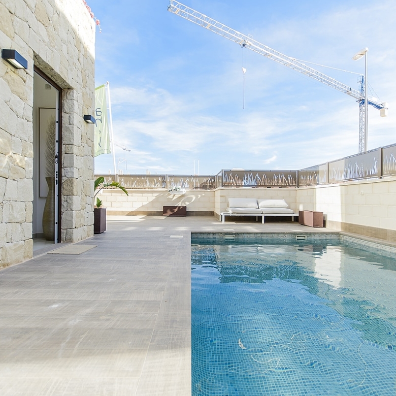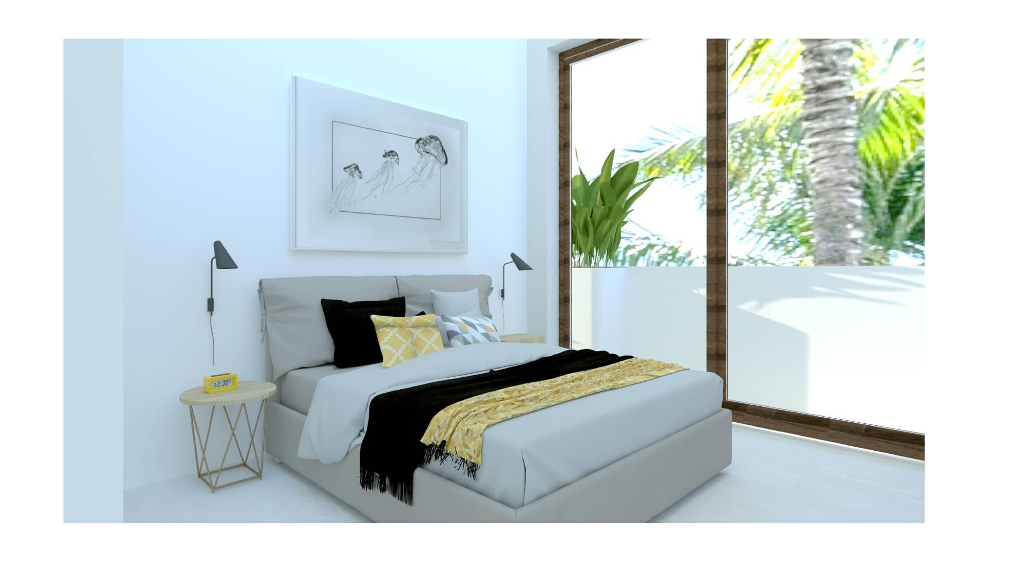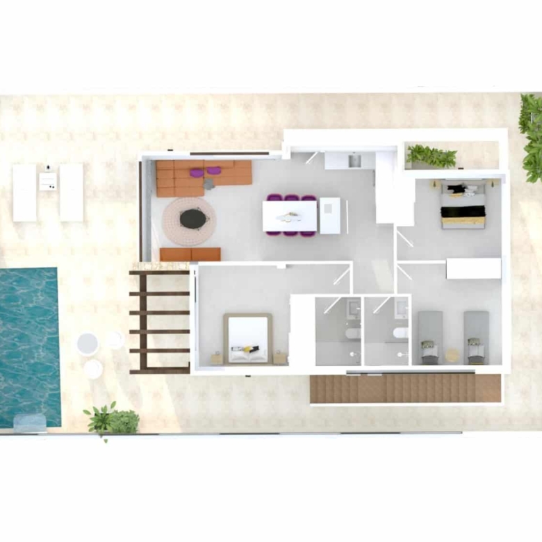 Laguna Azul, double-height, consisting of three bedrooms and three bathrooms. And Modelo Estrella, three bedrooms with two bathrooms, all on one floor. Both with a pool of 6×3 meters and on a plot of 230 meters approximately. Moreover, it will be placed just 200 metres from Vera Beach.