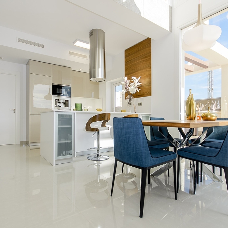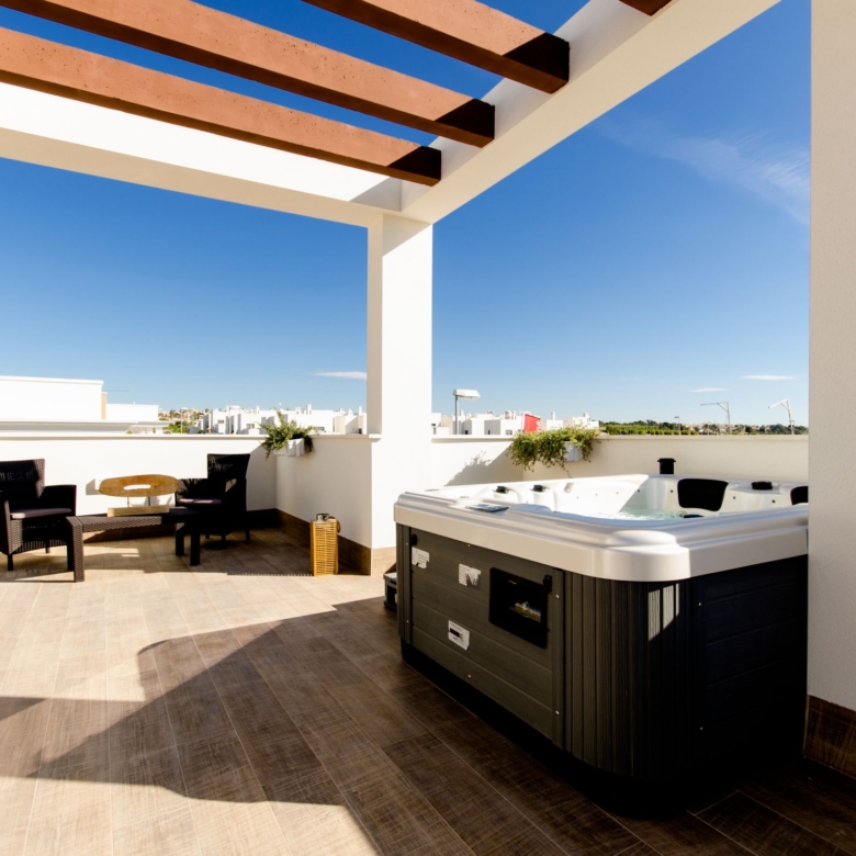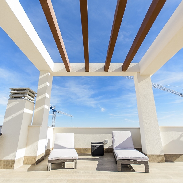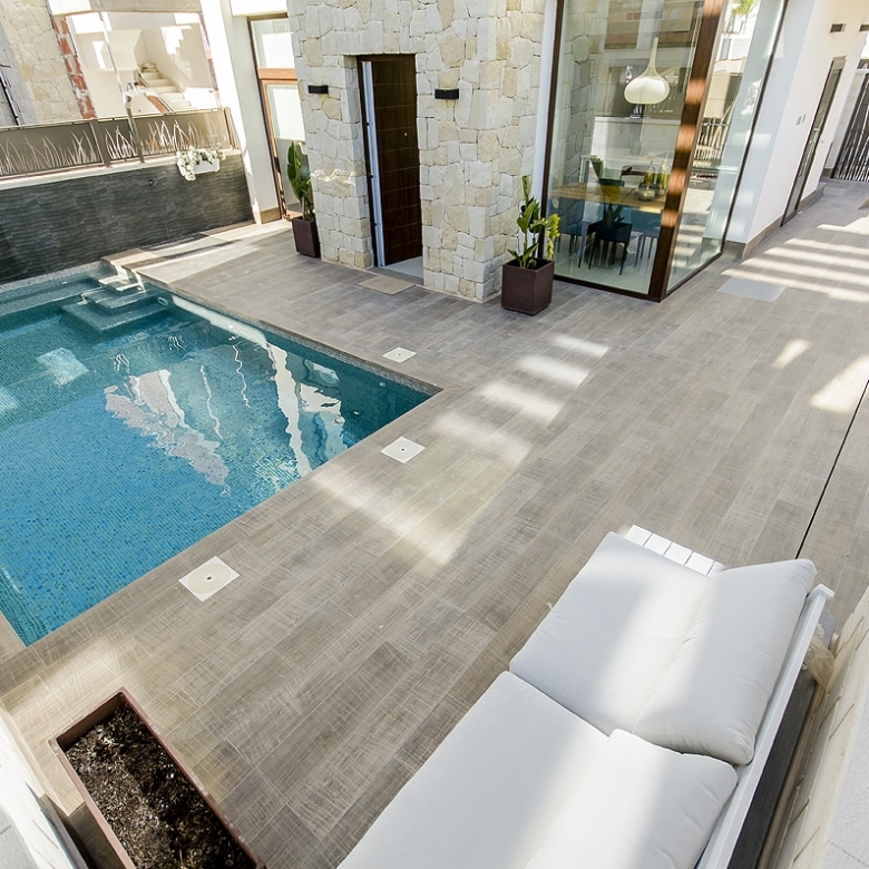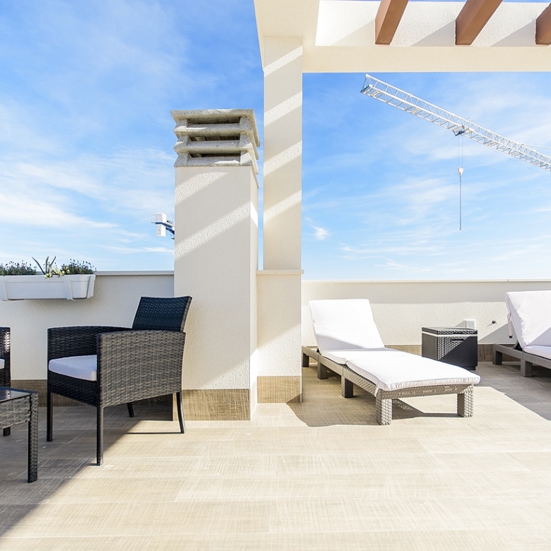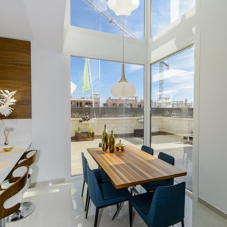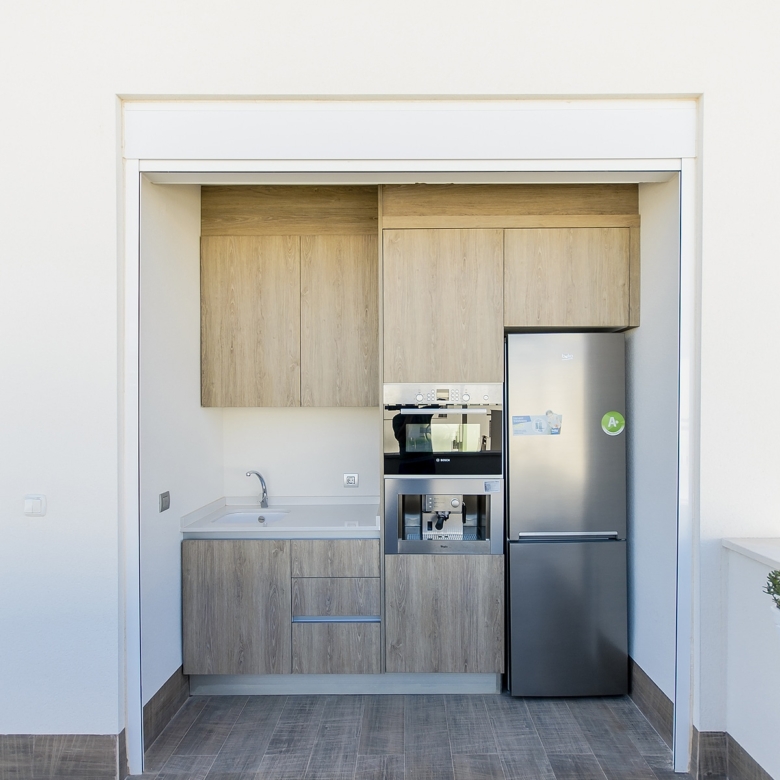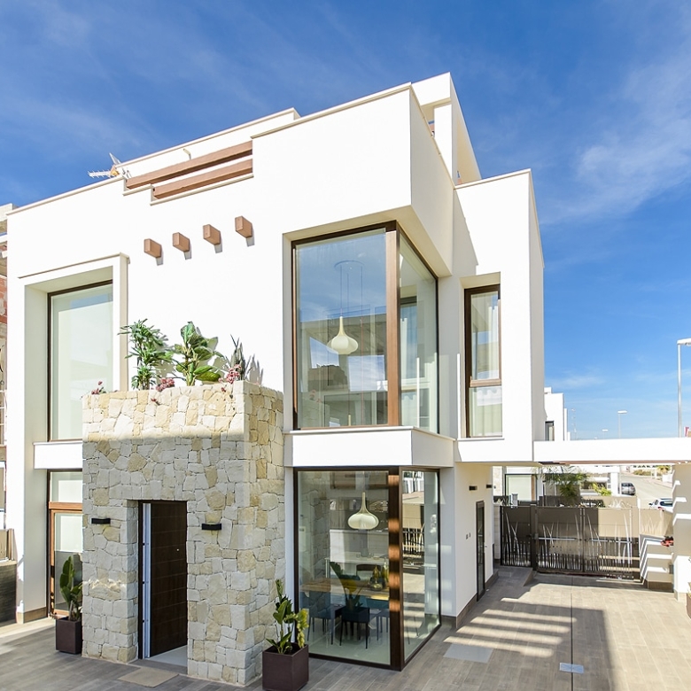 Laguna Azul, double-height, consisting of three bedrooms and three bathrooms. And Modelo Estrella, three bedrooms with two bathrooms, all on one floor. Both with a pool of 6×3 meters and on a plot of 230 meters approximately. Moreover, it will be placed just 200 metres from Vera Beach.