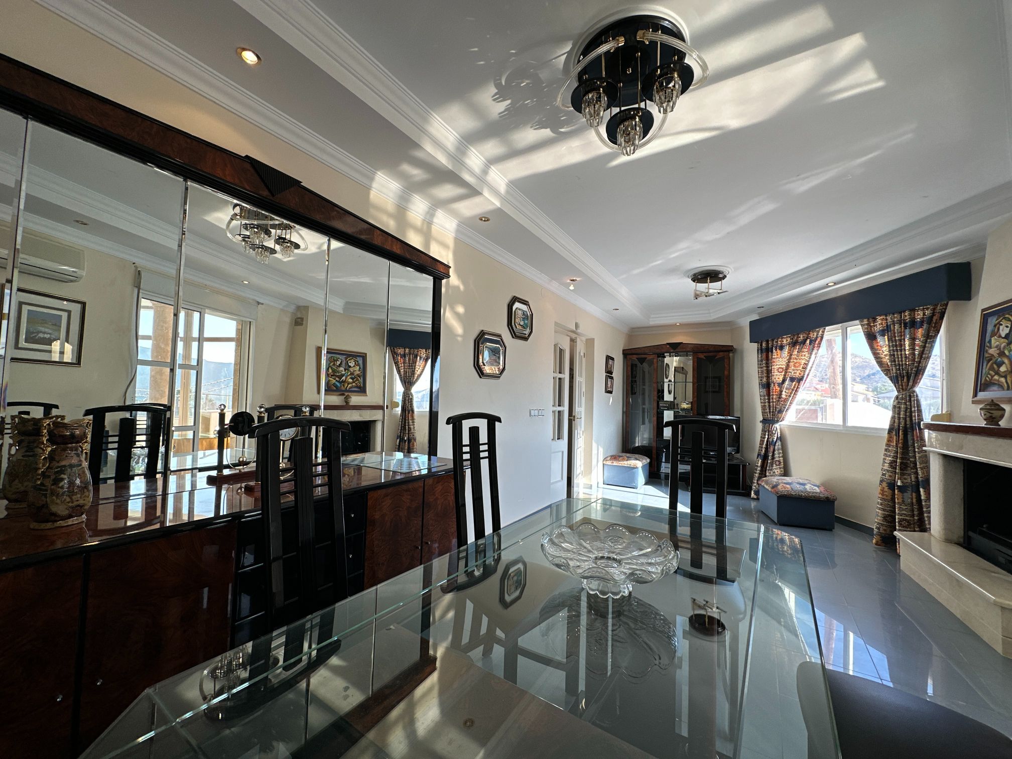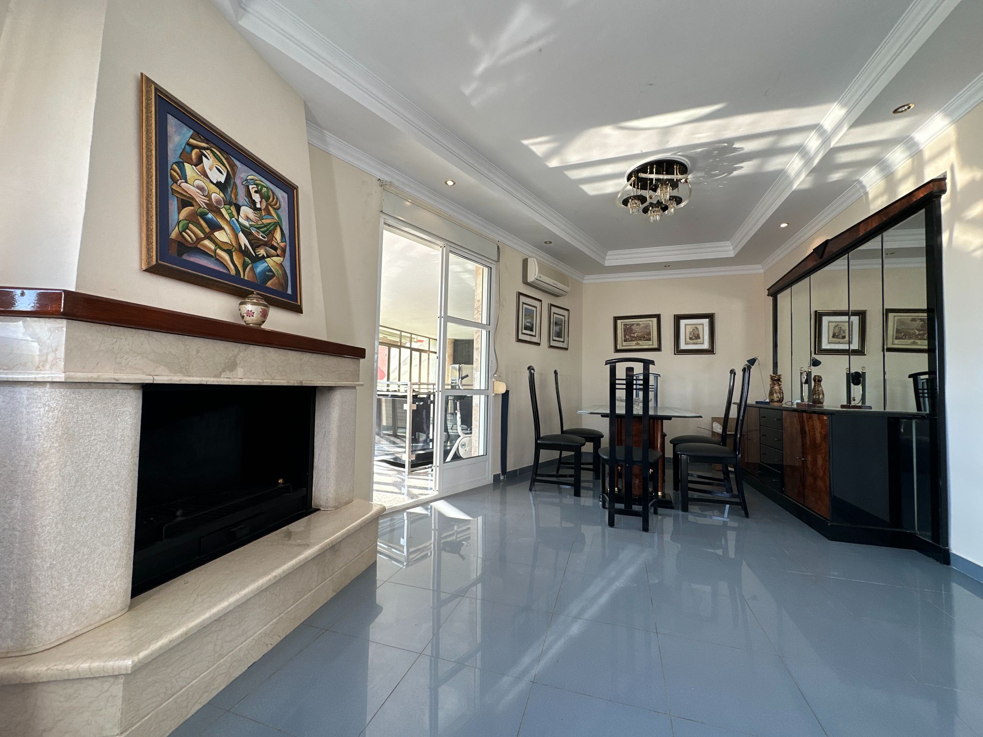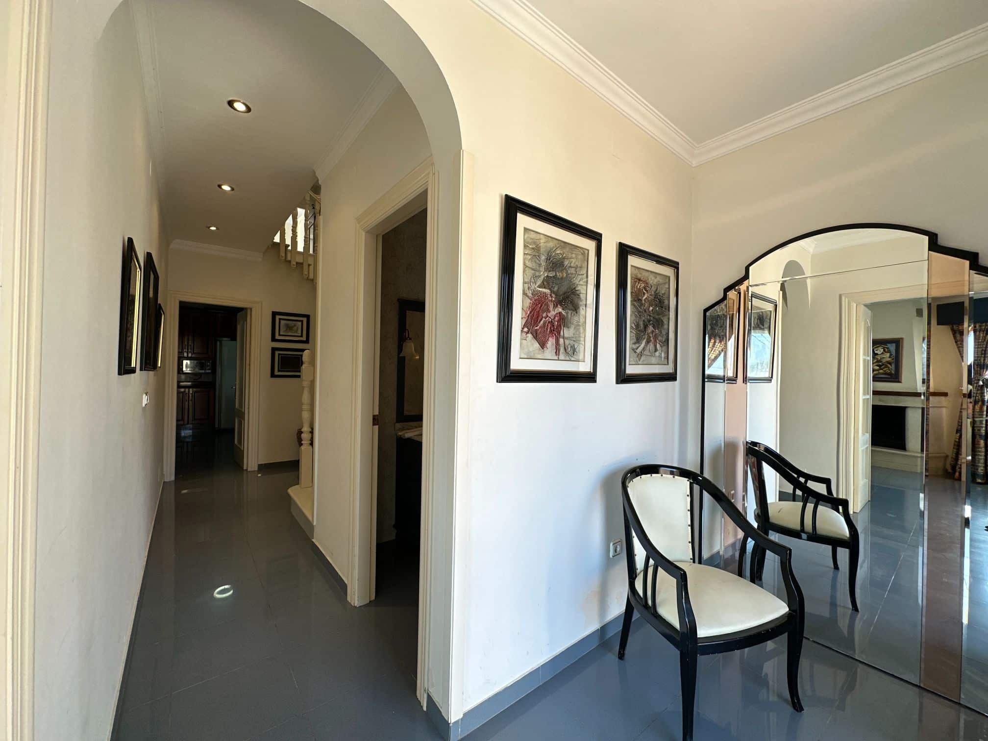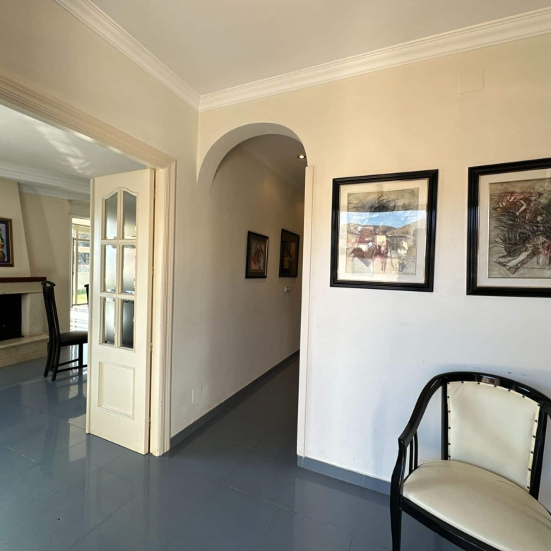 Upon entering the villa, you are greeted by a grand foyer that leads to the spacious main living area. The first of two large salons is a warm and welcoming space, featuring a stunning fireplace that creates a cozy atmosphere. The second salon is equally impressive and provides a perfect setting for intimate gatherings or formal occasions.