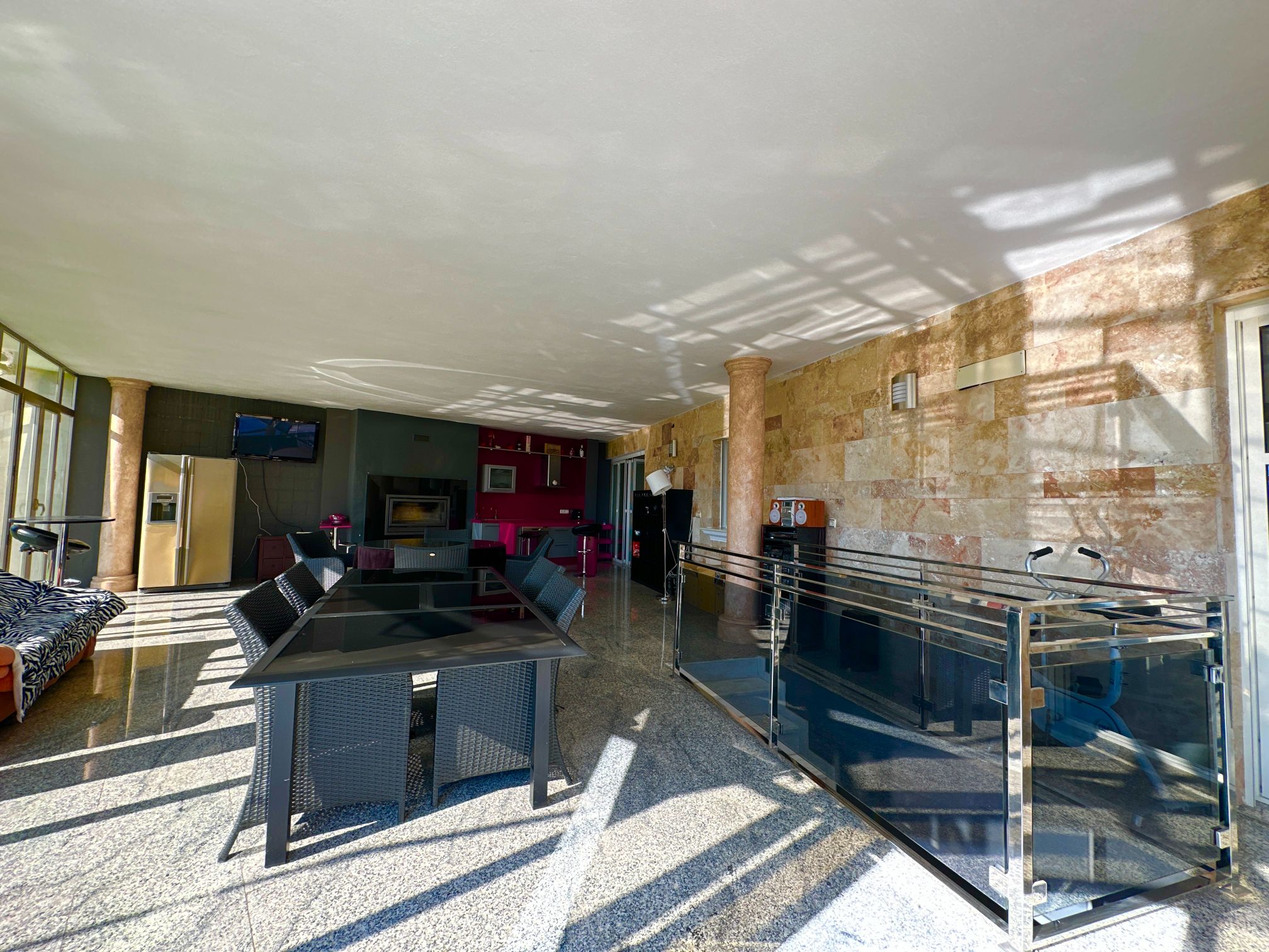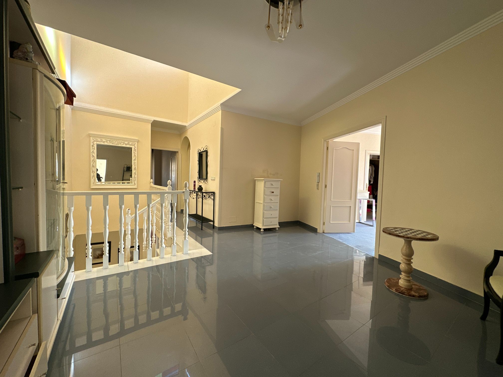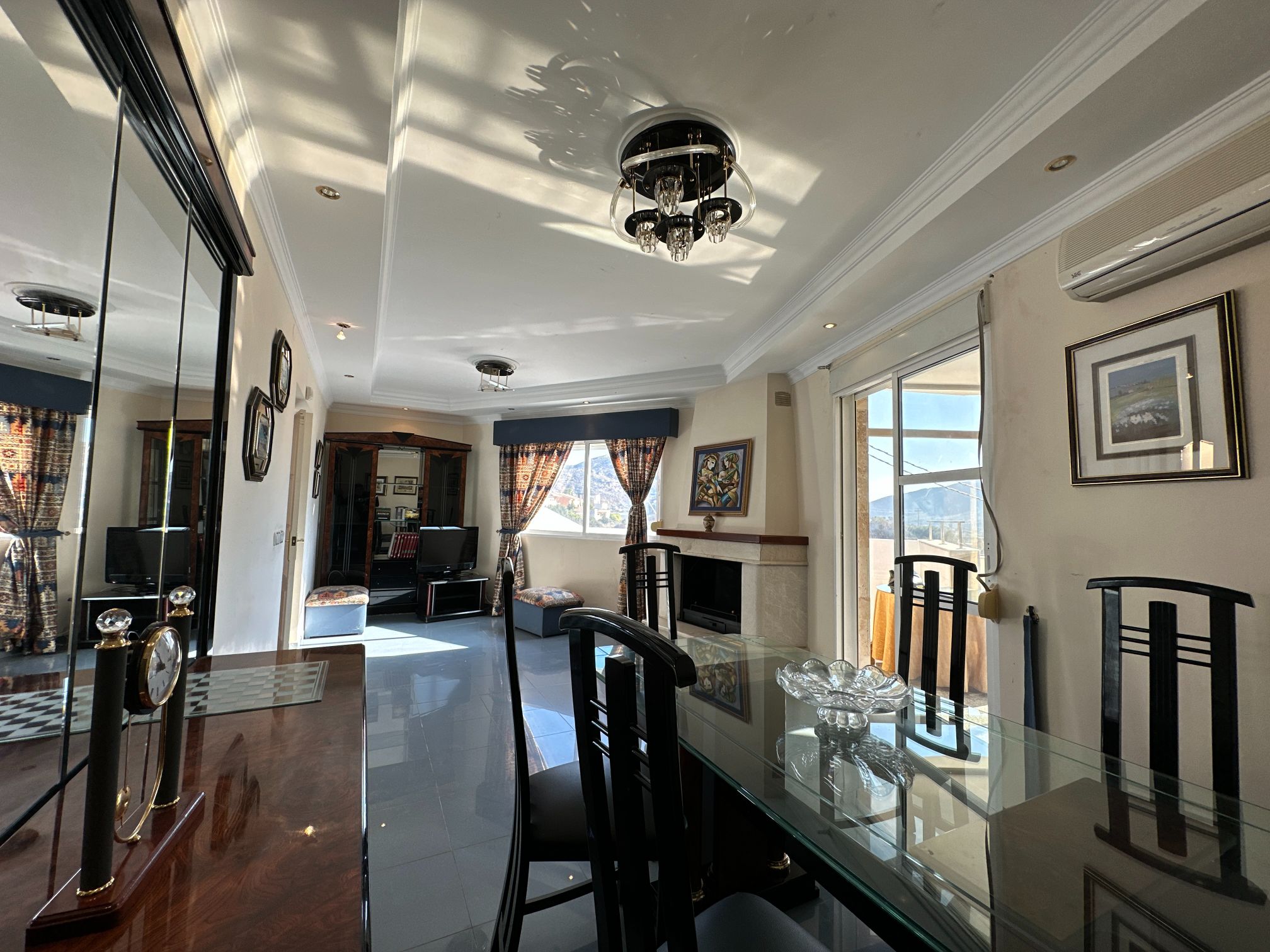 Upon entering the villa, you are greeted by a grand foyer that leads to the spacious main living area. The first of two large salons is a warm and welcoming space, featuring a stunning fireplace that creates a cozy atmosphere. The second salon is equally impressive and provides a perfect setting for intimate gatherings or formal occasions.
