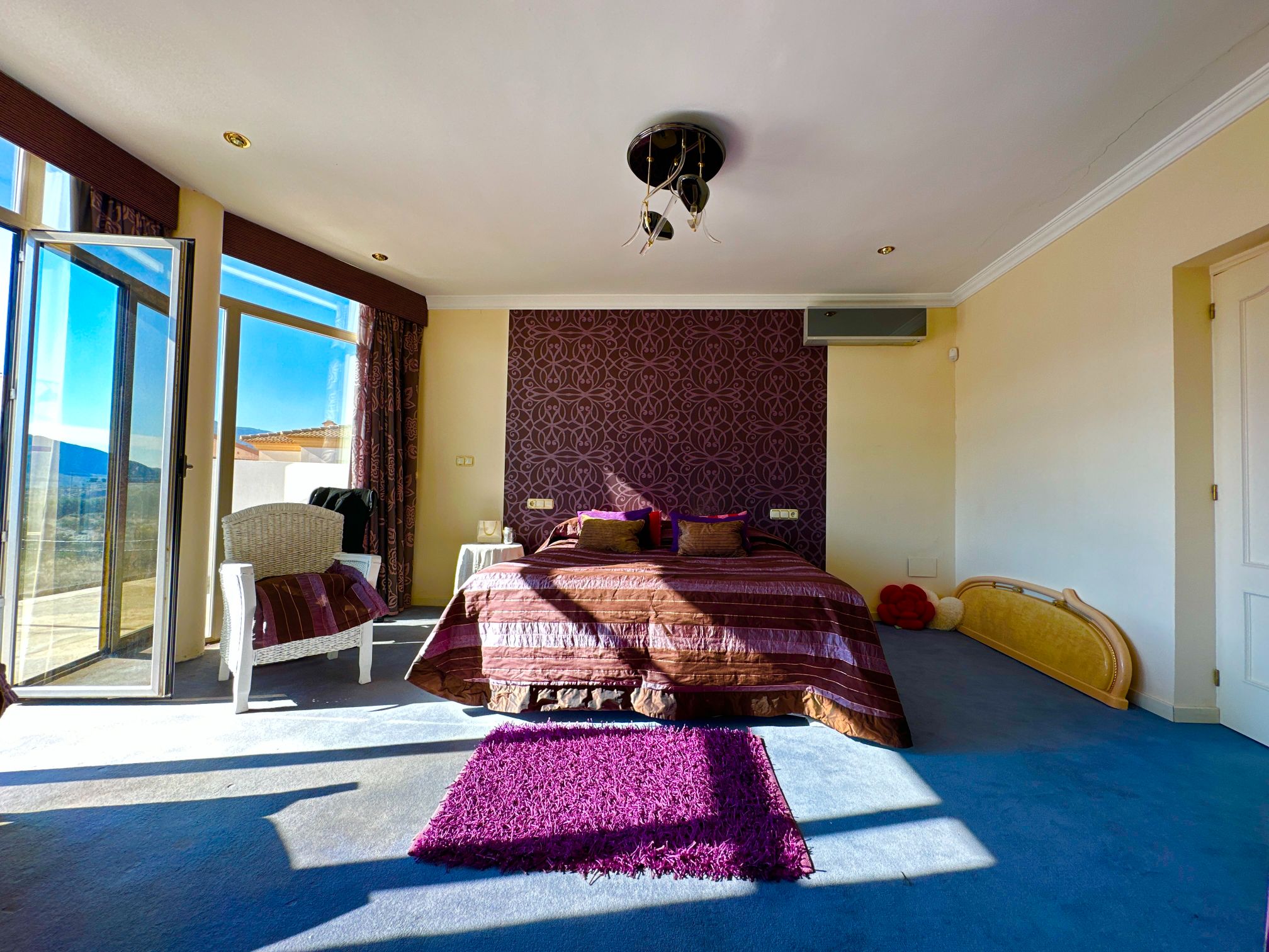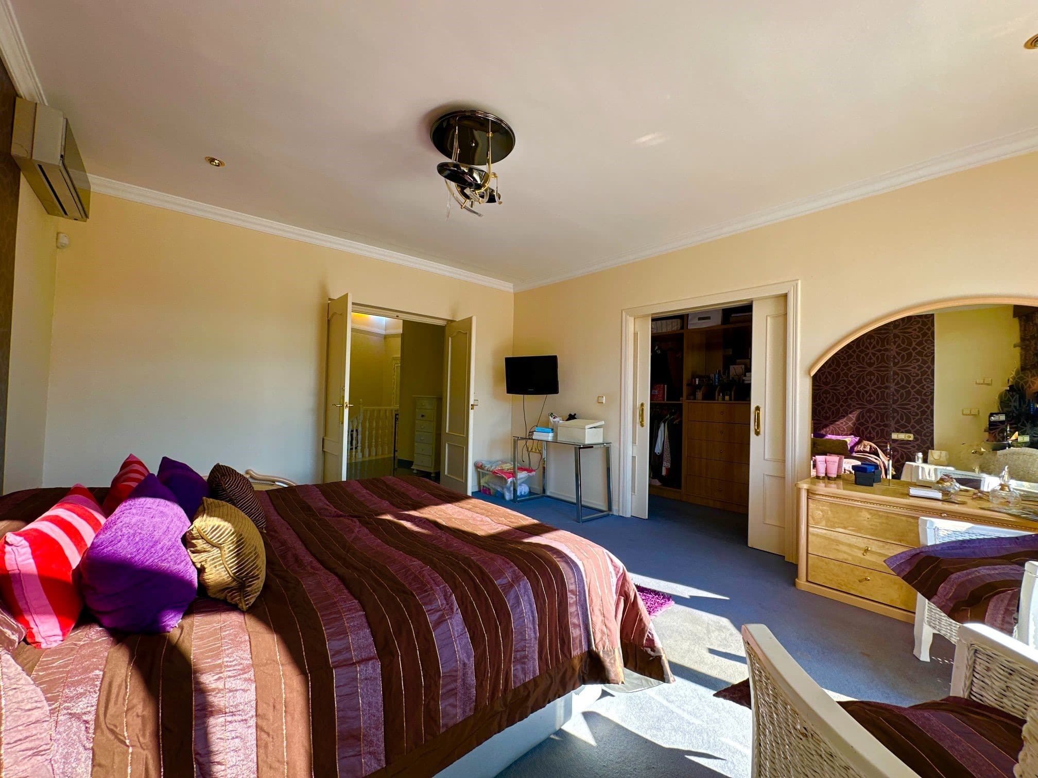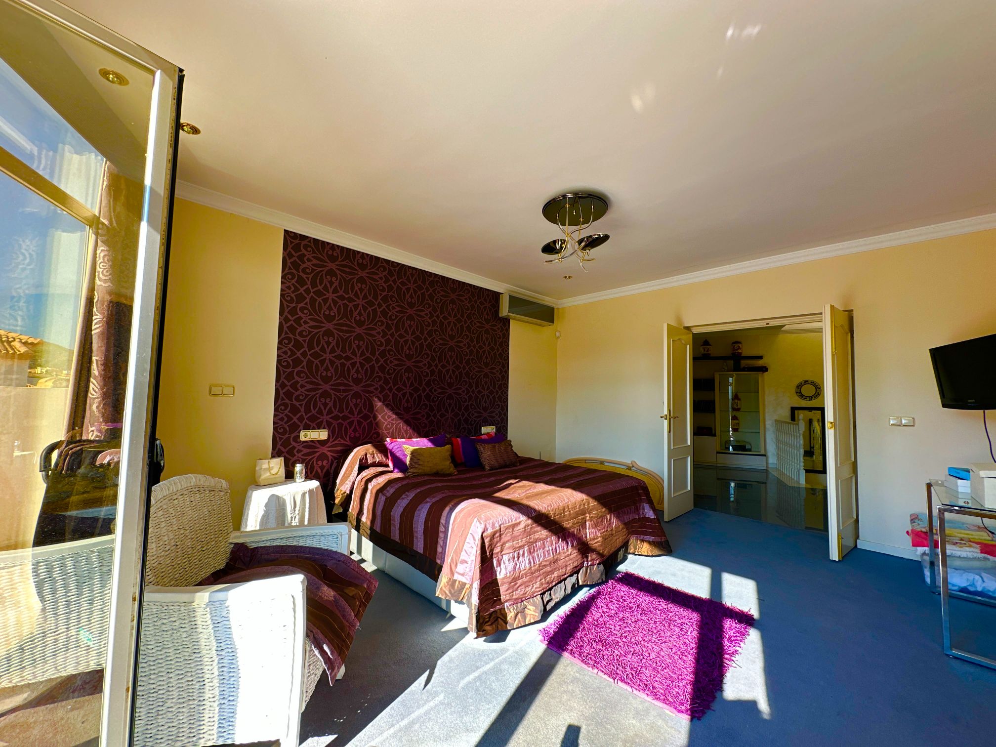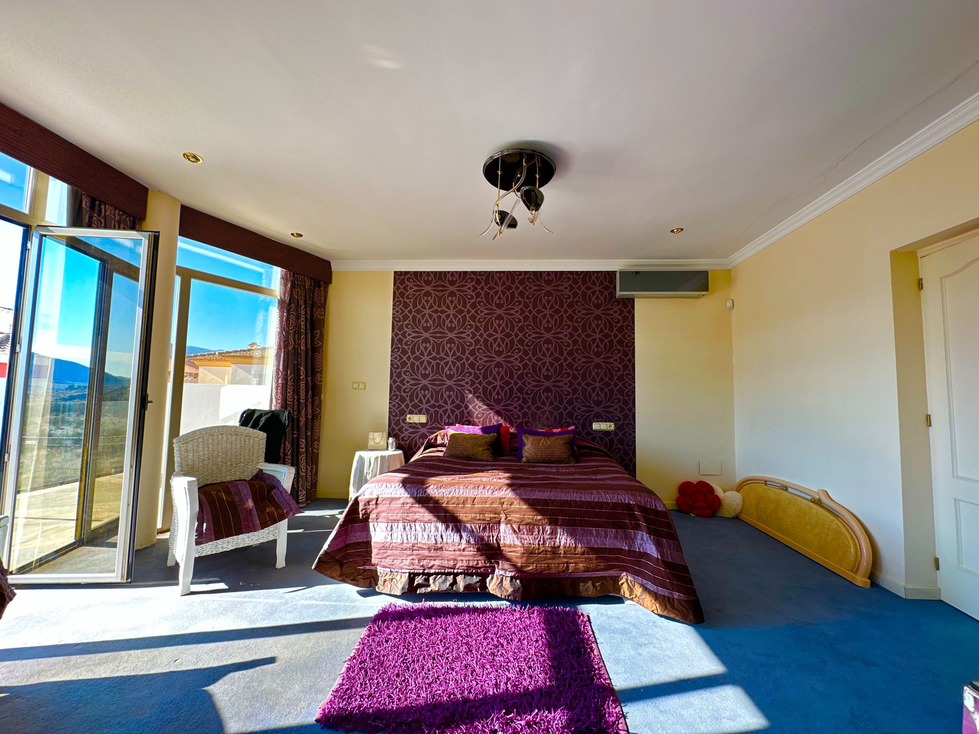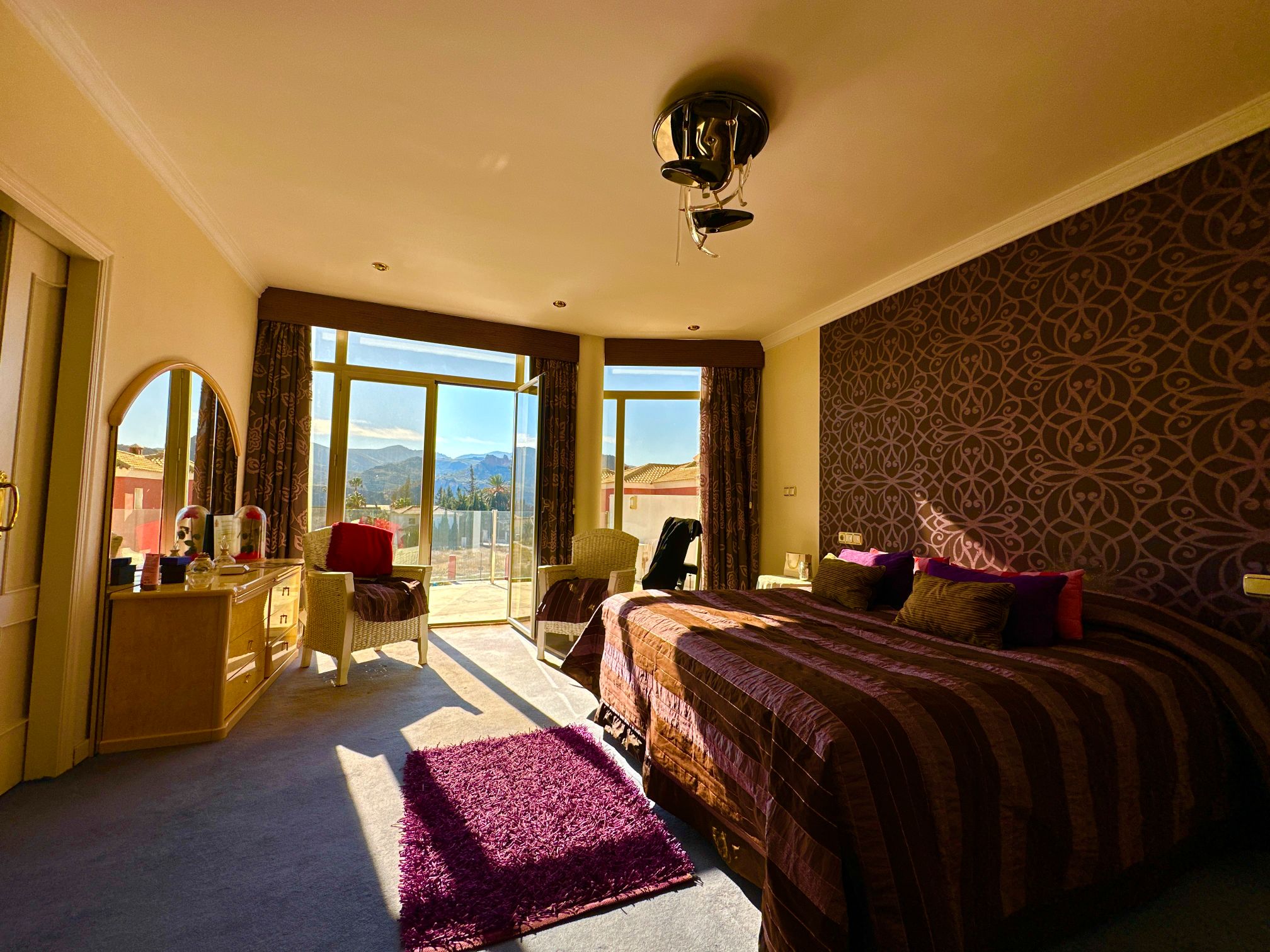 The property features five generous-sized bedrooms, each offering its own unique character and style. The master suite is particularly impressive, featuring a large en-suite bathroom, a walk-in closet, and a private balcony that offers breathtaking views of the surrounding landscape.
