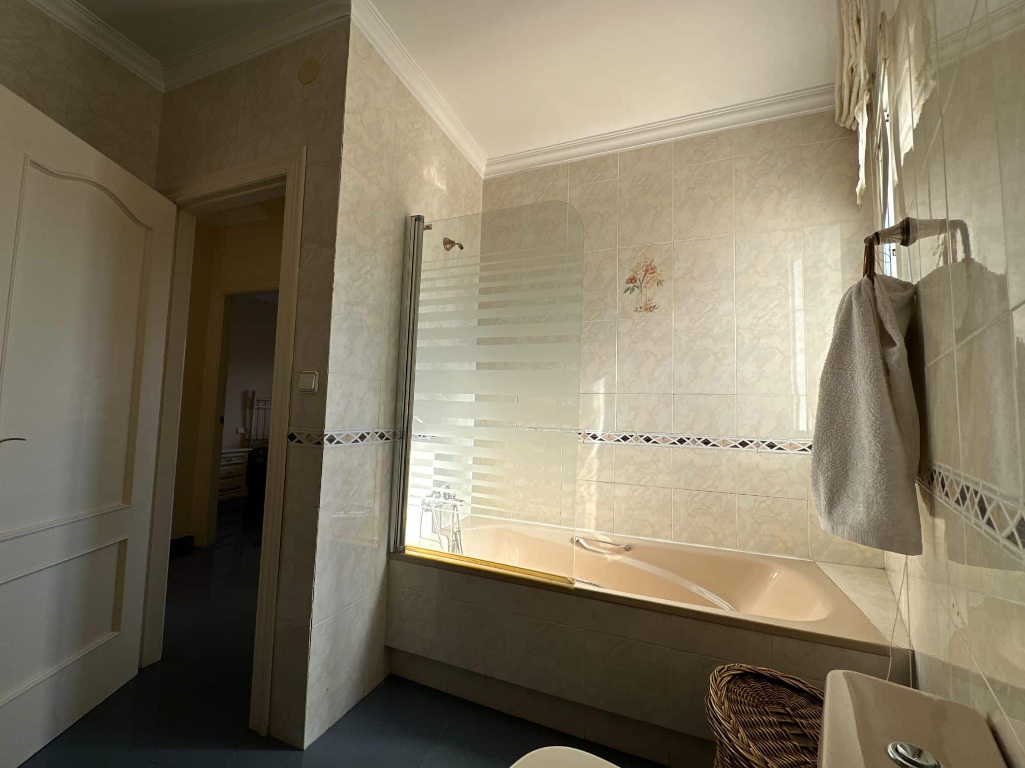 The villa also boasts three immaculate bathrooms, each finished to the highest standards with modern fixtures and fittings.