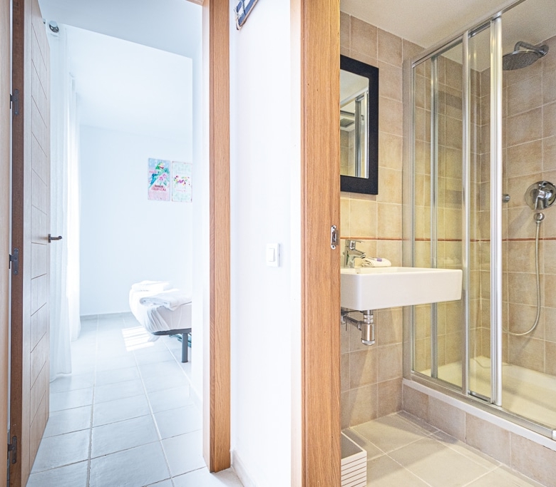 The terrace areas have sea and mountain views. Terrace furniture includes table and 4 chairs. There are 5 swimming pools within 3 minutes walk of the apartment with one 40 yards away which can be seen down on from terrace area in the apartment. The pools are shared and are not heated. The resort is built around the Playa Macenas Golf course.