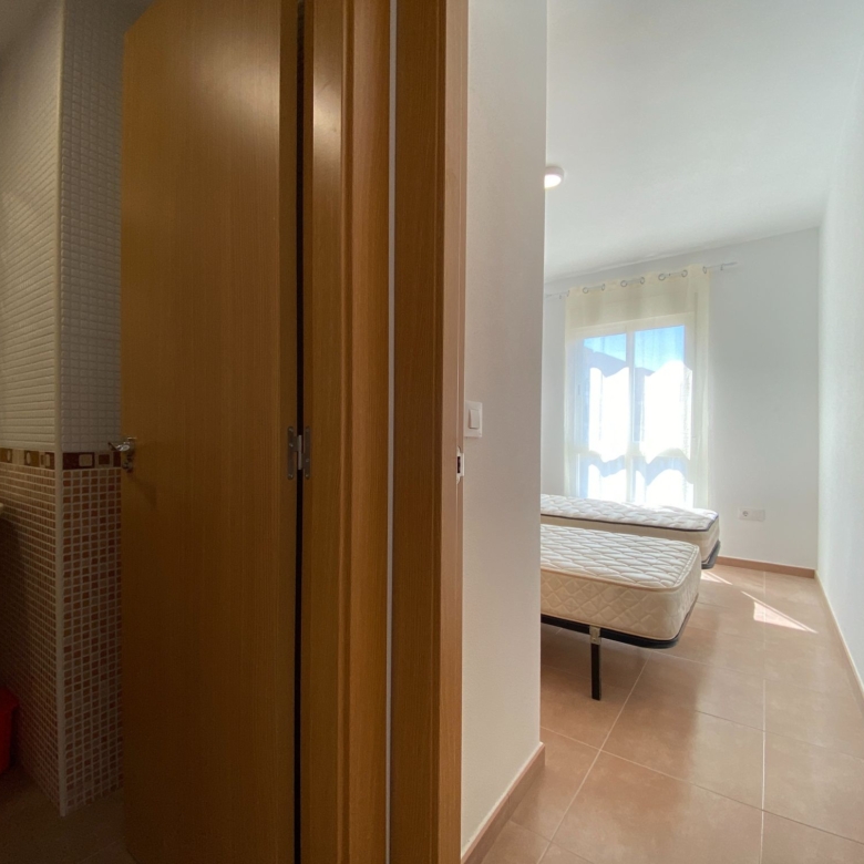 Cosy Apartment with two bedrooms and two bathrooms, located in a building with four floors above ground level and one floor below ground level, which has an elevator. It is located in the municipality of Garrucha, province of Almería. The house is distributed in two bedrooms, a living room, a kitchen, a bathroom, and hall. It has a normal entrance door, white lacquered aluminium windows, casement windows, and plastic shutters. The property is located in a quiet area of the town of Garrucha, surrounded by houses of similar characteristics. The building has an approximate age of about eight years. The Garrucha beach is also known as the Playa de las Escobetas and is the only sandy area that the municipality has. The promenade runs along the beach from end to end, and also the commercial, sports and fishing ports are flanked by its three ports. When we talk about Garrucha, we must stop for a while on its magnificent Paseo Marítimo, better known as the Malecon. It has easy access by A-370 roads, quiet area with a good level of services such as buses, supermarkets, restaurants, pharmacies, primary and secondary schools, and health centre.