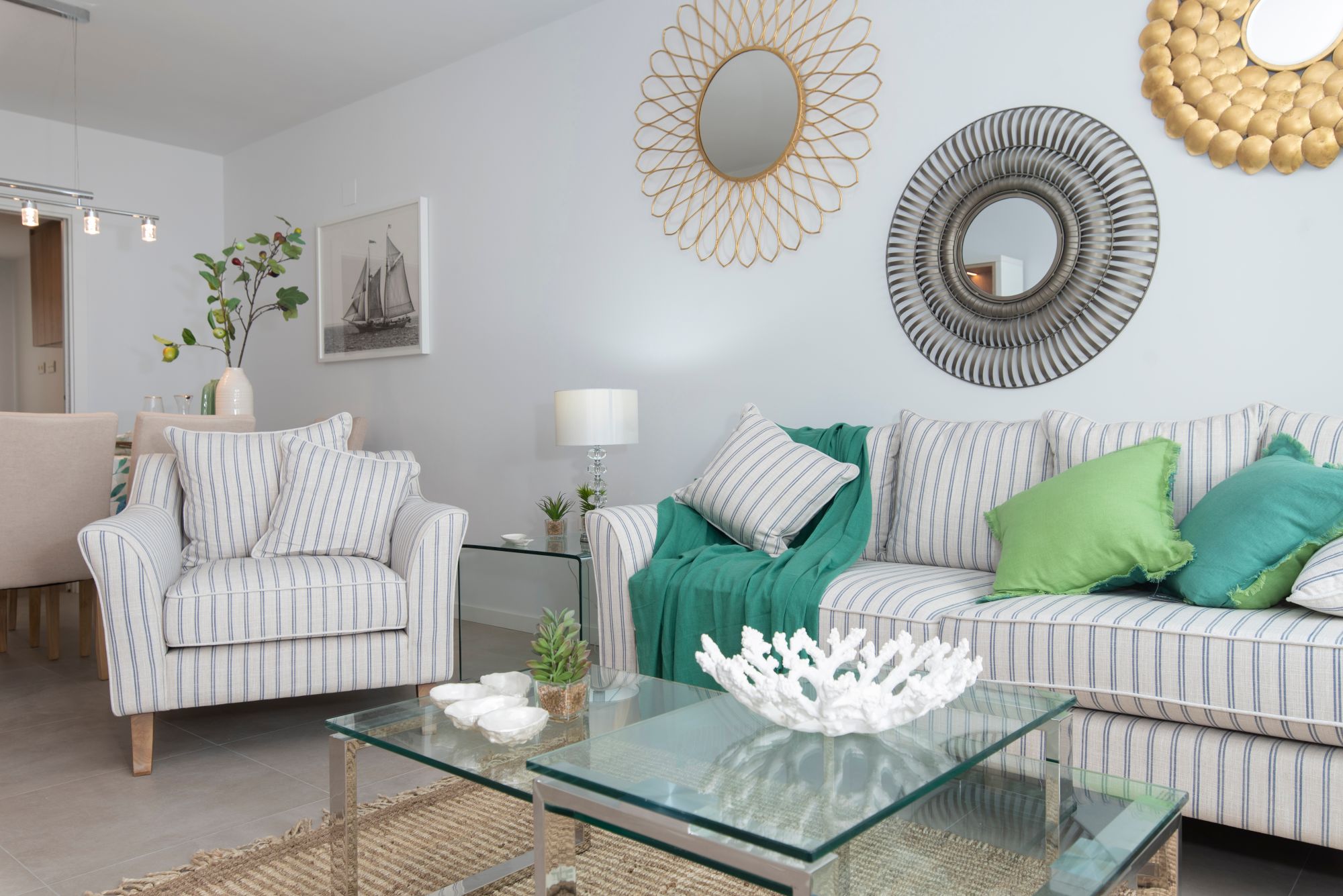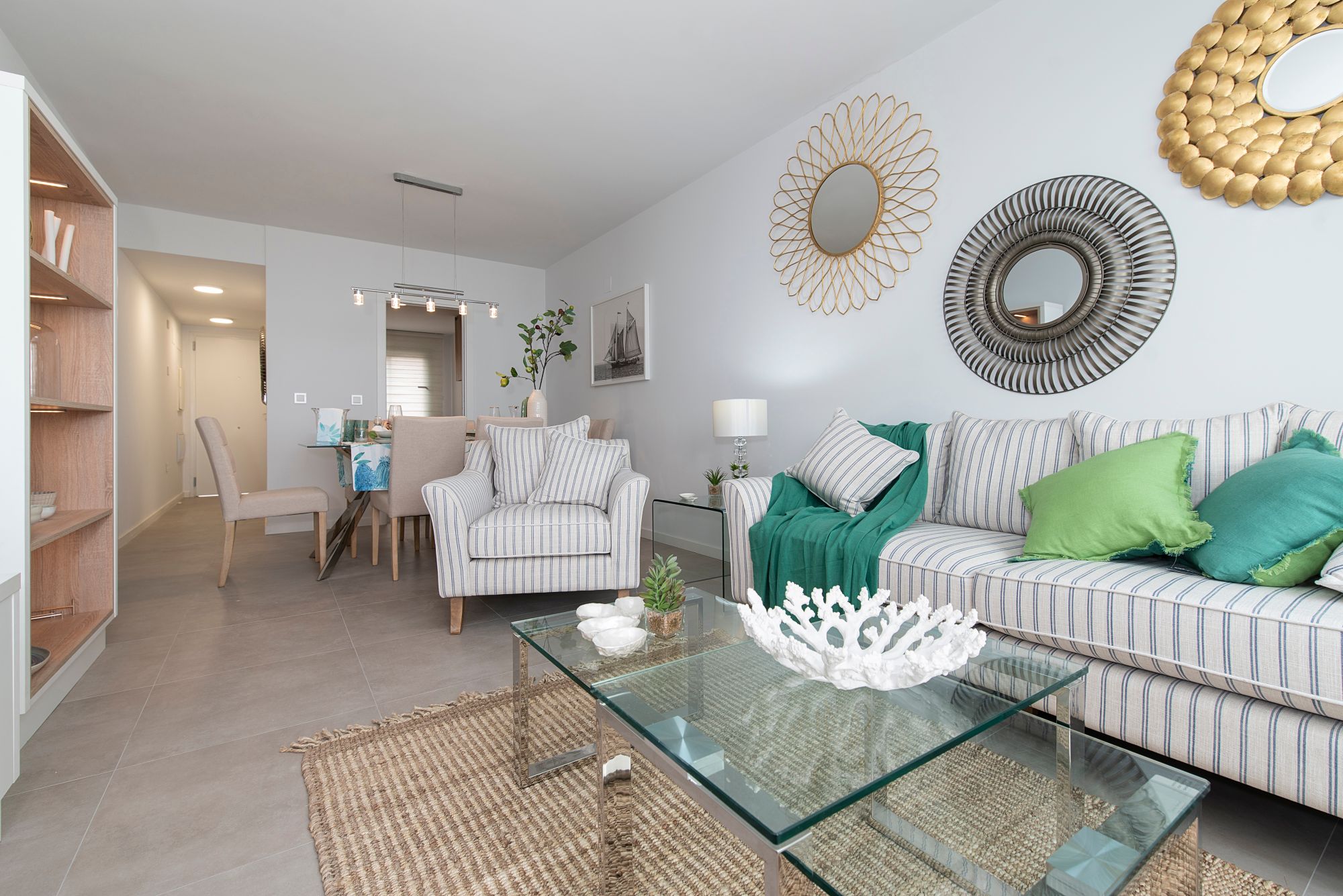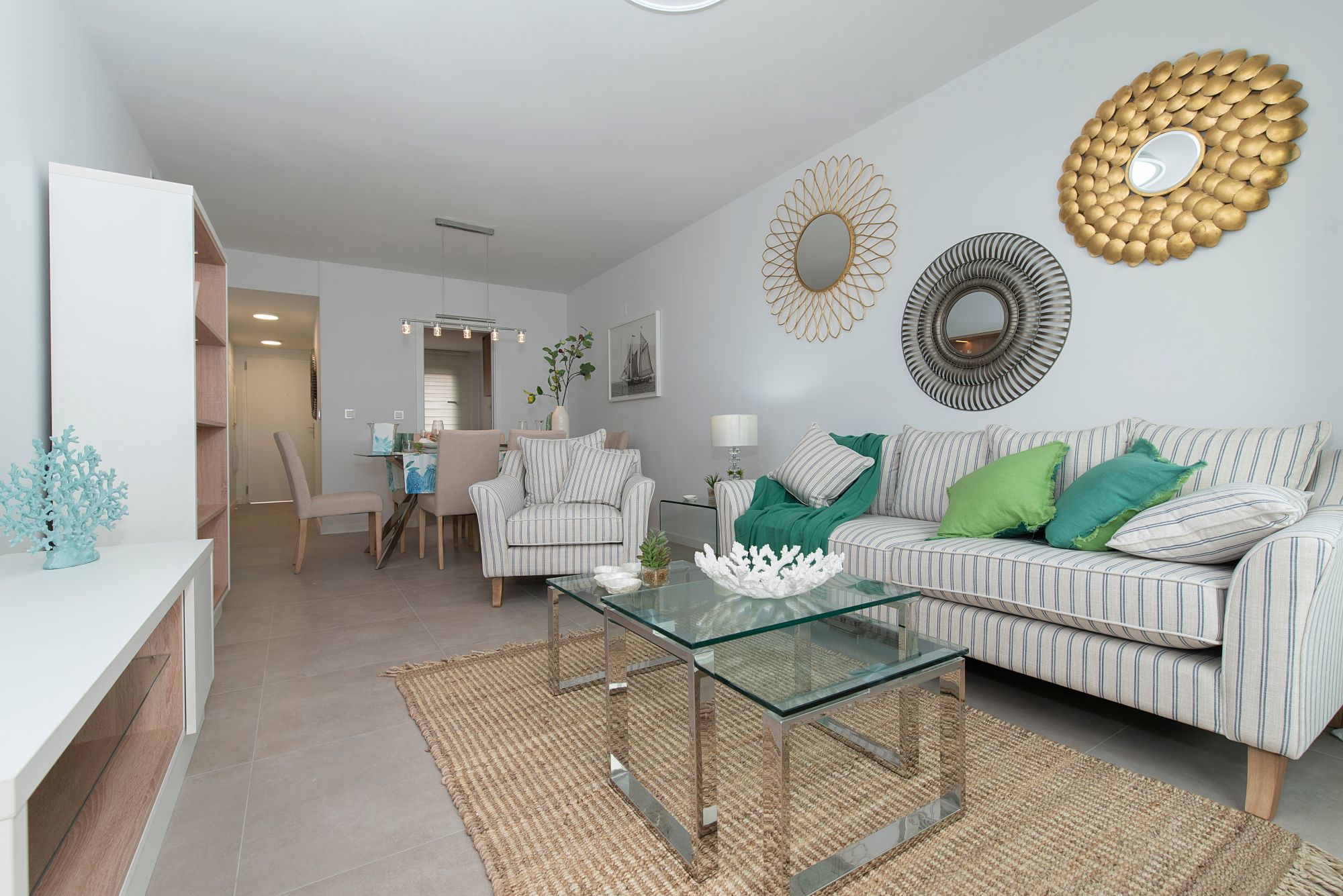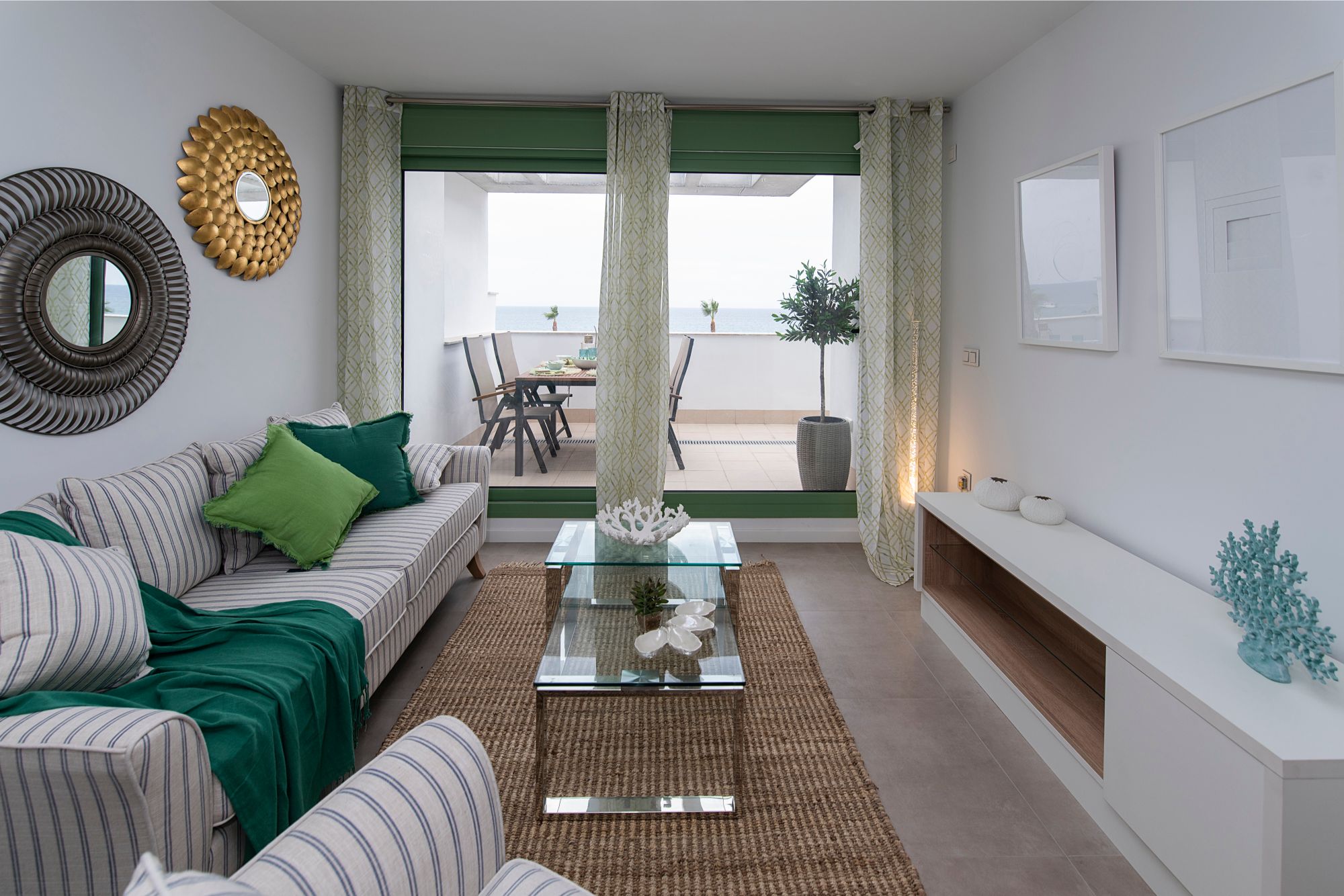 65% of the apartments have sea views. Ground floor apartments have gardens or some have gardens and a porch.