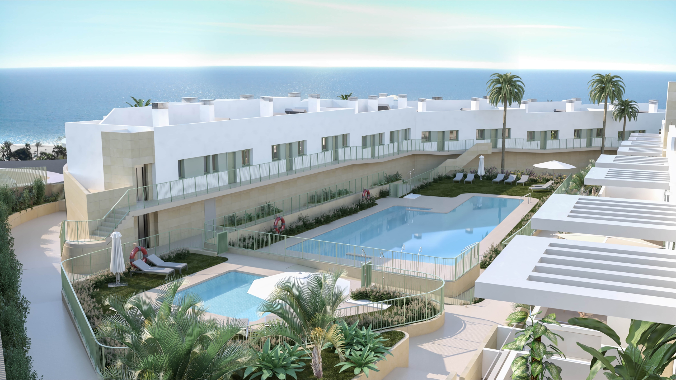 Pools and communal areas. There will also be retail spaces right on the beachfront of the Paseo Mediterráneo.