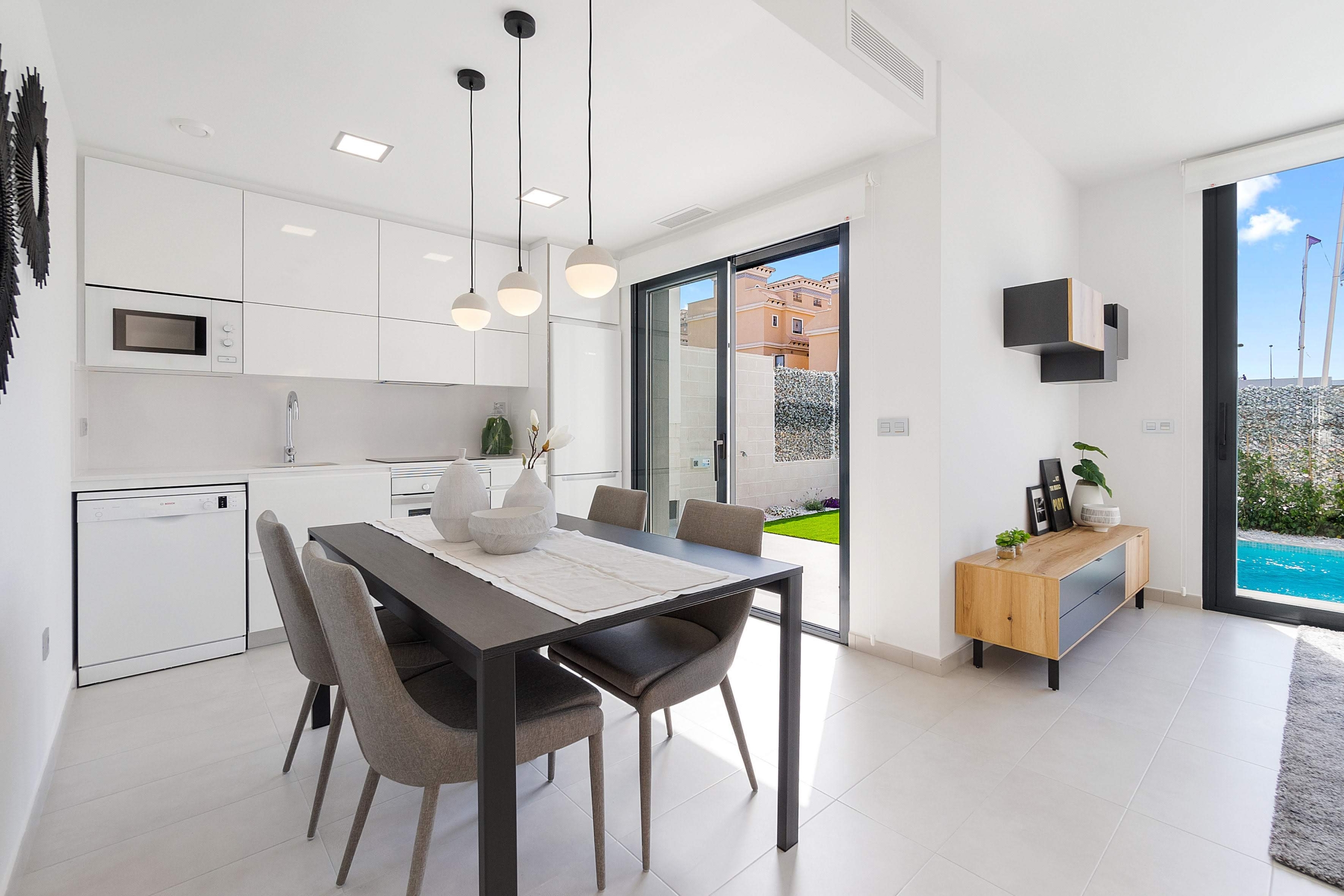 The private complex is composed of 45 detached villas with parking, solarium, garden and private swimming pool. It is a modern and designed house built using the best finishes and high-quality materials. The location allows enjoying incredible views, as well as the closeness to the best golf courses in the area ( Villamartín, Campoamor y las Ramblas).