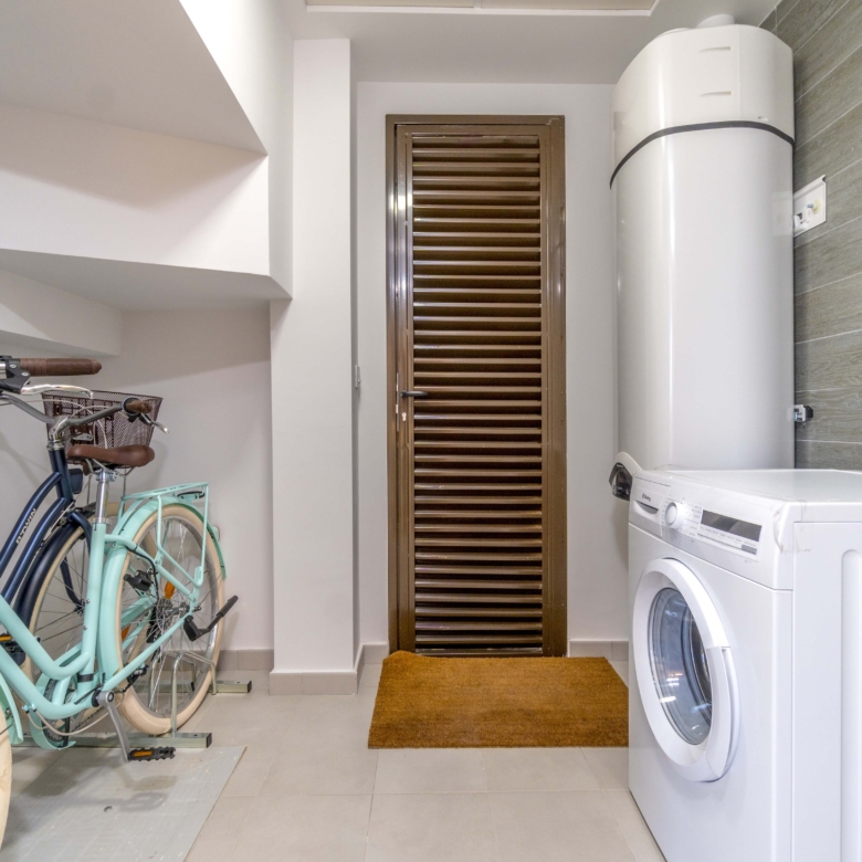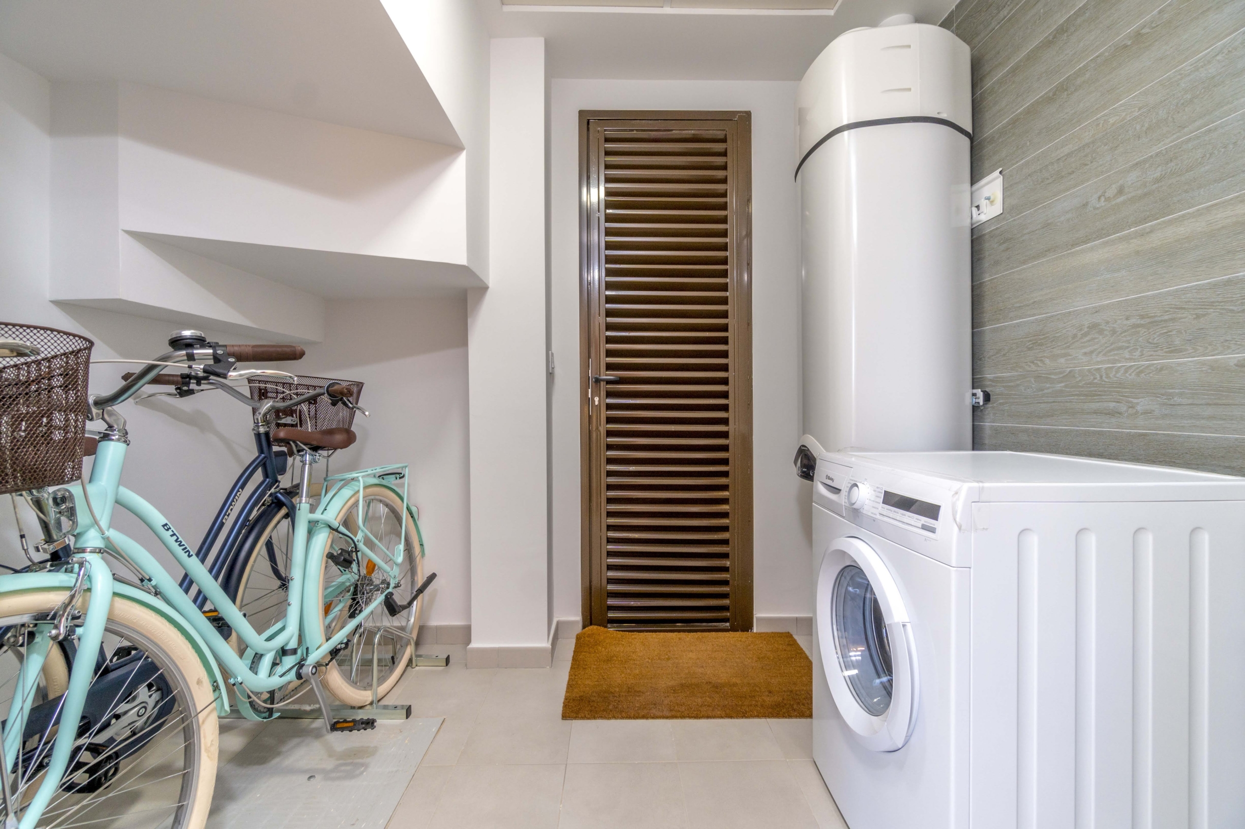 Inside, the villa features air conditioning and underfloor heating, ensuring comfortable living all year round. The fully equipped modern kitchen is perfect for preparing delicious meals for family and friends, while the spacious bedrooms provide a peaceful sanctuary after a busy day.