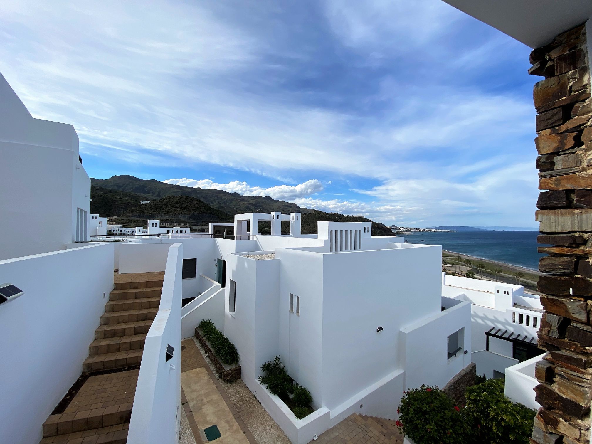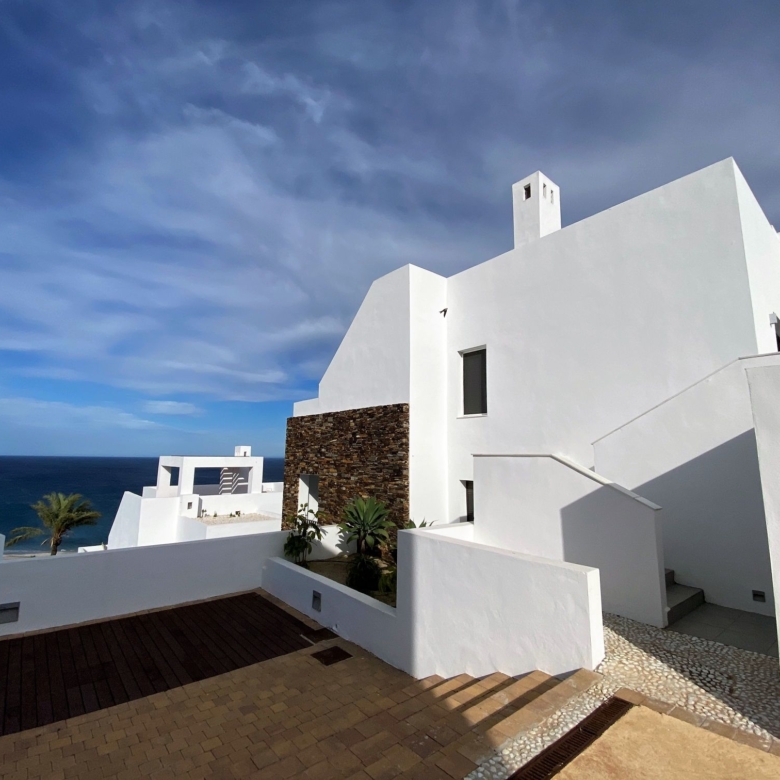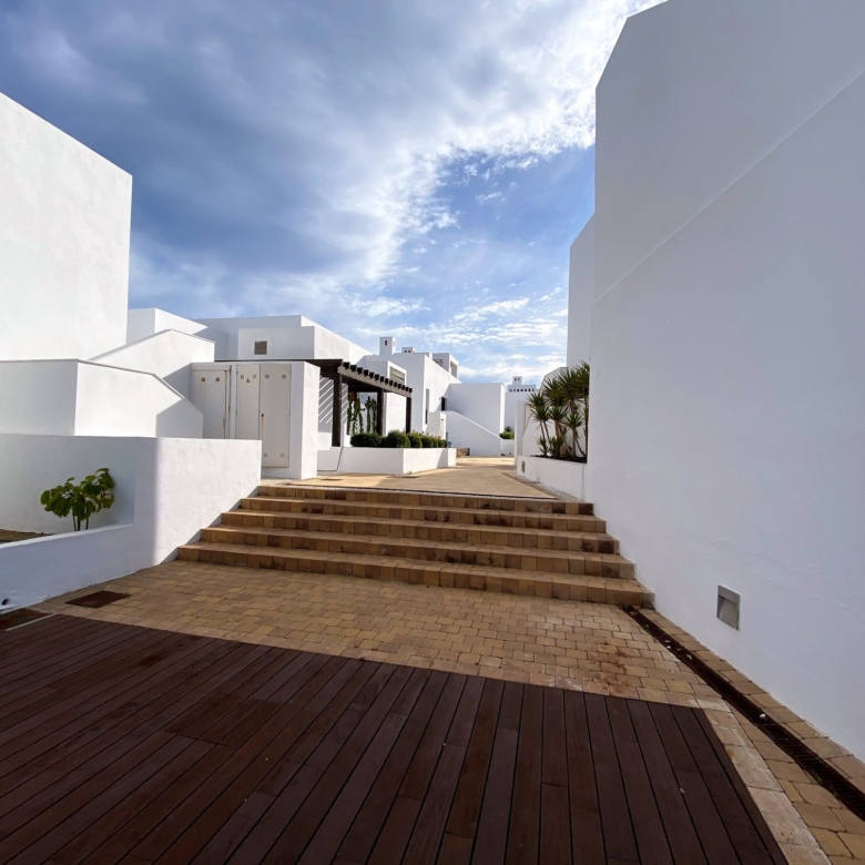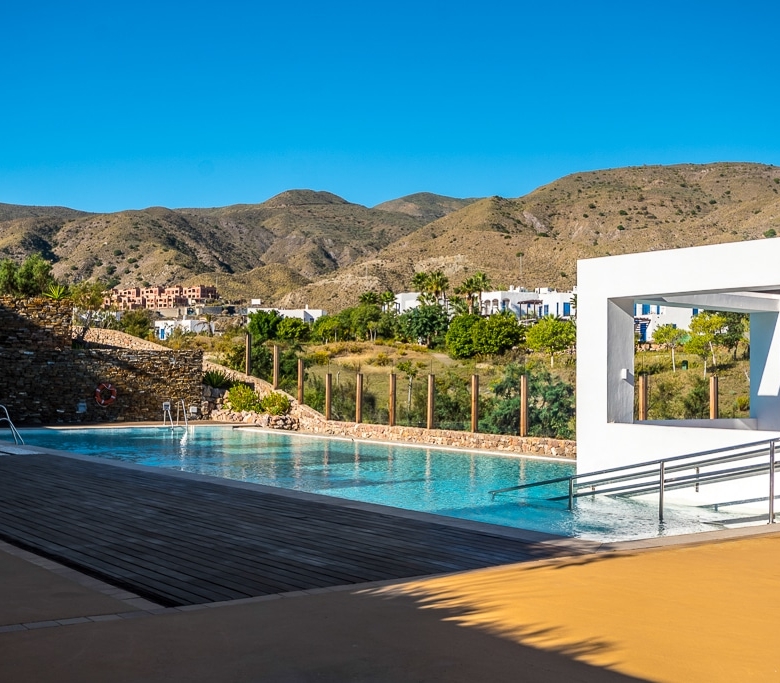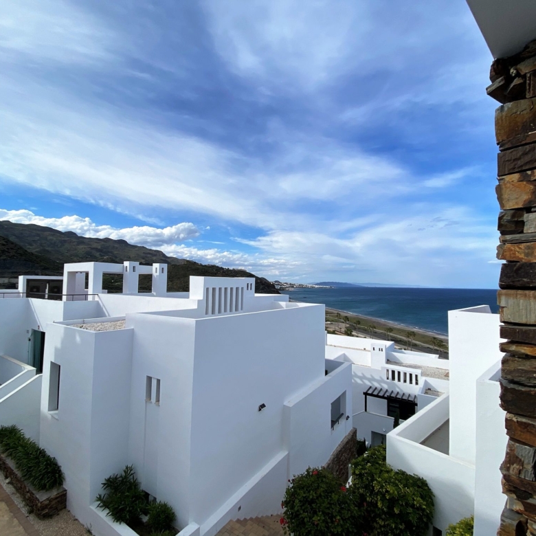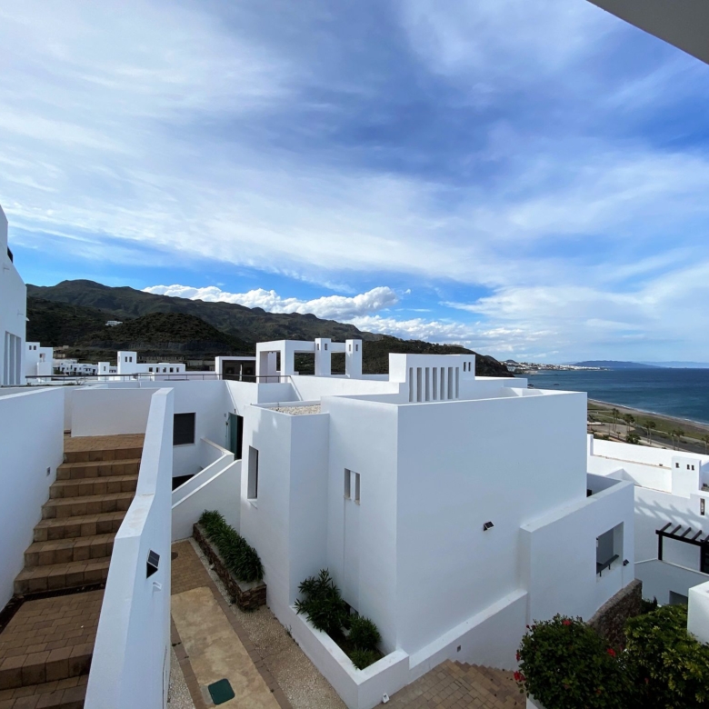 Playa Macenas beach resort is five minutes drive along the coast from Mojacar in the province of Almeria. This is a great location for a family holiday or a golfing break. The complex is quite different than the majority found in Spain with its superior build, architectural design, and high-quality finish. There are many top golf courses within a short drive of the resort including Desert Springs, Valle Des Este, and Aguillas. The nightlife of Mojacar provides an endless supply of evening entertainment in the form of restaurants, bars, and clubs. For the family there are numerous swimming pools on the resort plus off resort there is 17 km of unspoiled beaches to choose from, two great water parks, go-karting and also the mini Hollywood Studios at the Tabernas Desert. The romantic white village of Old Mojacar is perched high on the nearby hilltop.