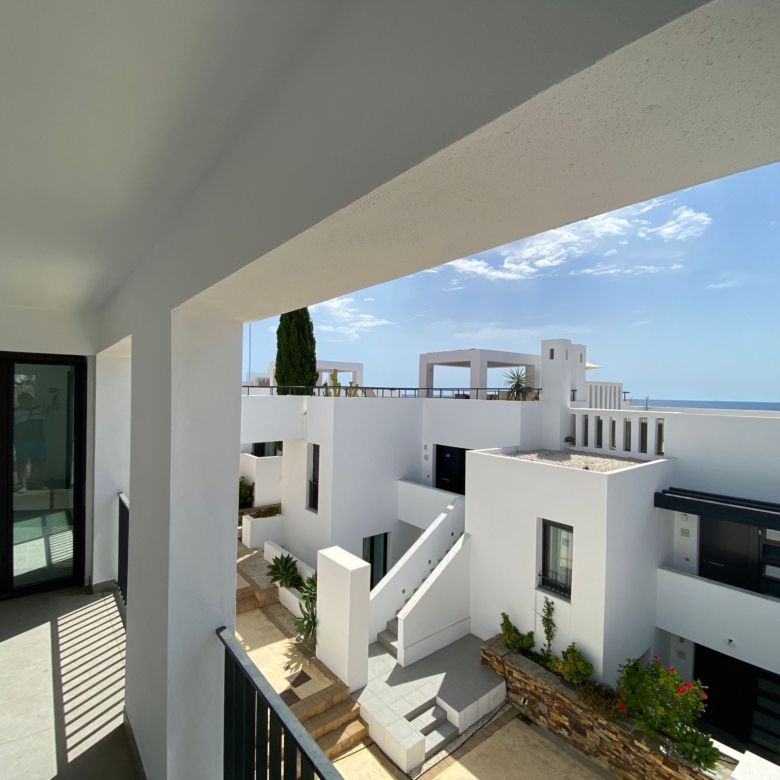 Playa Macenas beach resort is five minutes drive along the coast from Mojacar in the province of Almeria. This is a great location for a family holiday or a golfing break. The complex is quite different than the majority found in Spain with its superior build, architectural design, and high-quality finish. There are many top golf courses within a short drive of the resort including Desert Springs, Valle Des Este, and Aguillas. The nightlife of Mojacar provides an endless supply of evening entertainment in the form of restaurants, bars, and clubs. For the family there are numerous swimming pools on the resort plus off resort there is 17 km of unspoiled beaches to choose from, two great water parks, go-karting and also the mini Hollywood Studios at the Tabernas Desert. The romantic white village of Old Mojacar is perched high on the nearby hilltop.