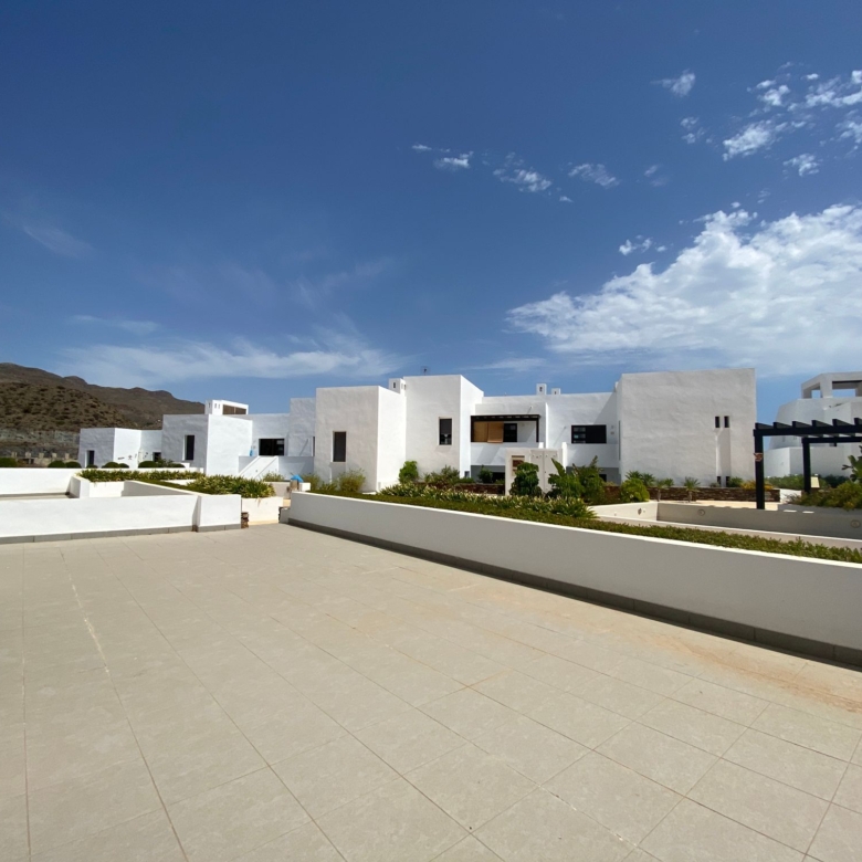 Playa Macenas beach resort is five minutes drive along the coast from Mojacar in the province of Almeria. This is a great location for a family holiday or a golfing break. The complex is quite different than the majority found in Spain with its superior build, architectural design, and high-quality finish. There are many top golf courses within a short drive of the resort including Desert Springs, Valle Des Este, and Aguillas. The nightlife of Mojacar provides an endless supply of evening entertainment in the form of restaurants, bars, and clubs. For the family there are numerous swimming pools on the resort plus off resort there is 17 km of unspoiled beaches to choose from, two great water parks, go-karting and also the mini Hollywood Studios at the Tabernas Desert. The romantic white village of Old Mojacar is perched high on the nearby hilltop.