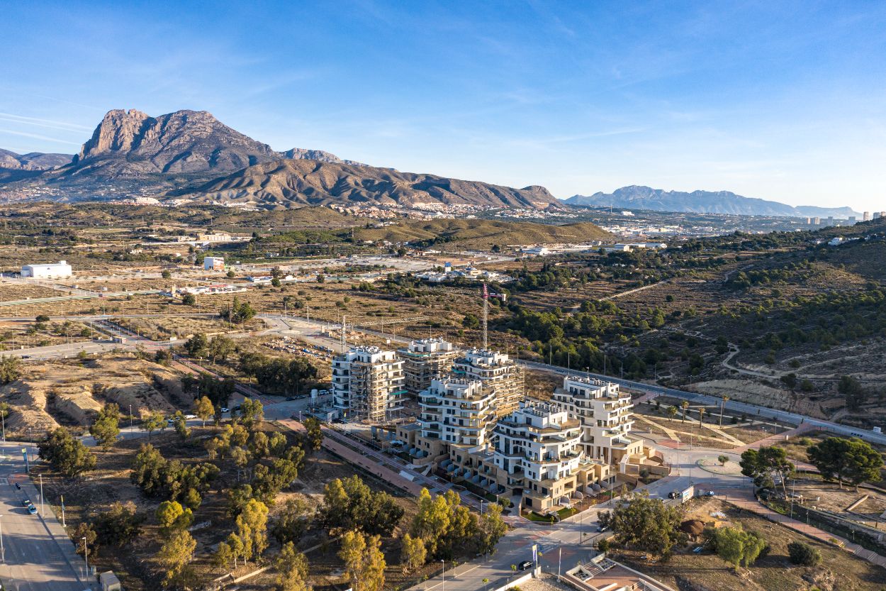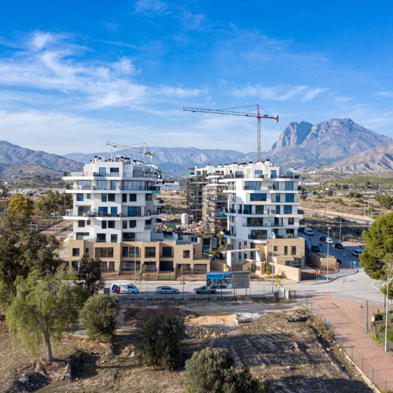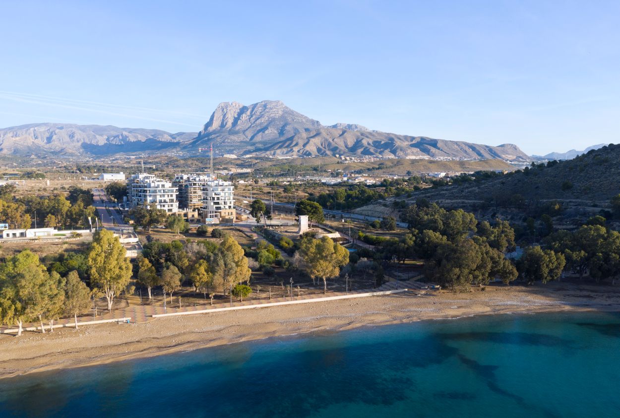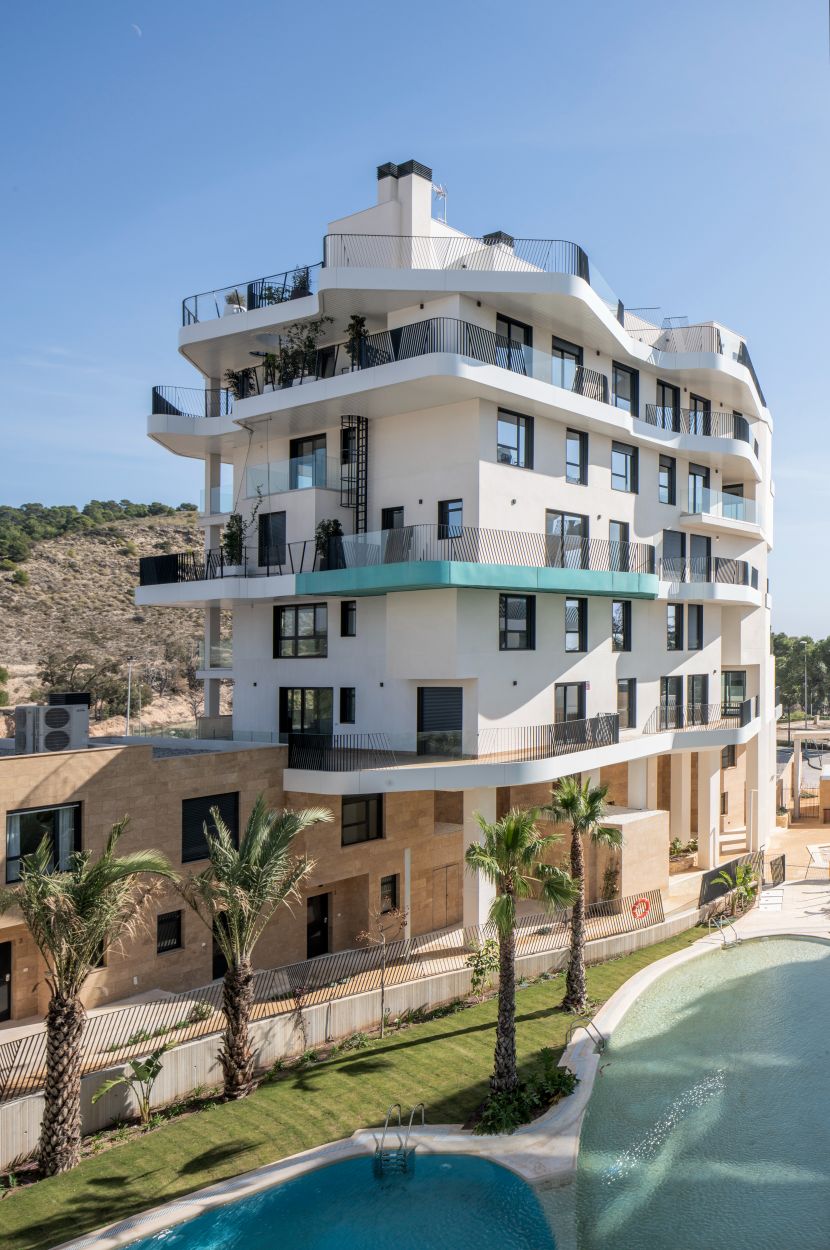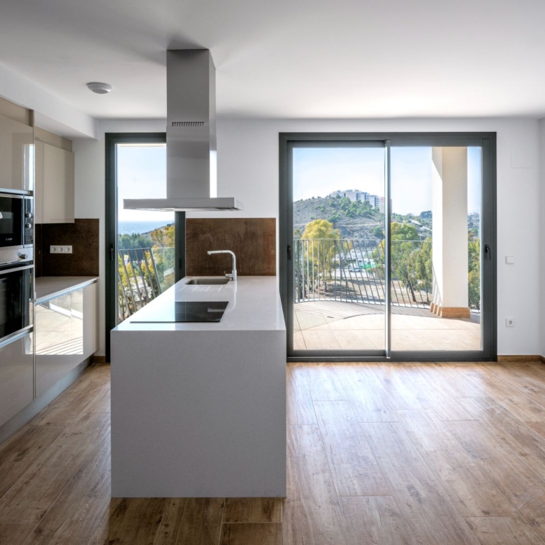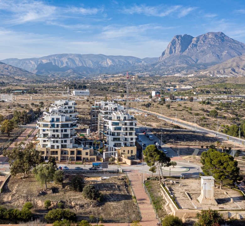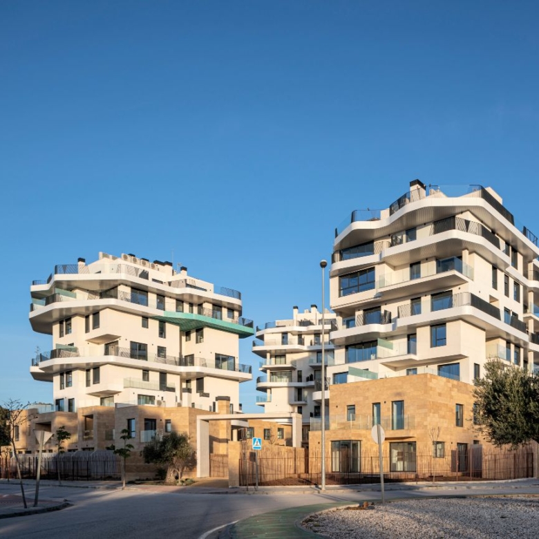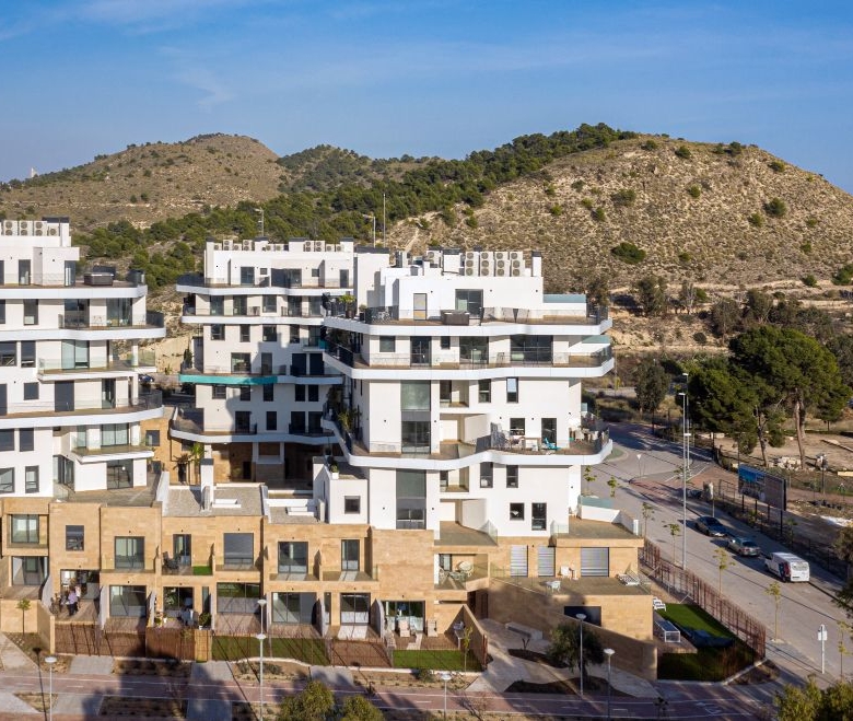 Newly built apartments, duplexes, and penthouses on the beachfront, next to Benidorm and Villajoyosa (Costa Blanca Alicante, Spain). Top-quality properties built with first-class materials such as thermal insulation, Marazzi… Peerless in design with spacious terraces to take in the splendour of the sea views. All the elegant white tower blocks have just six floors and there are vast green areas between them all.