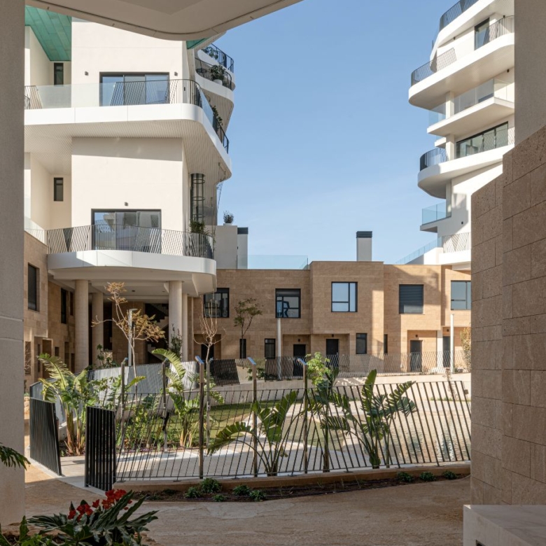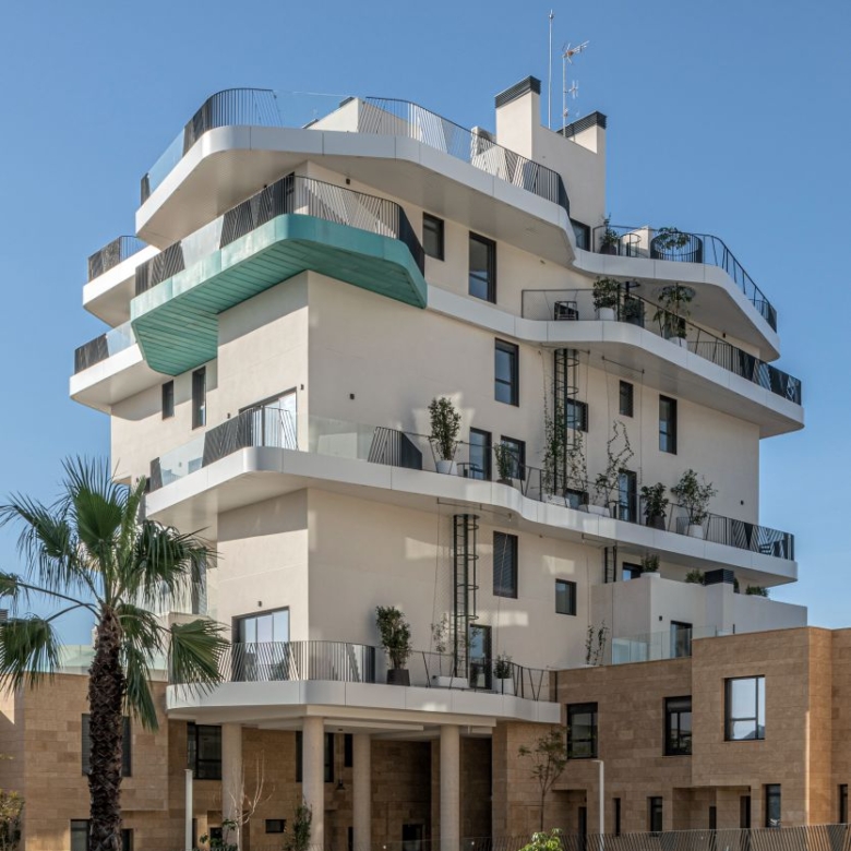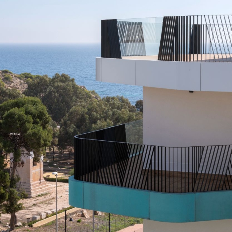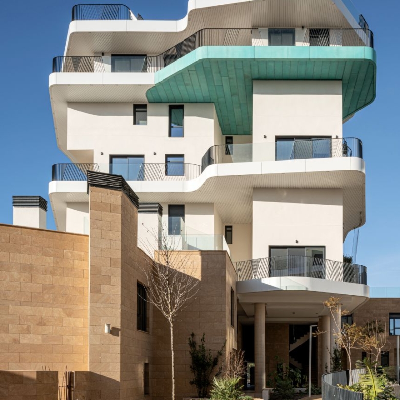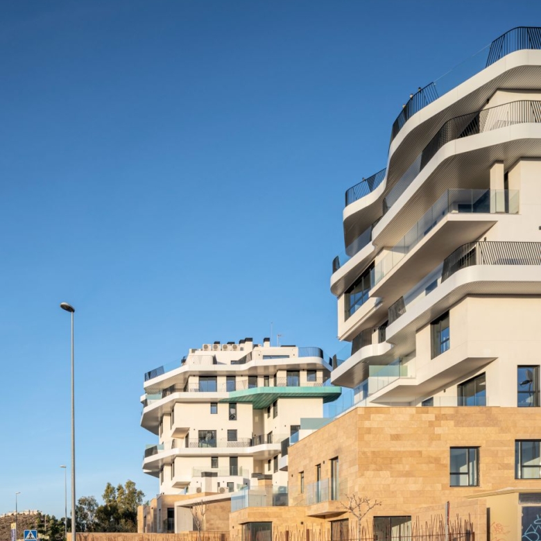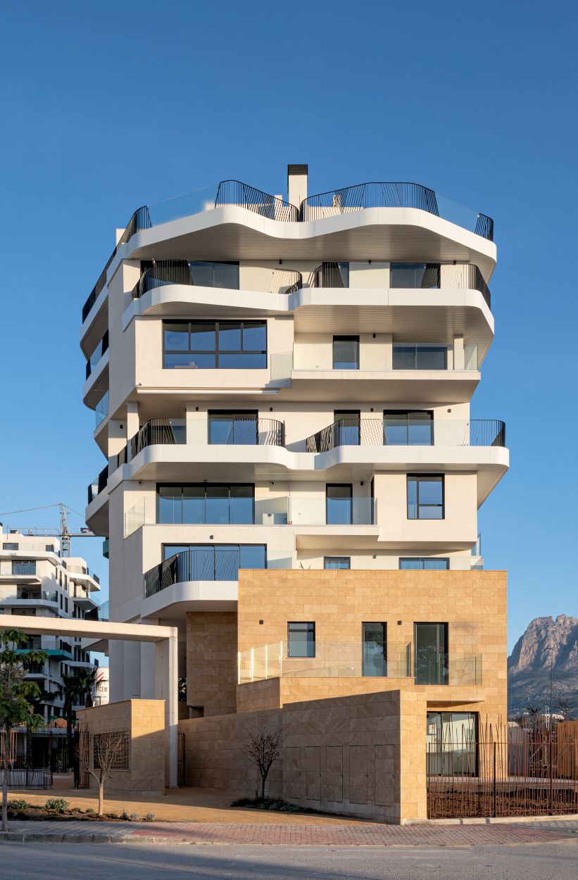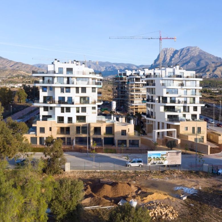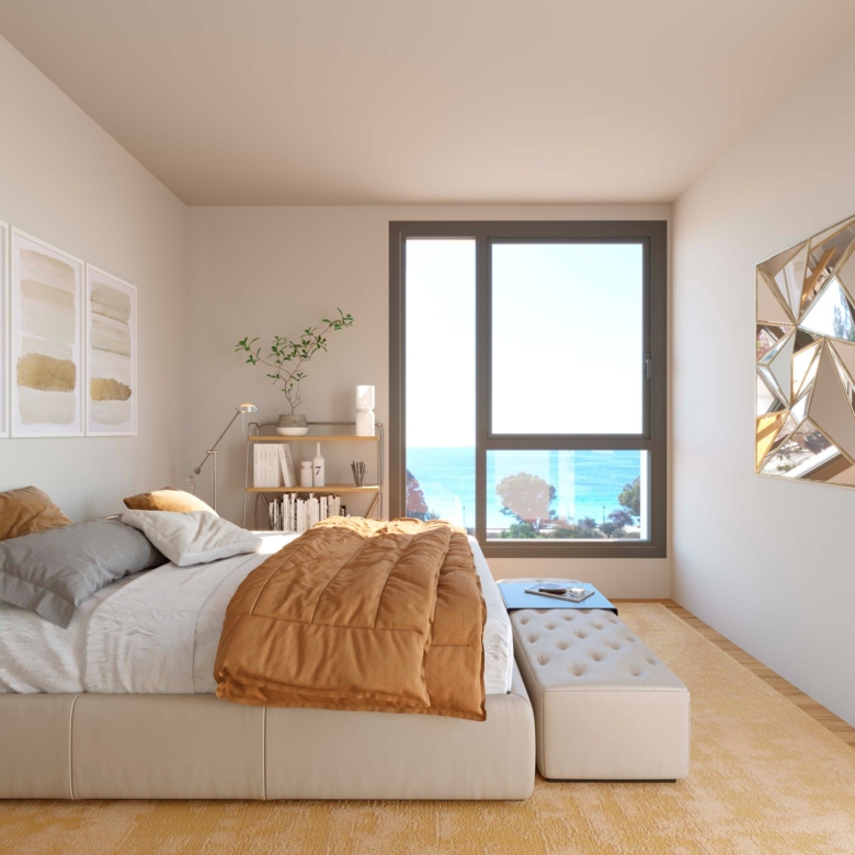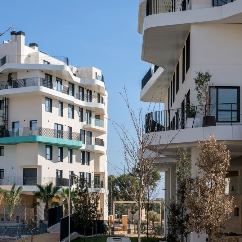 Newly built apartments, duplexes, and penthouses on the beachfront, next to Benidorm and Villajoyosa (Costa Blanca Alicante, Spain). Top-quality properties built with first-class materials such as thermal insulation, Marazzi… Peerless in design with spacious terraces to take in the splendour of the sea views. All the elegant white tower blocks have just six floors and there are vast green areas between them all.