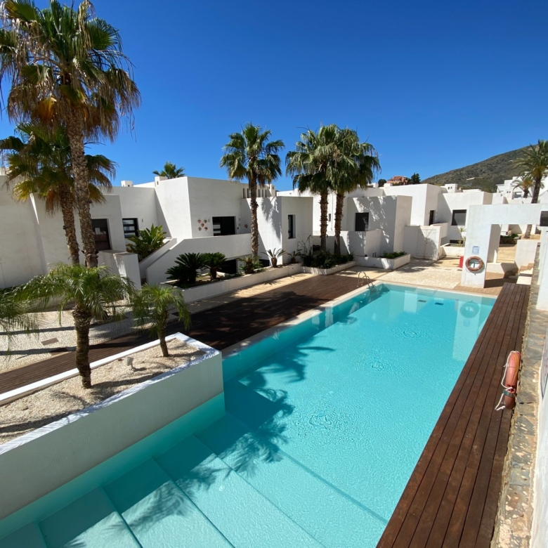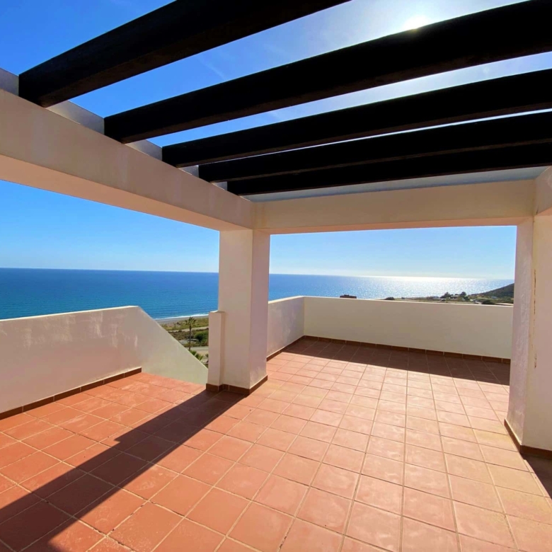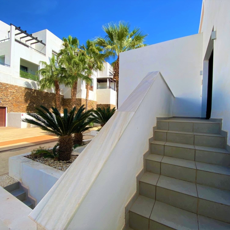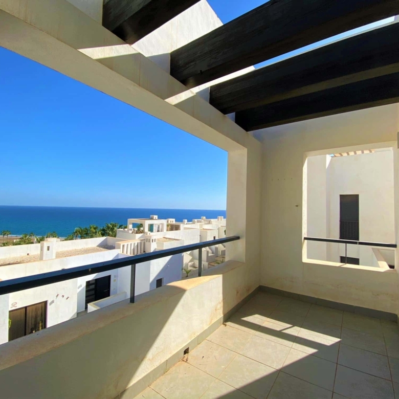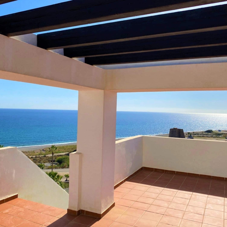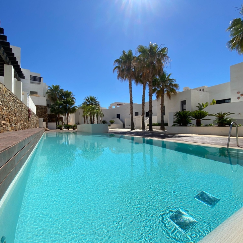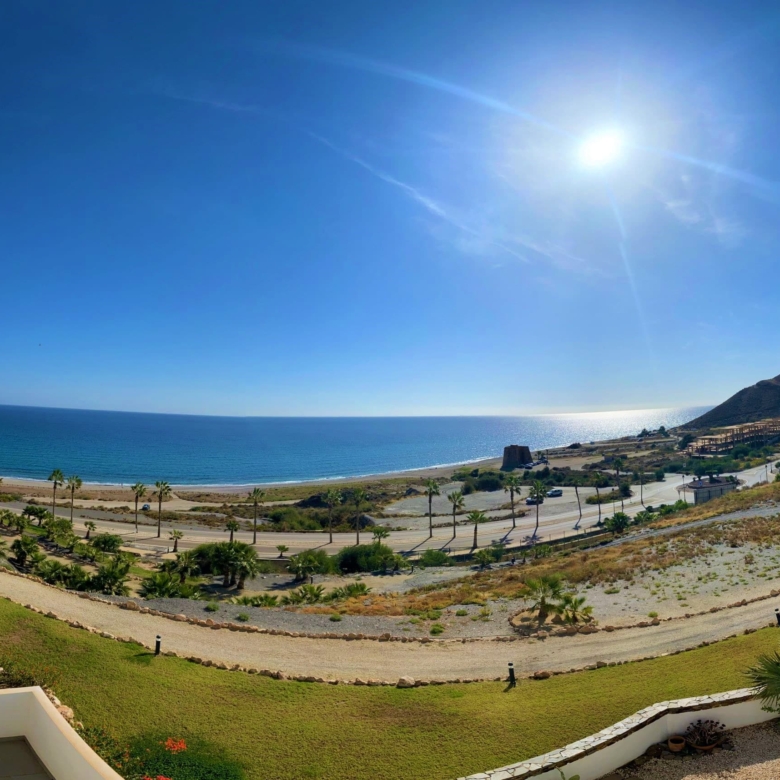 Playa Macenas beach resort is five minutes drive along the coast from Mojacar in the province of Almeria. This is a great location for a family holiday or a golfing break. The complex is quite different from the majority found in Spain with its superior build, architectural design, and high-quality finish. There are many top golf courses within a short drive of the resort including Desert Springs, Valle Des Este, and Aguillas. The nightlife of Mojacar provides an endless supply of evening entertainment in the form of restaurants, bars, and clubs. For the family there are numerous swimming pools on the resort plus off the resort there is 17 km of unspoiled beaches to choose from, two great water parks, go-karting and also the mini Hollywood Studios at the Tabernas Desert. The romantic white village of Old Mojacar is perched high on the nearby hilltop.