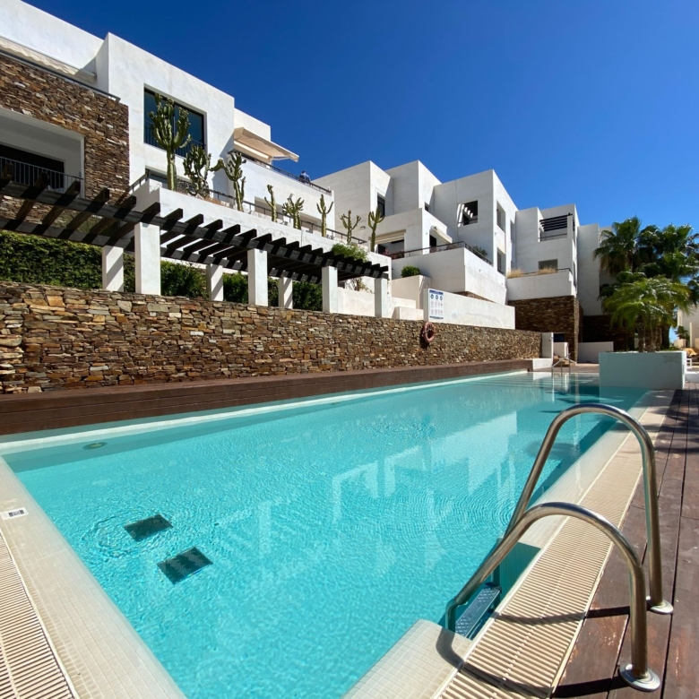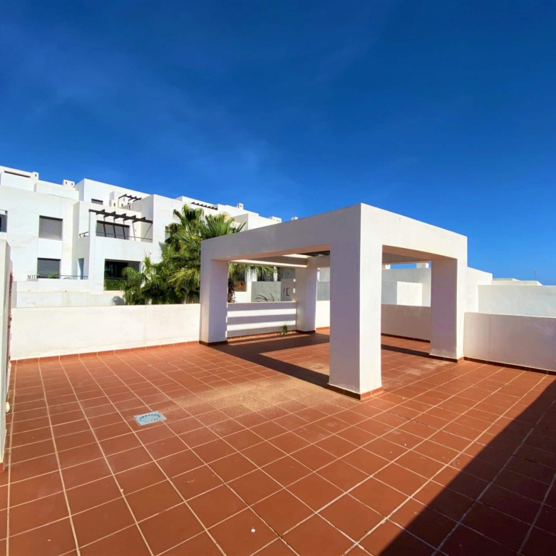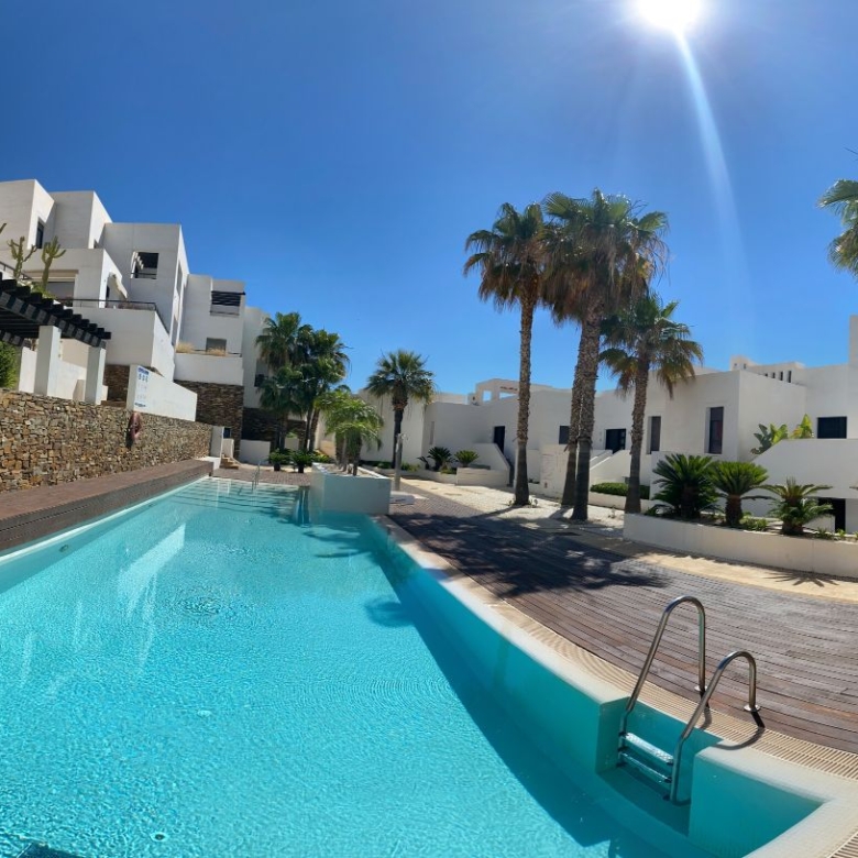 The terrace areas have mountain views. There are 5 swimming pools within 3 minute walk of the apartment with one 40 yards away which can be seen down from the terrace area in the apartment. The pools are shared and are not heated. The resort is built around the Playa Macenas Golf course.