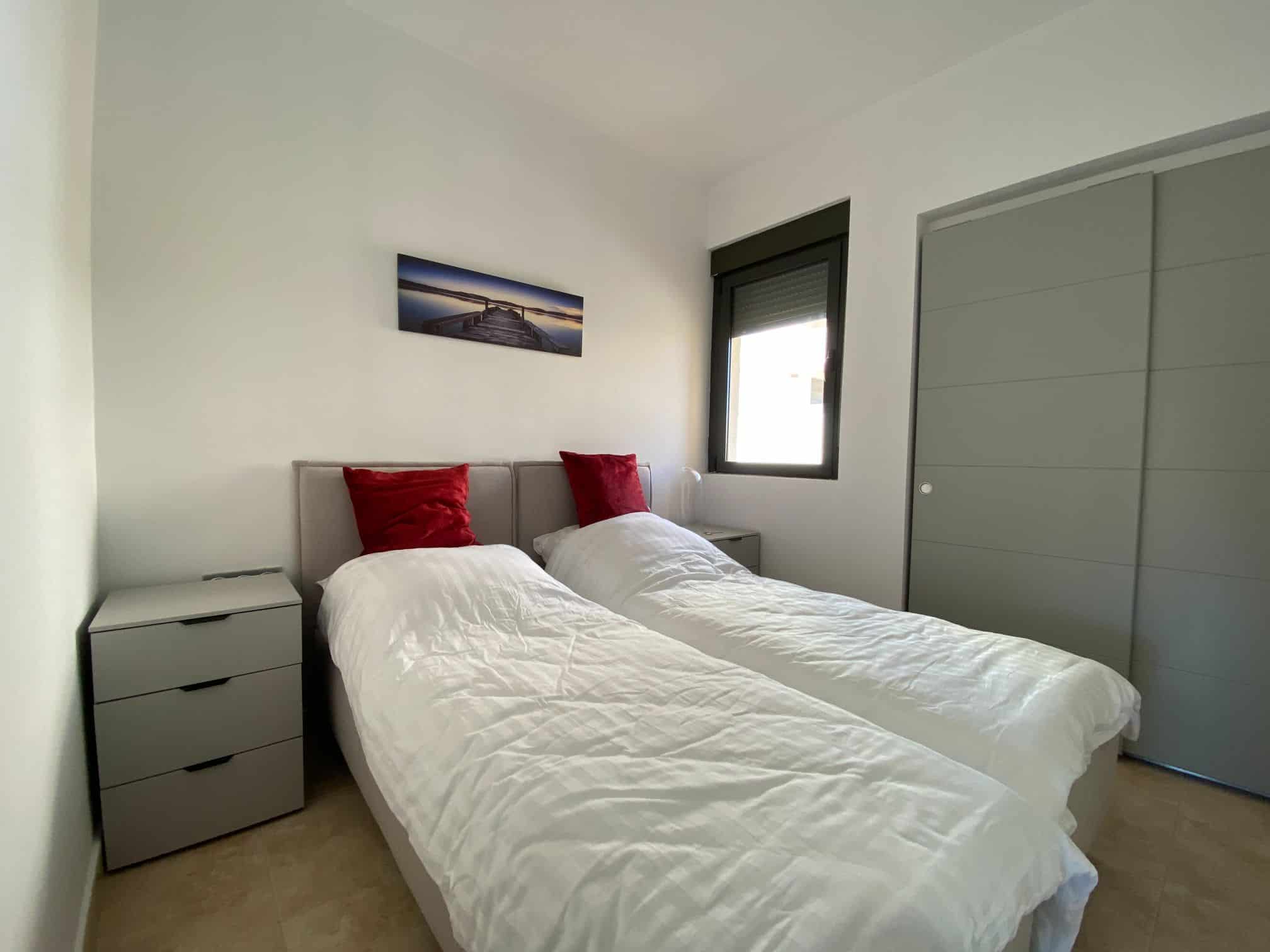In terms of quality, these properties have perfect, top-quality finishes and come with pre-installation for hot and cold A/C and fully fitted wardrobes in both bedrooms.