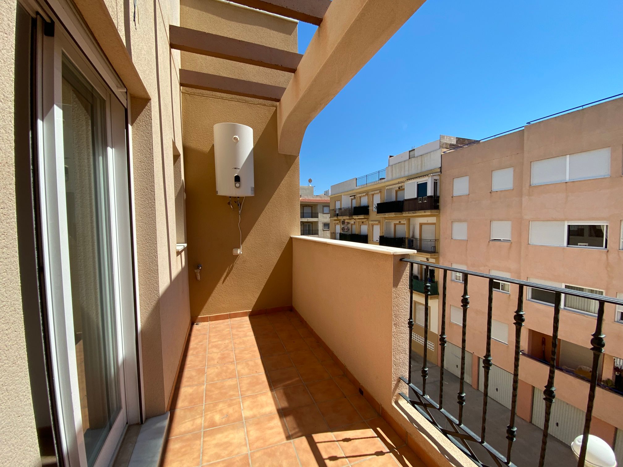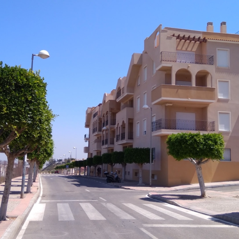 Apartments with two bedrooms and two bathrooms, located in a building with four floors above ground level and one floor below ground level, which has an elevator. It is located in the municipality of Garrucha, province of Almería. The house is distributed in two bedrooms, a living room, a kitchen, a bathroom, and hall. It has a normal entrance door, white lacquered aluminium windows, casement windows, and plastic shutters. The property is located in a quiet area of the town of Garrucha, surrounded by houses of similar characteristics. The building has an approximate age of about eight years. The Garrucha beach is also known as the Playa de las Escobetas and is the only sandy area that the municipality has. The promenade runs along the beach from end to end, and also the commercial, sports and fishing ports are flanked by its three ports. When we talk about Garrucha, we must stop for a while on its magnificent Paseo Marítimo, better known as the Malecon. It has easy access by A-370 roads, quiet area with a good level of services such as buses, supermarkets, restaurants, pharmacies, primary and secondary schools, and health centre.