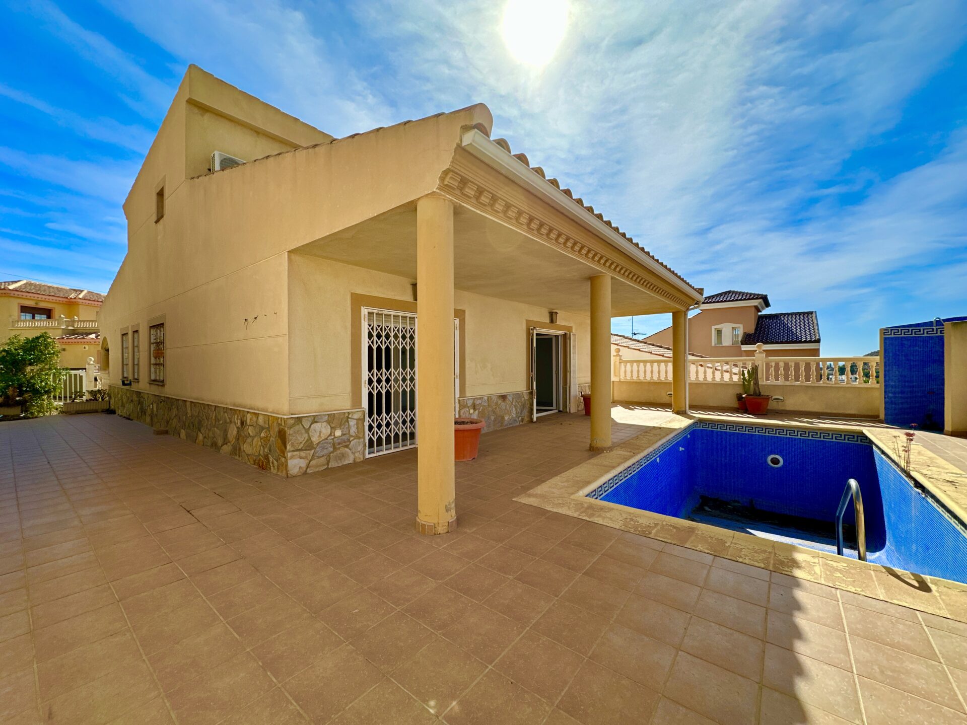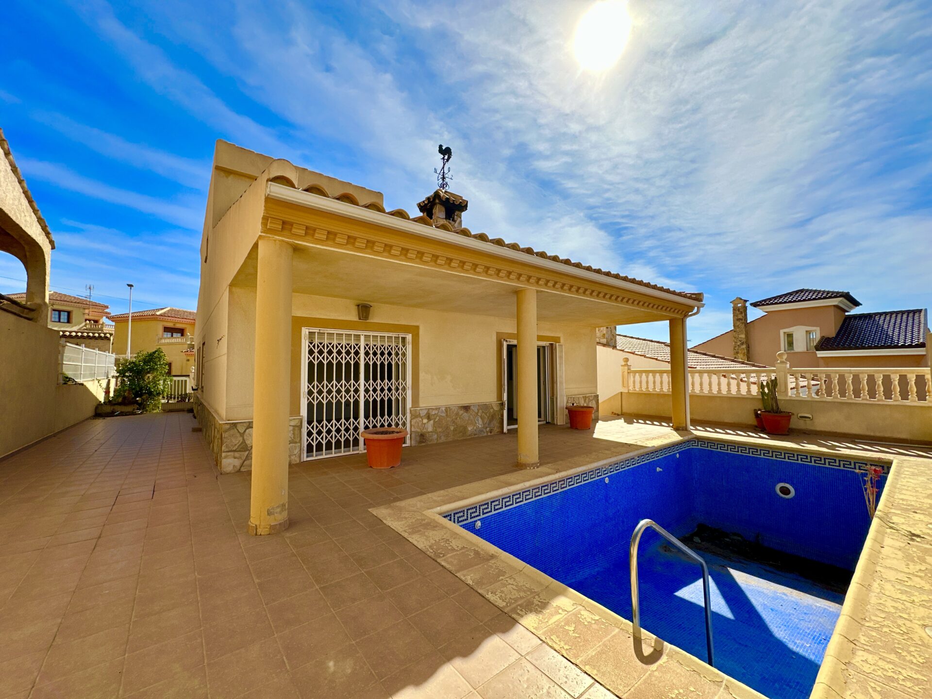 Explore a fantastic investment opportunity in this detached villa with a pool, nestled in the heart of San Juan de Los Terreros, just minutes away from the pristine beaches.