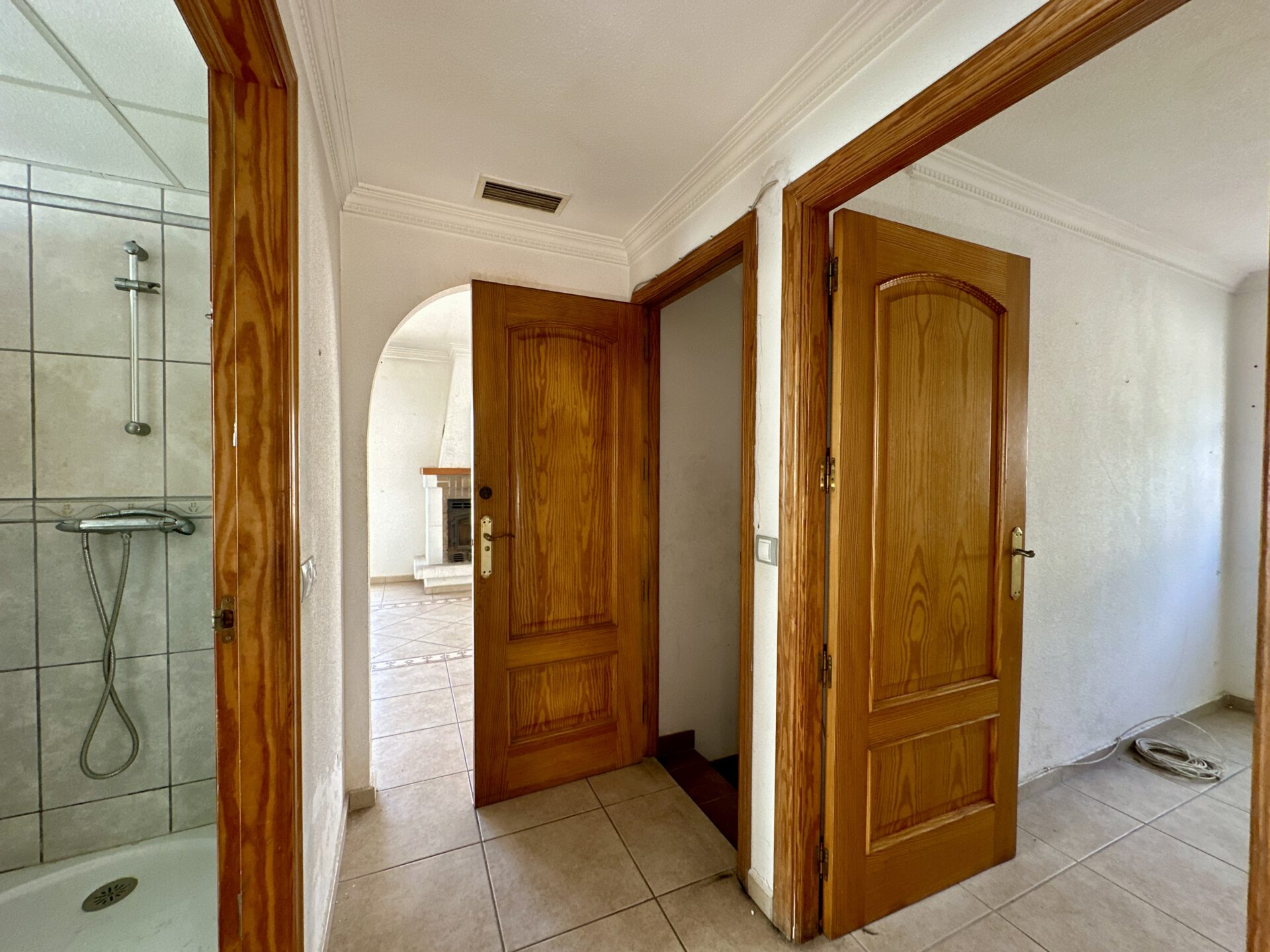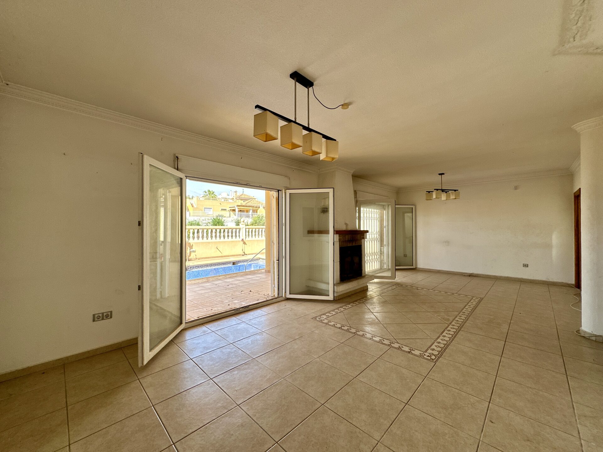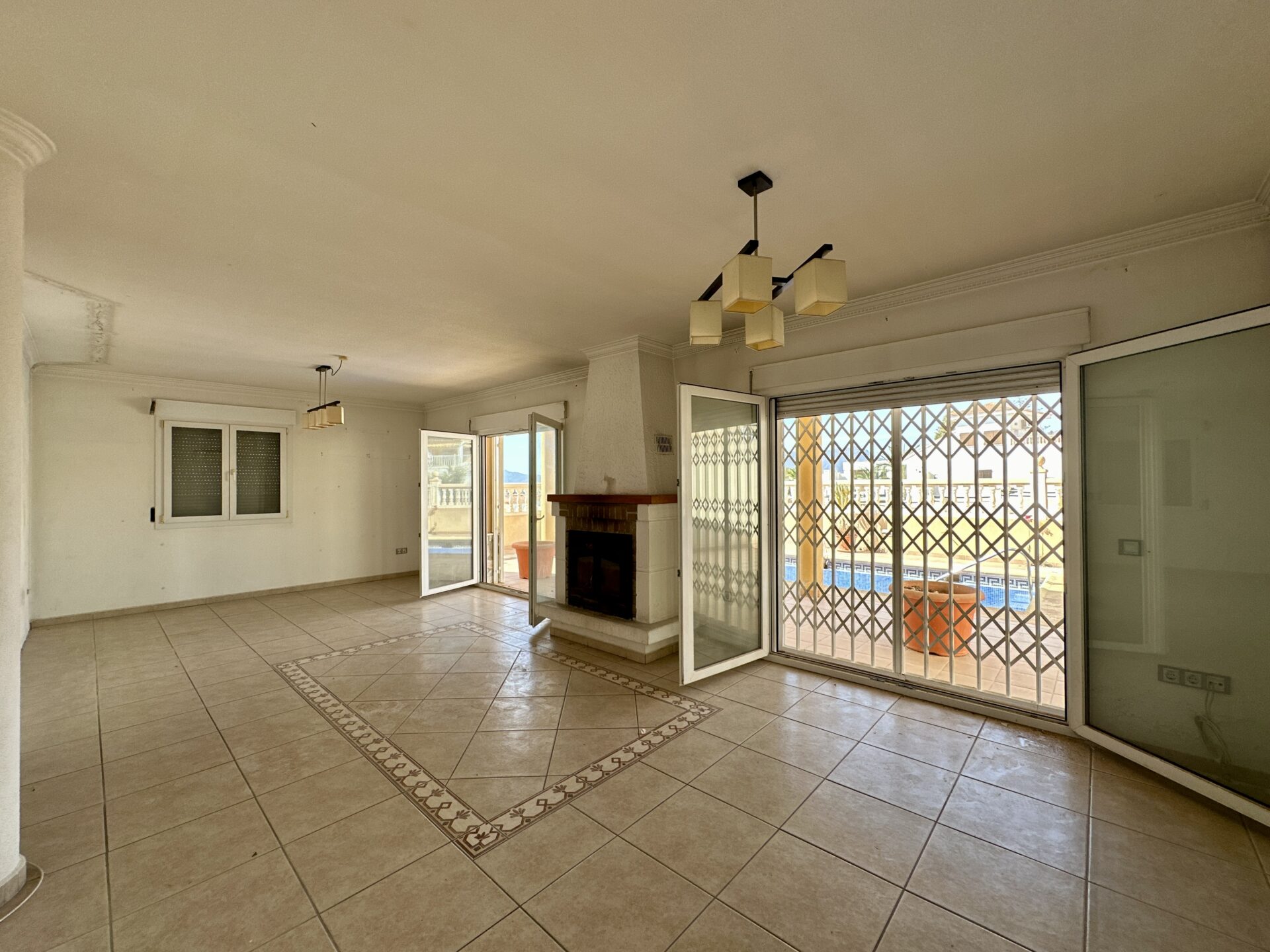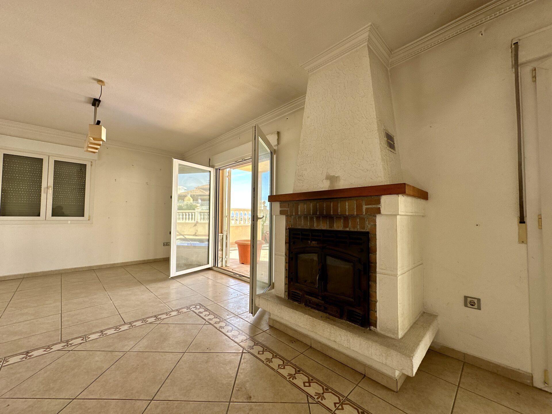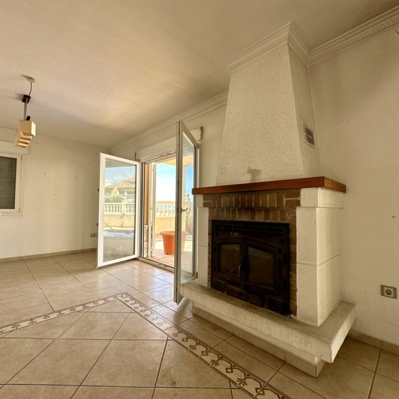 – ️ Ground/first floor with 3 bedrooms, 1 bathroom, kitchen with pantry, and spacious living-dining room with a fireplace leading to a porch and private pool (21 m²)