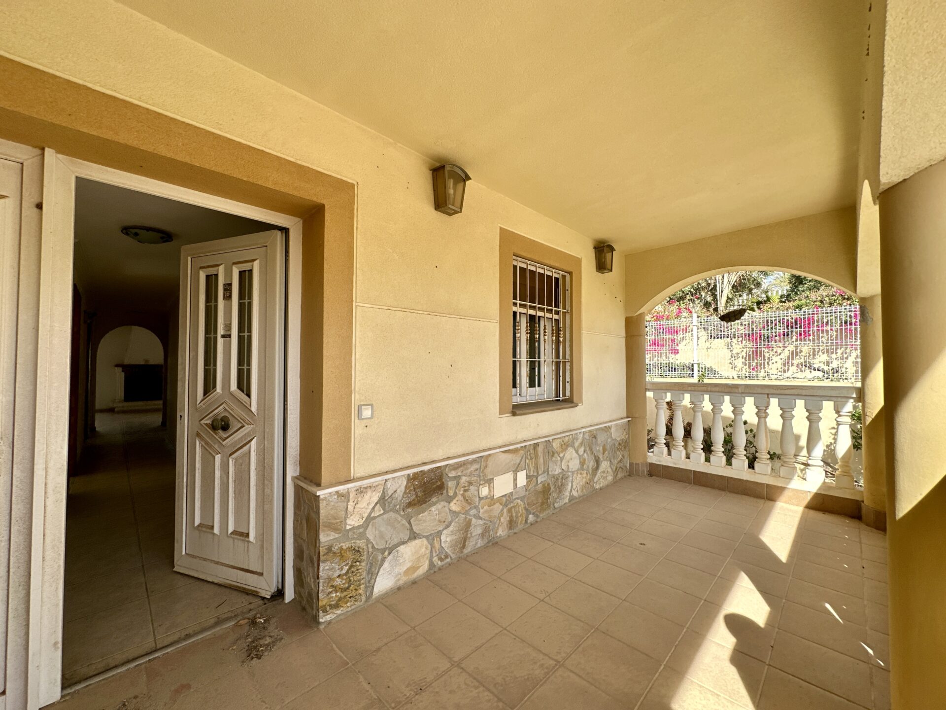 – Multiple terraces, a covered porch, and a 186 m² garden