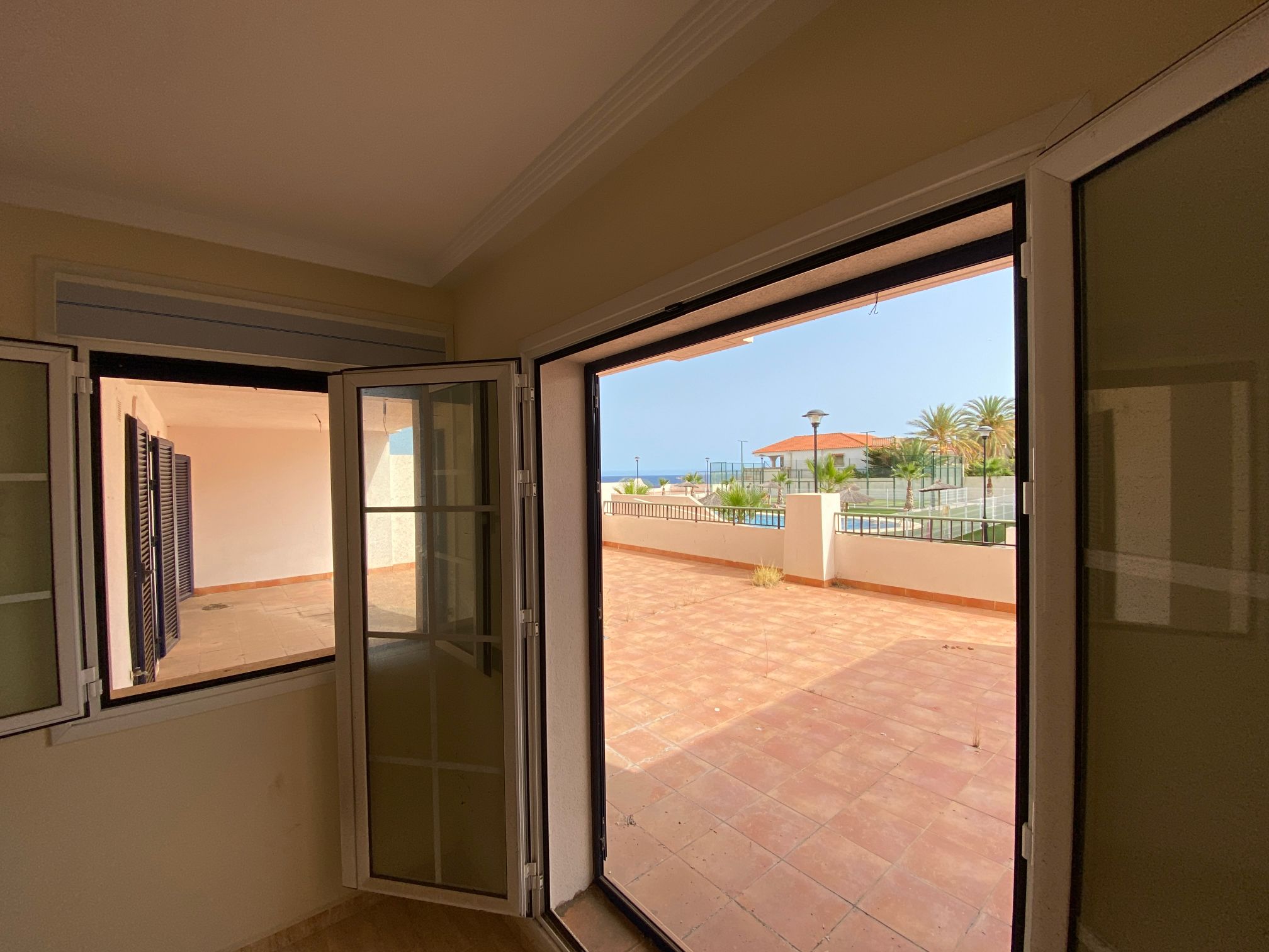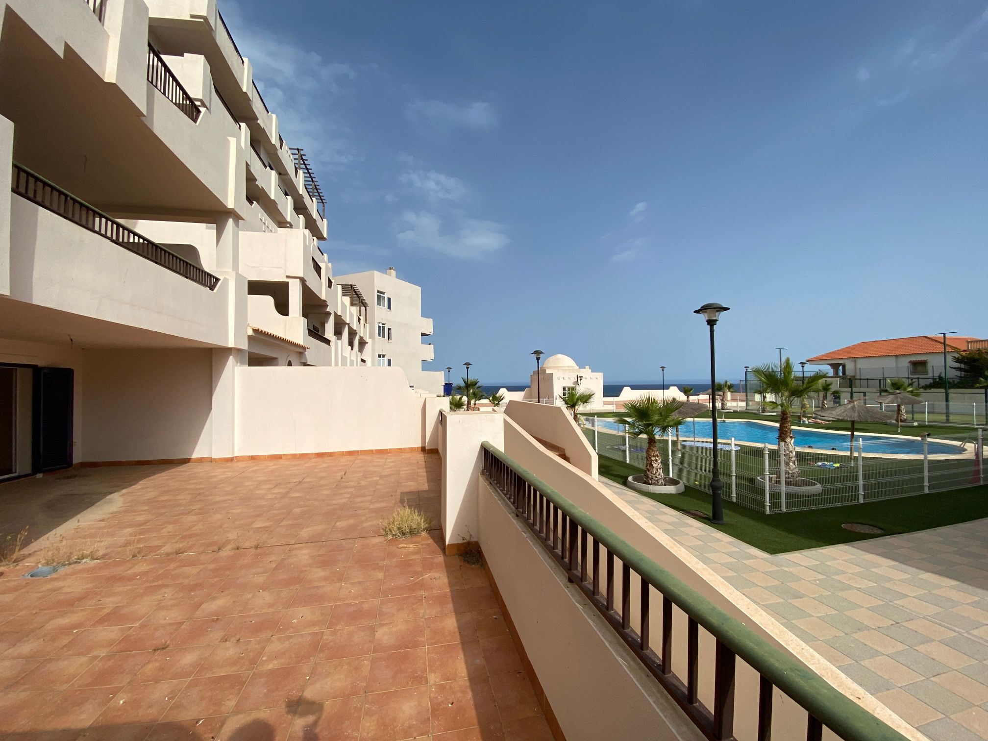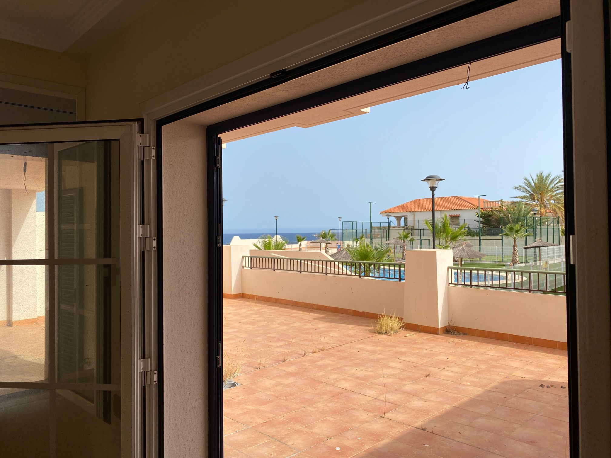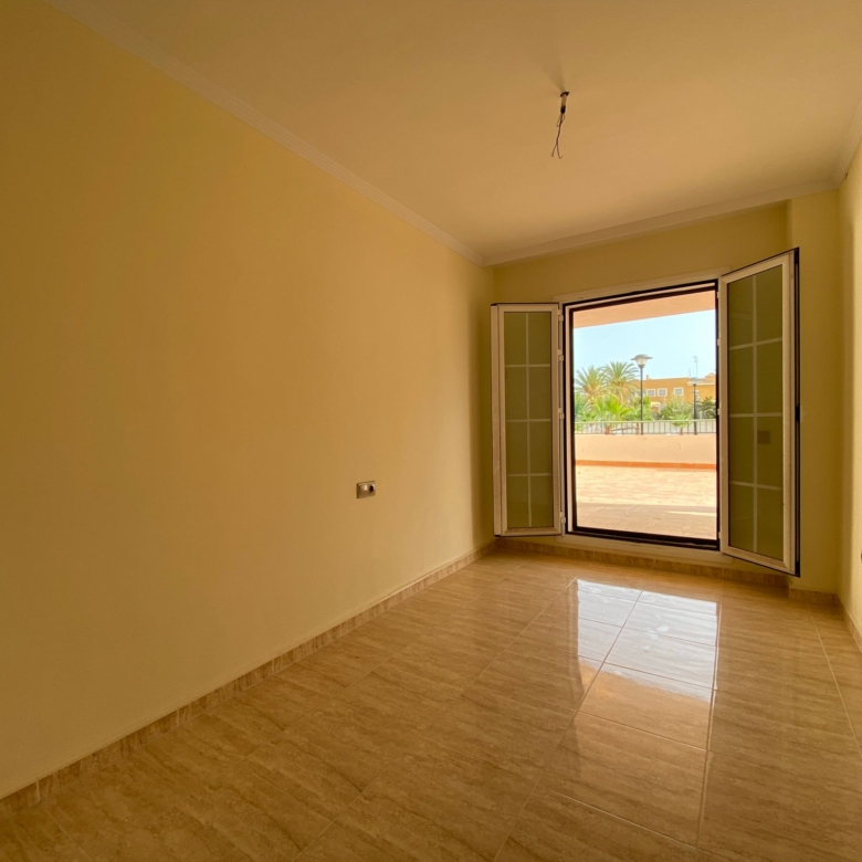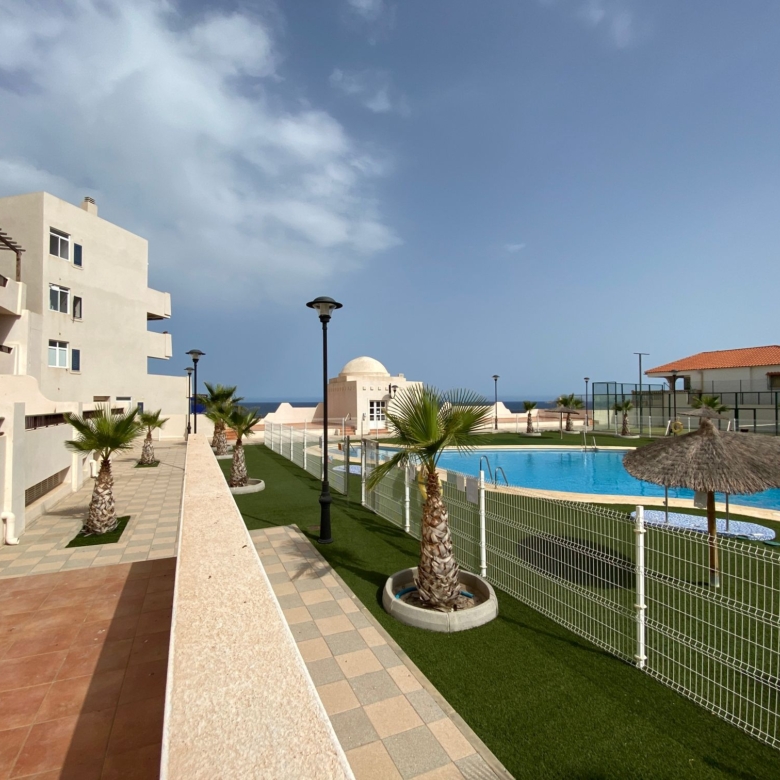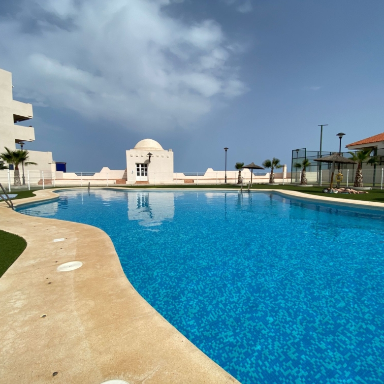 The property is distributed in a kitchen, living-dining room, two bedrooms and a bathroom. It has a normal entrance door, white lacquered aluminium exterior carpentry, folding windows and PVC blinds. Kitchen and bathroom with tiled walls. Stoneware floors. Interior woodwork. Unfurnished kitchen and full bathroom. It has pre-installation of air conditioning, video intercom and community pool, paddle tennis court and green areas. It is located in an area with good road access, surrounded by houses with the same characteristics, located in the heart of Almería’s eastern coast.