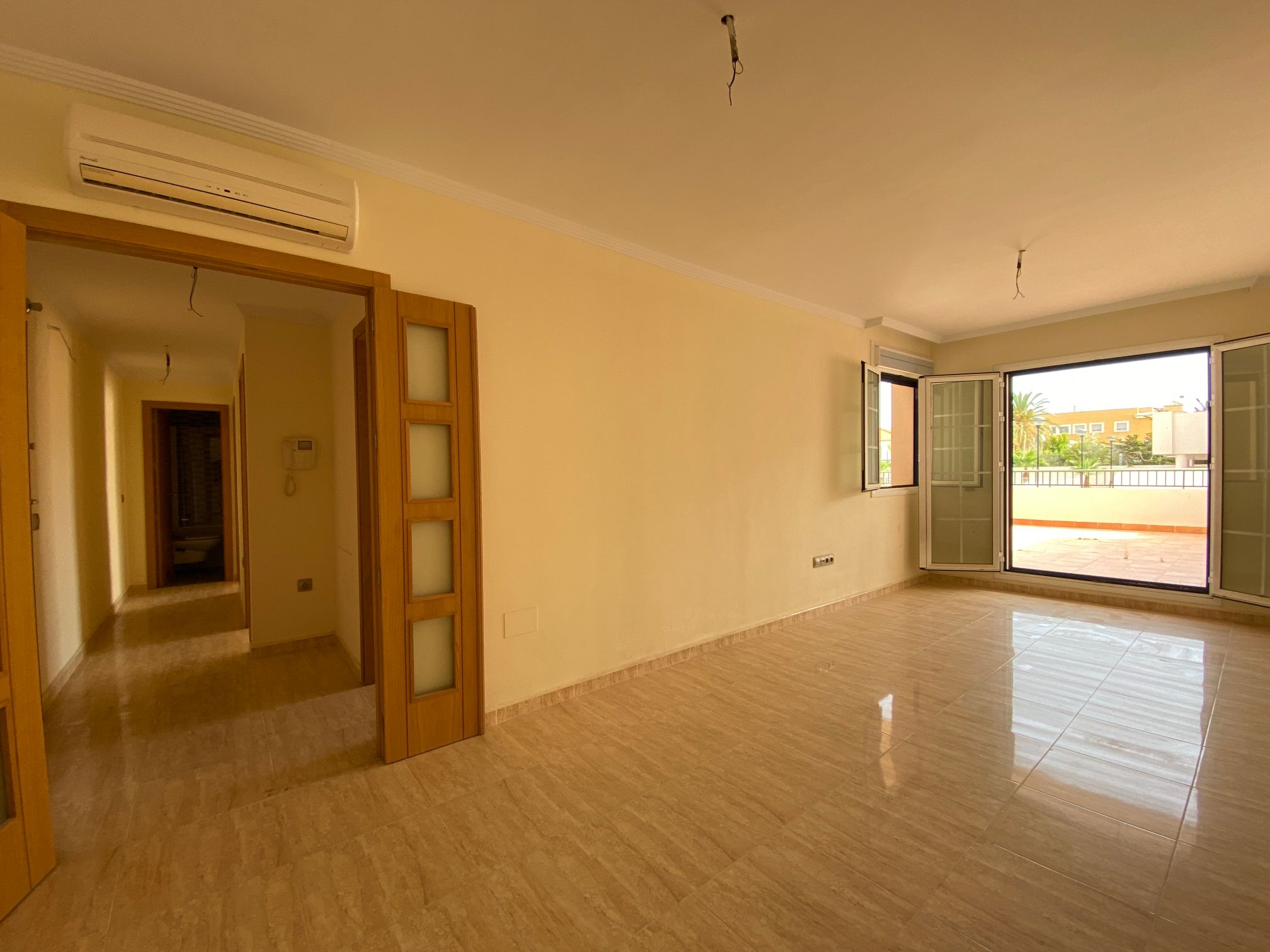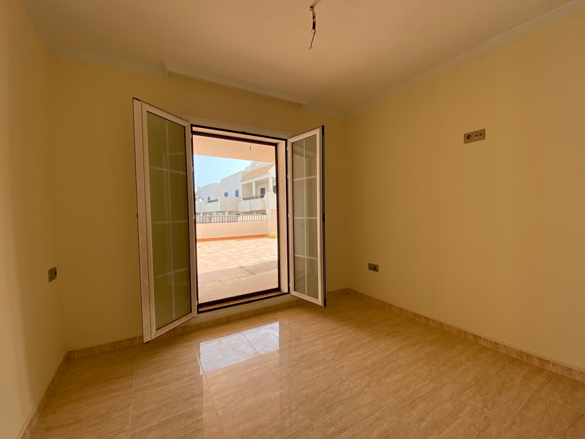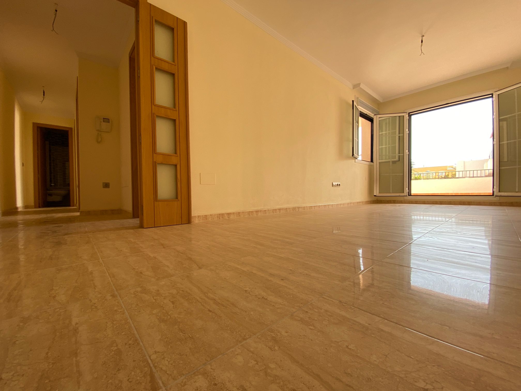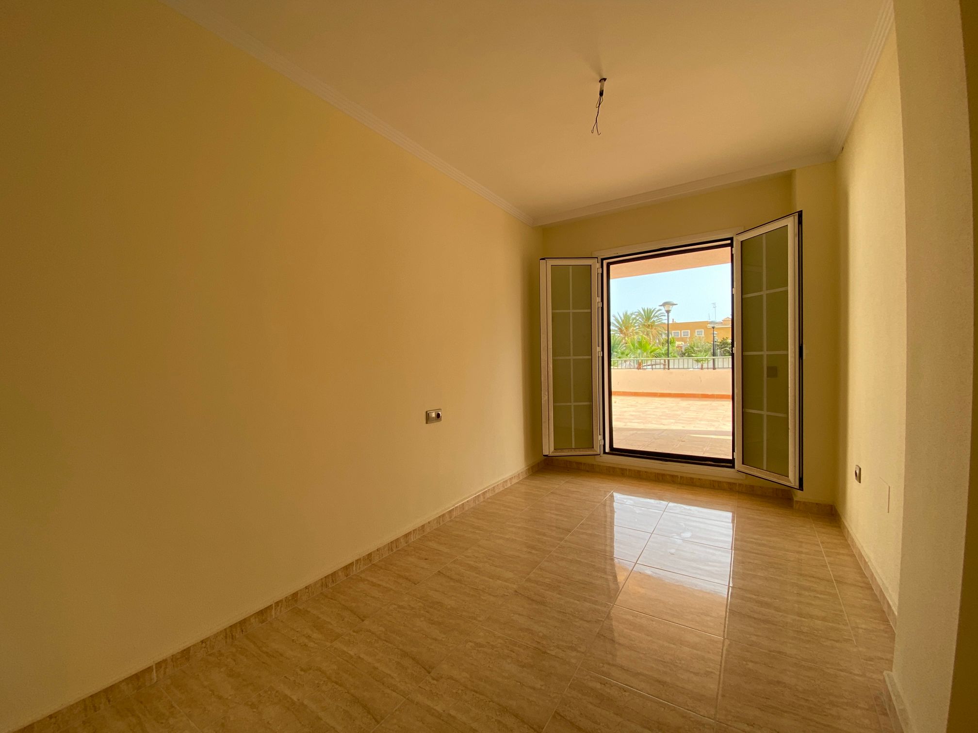 The property is distributed in a kitchen, living-dining room, two bedrooms and a bathroom. It has a normal entrance door, white lacquered aluminium exterior carpentry, folding windows and PVC blinds. Kitchen and bathroom with tiled walls. Stoneware floors. Interior woodwork. Unfurnished kitchen and full bathroom. It has pre-installation of air conditioning, video intercom and community pool, paddle tennis court and green areas. It is located in an area with good road access, surrounded by houses with the same characteristics, located in the heart of Almería’s eastern coast.