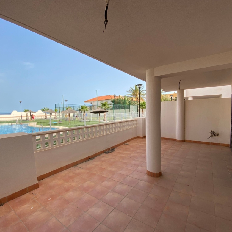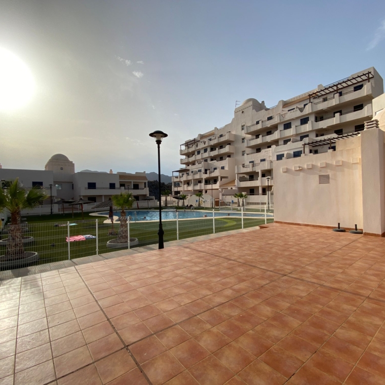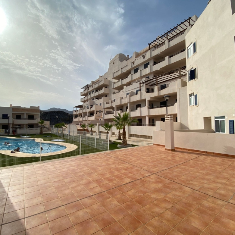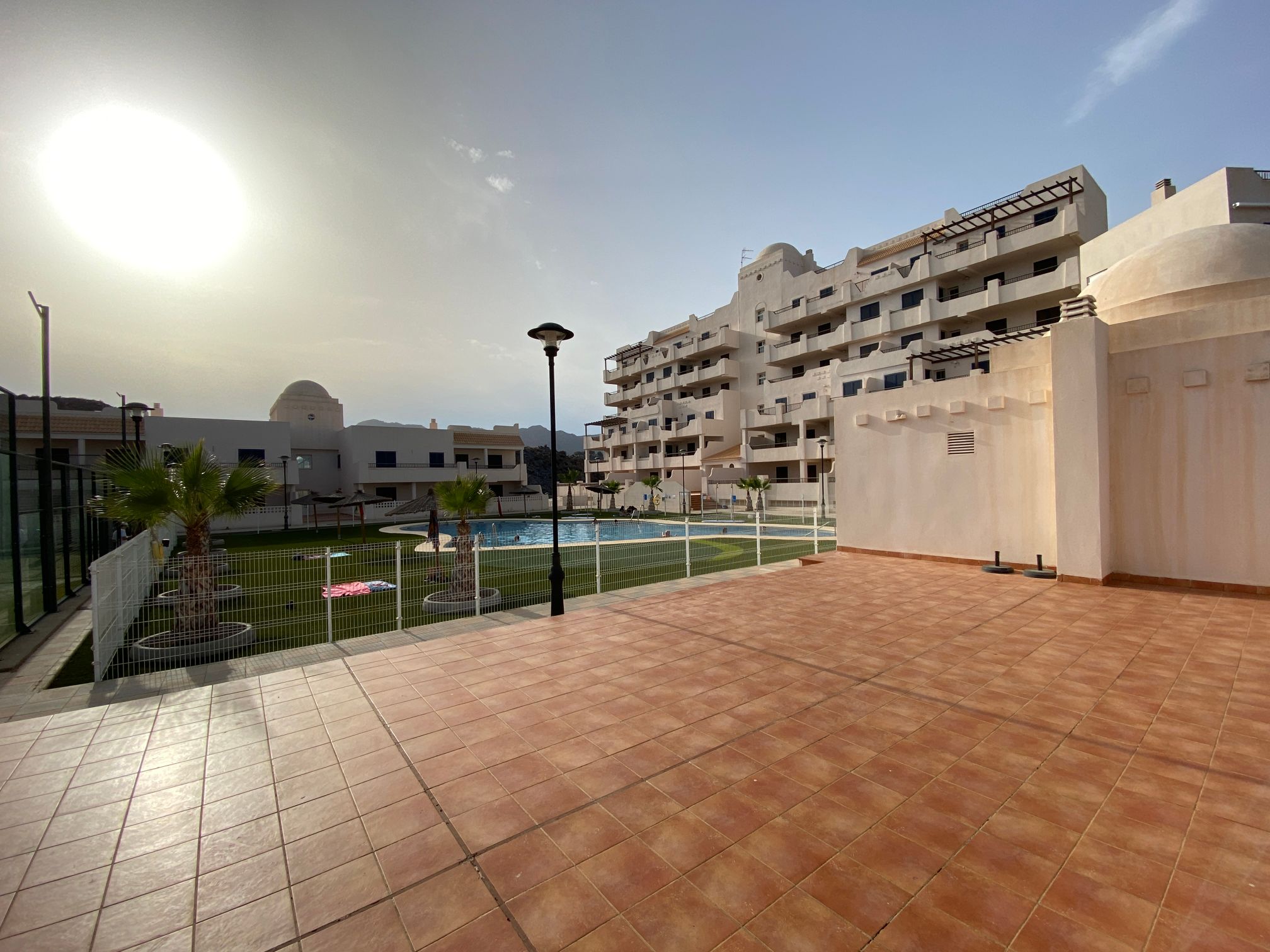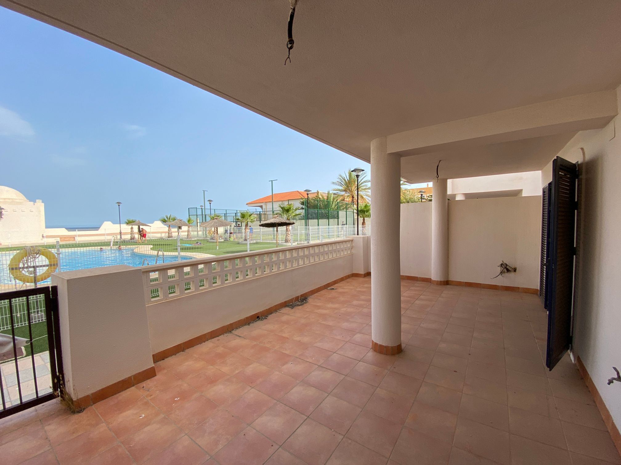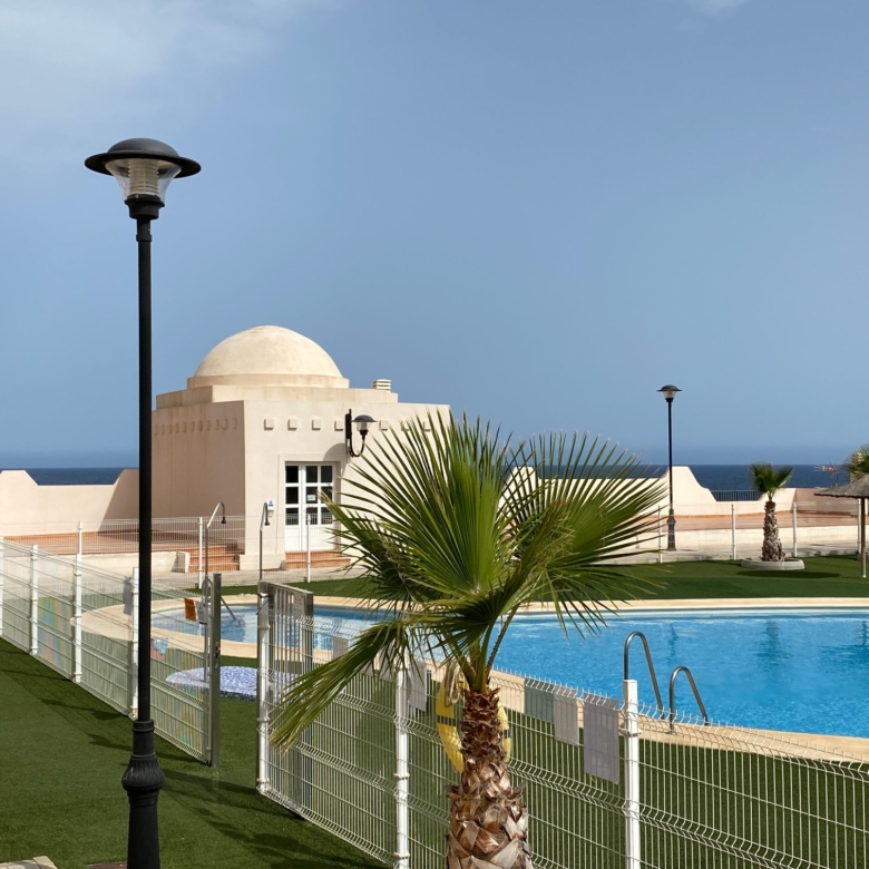 The property is distributed in a kitchen, living-dining room, two bedrooms and a bathroom. It has a normal entrance door, white lacquered aluminium exterior carpentry, folding windows and PVC blinds. Kitchen and bathroom with tiled walls. Stoneware floors. Interior woodwork. Unfurnished kitchen and full bathroom. It has pre-installation of air conditioning, video intercom and community pool, paddle tennis court and green areas. It is located in an area with good road access, surrounded by houses with the same characteristics, located in the heart of Almería’s eastern coast.