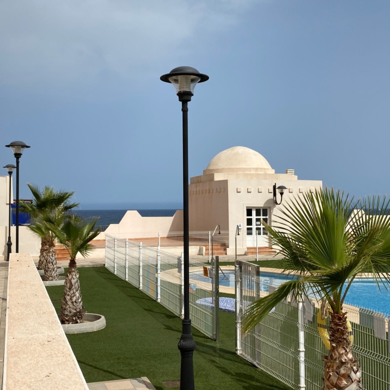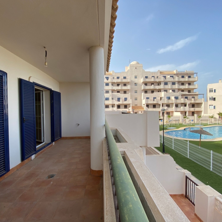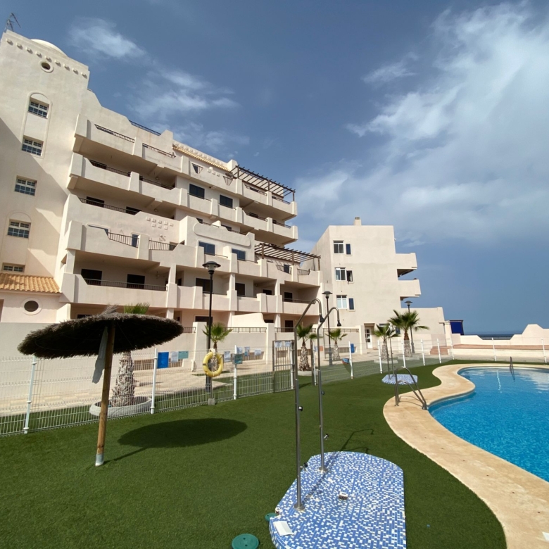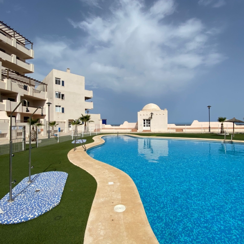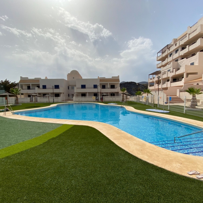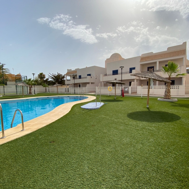 The property is distributed in a kitchen, living-dining room, two bedrooms and a bathroom. It has a normal entrance door, white lacquered aluminium exterior carpentry, folding windows and PVC blinds. Kitchen and bathroom with tiled walls. Stoneware floors. Interior woodwork. Unfurnished kitchen and full bathroom. It has pre-installation of air conditioning, video intercom and community pool, paddle tennis court and green areas. It is located in an area with good road access, surrounded by houses with the same characteristics, located in the heart of Almería’s eastern coast.