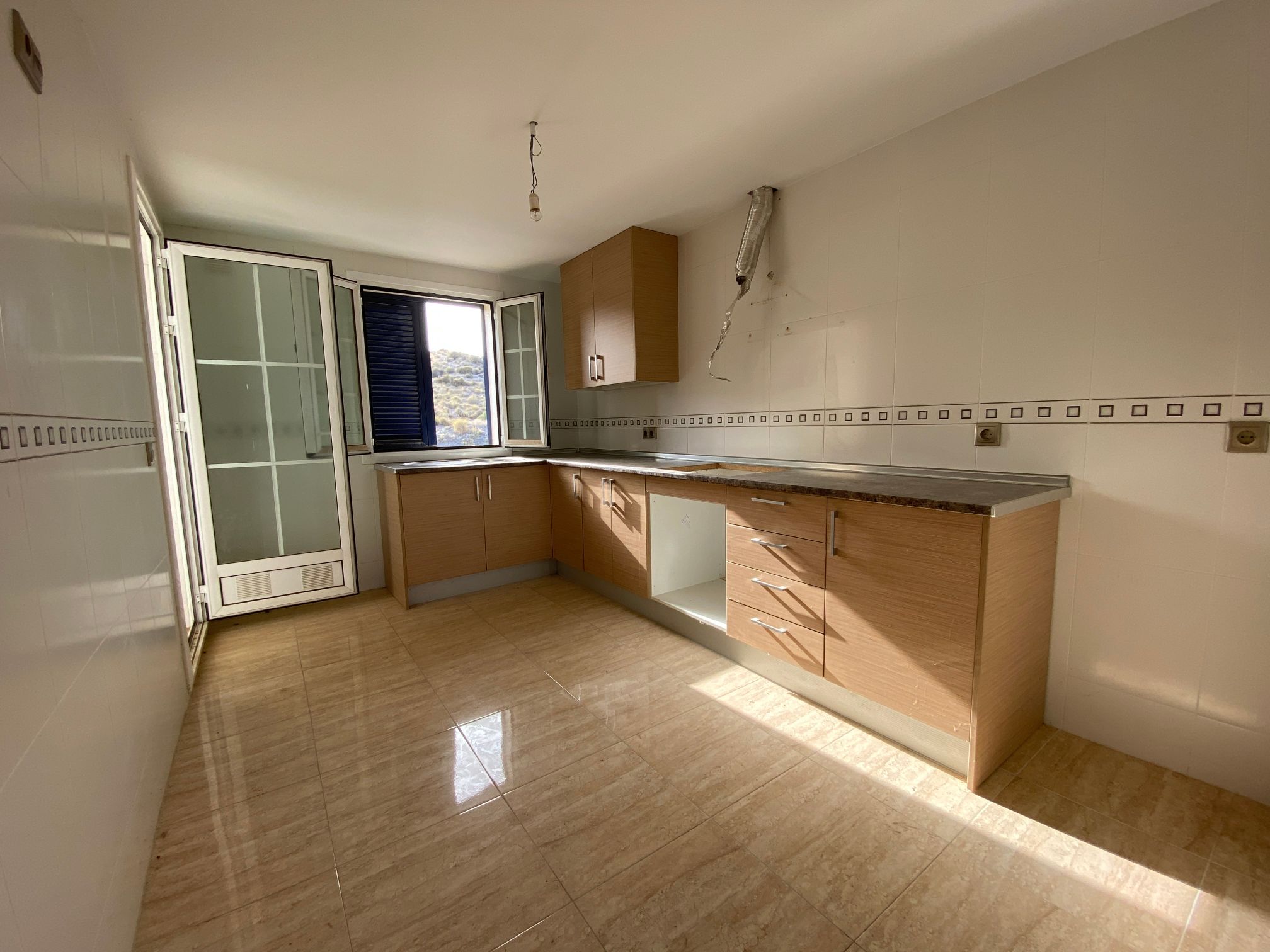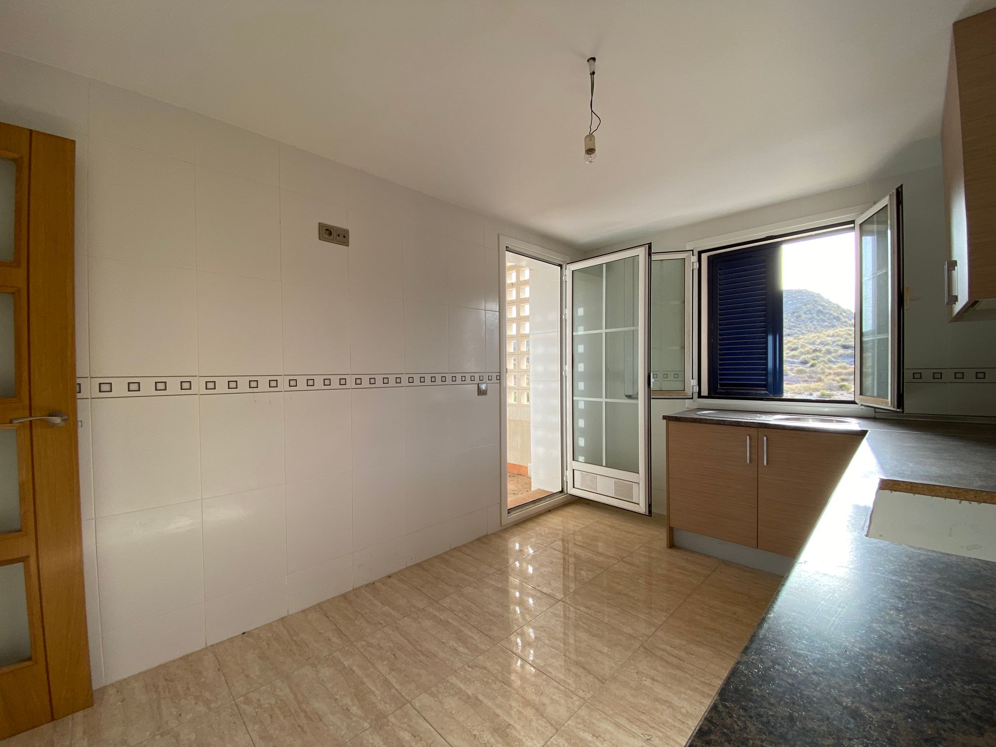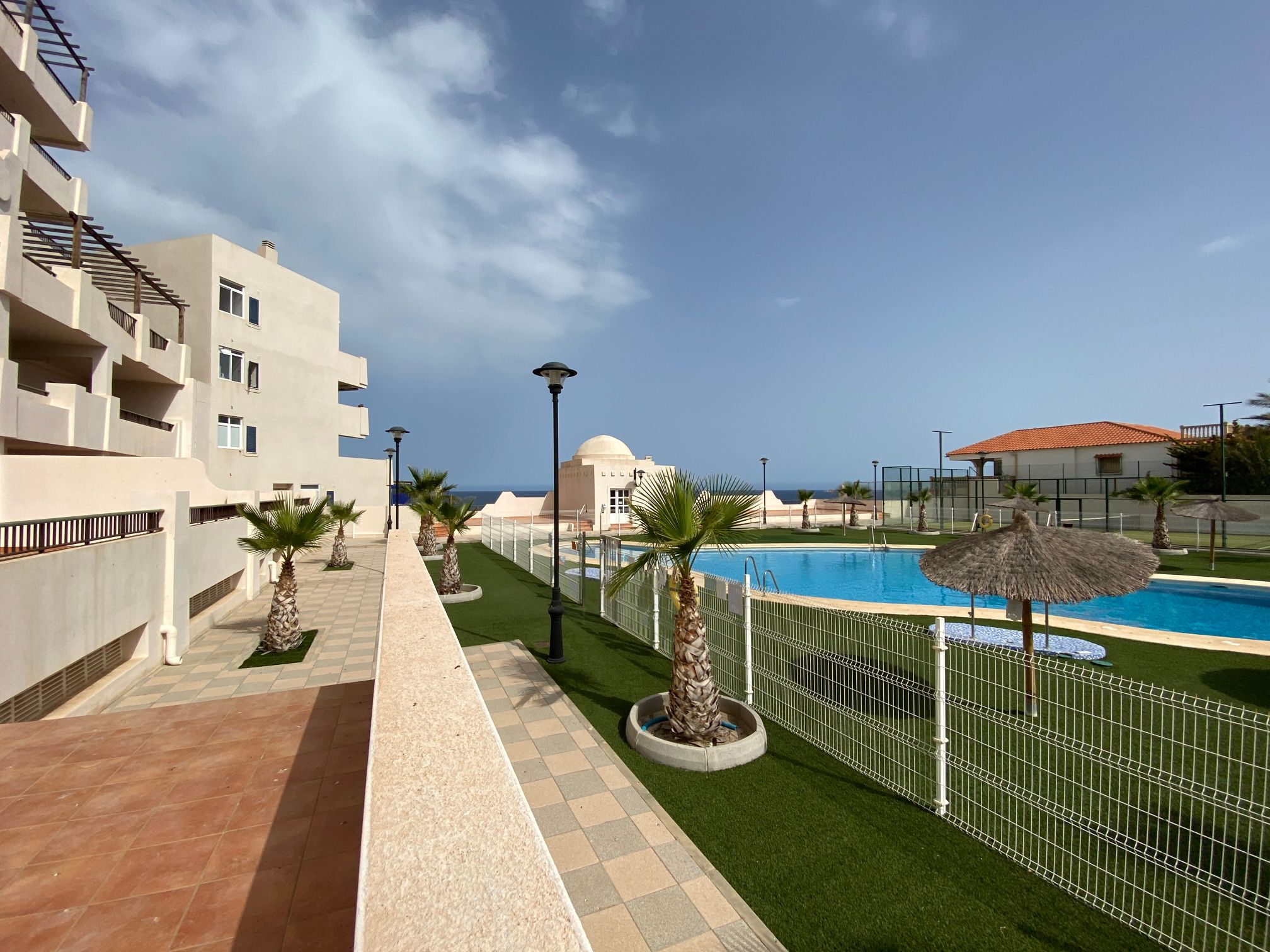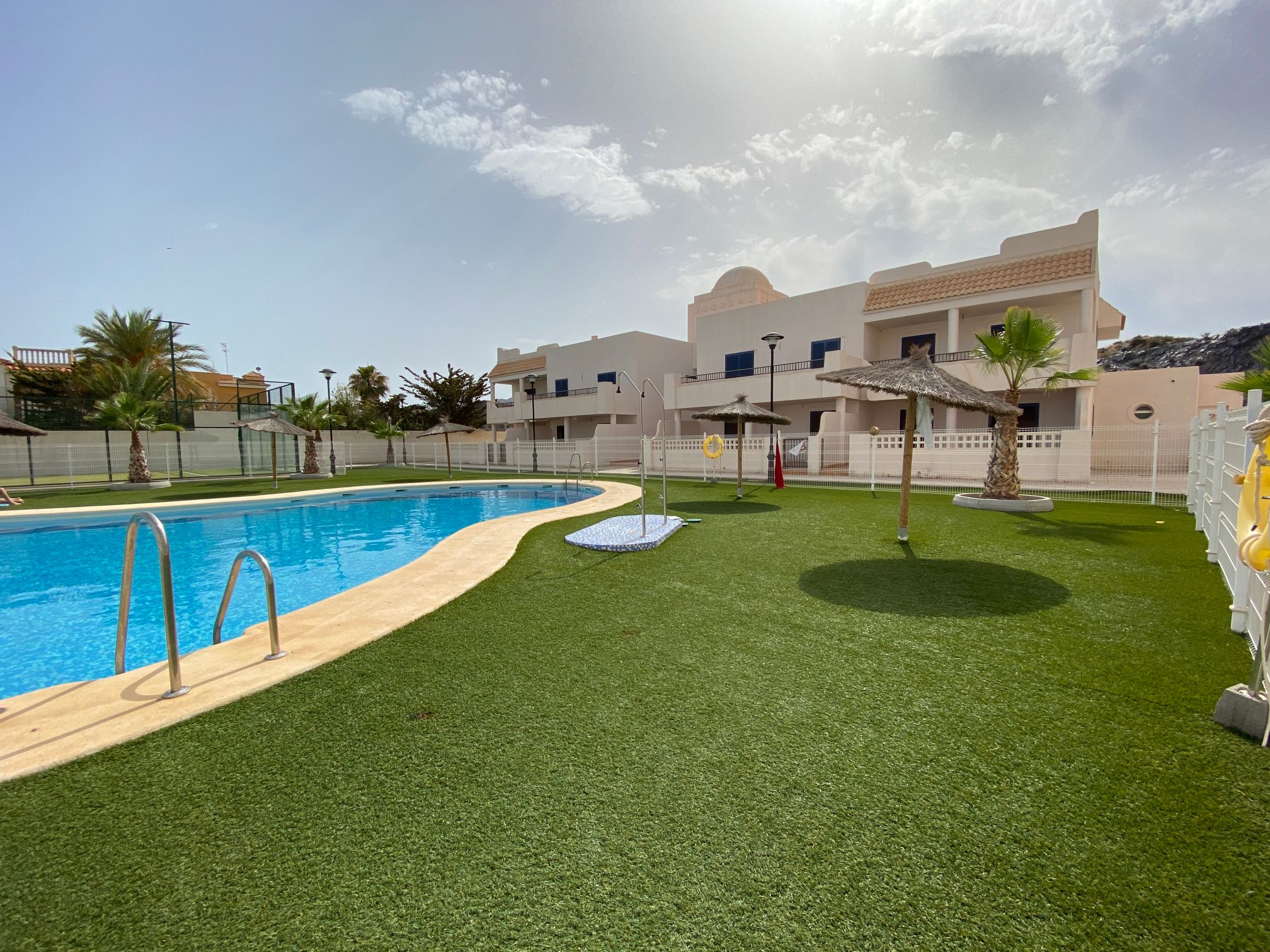 The property is distributed in a kitchen, living-dining room, two bedrooms and a bathroom. It has a normal entrance door, white lacquered aluminium exterior carpentry, folding windows and PVC blinds. Kitchen and bathroom with tiled walls. Stoneware floors. Interior woodwork. Unfurnished kitchen and full bathroom. It has pre-installation of air conditioning, video intercom and community pool, paddle tennis court and green areas. It is located in an area with good road access, surrounded by houses with the same characteristics, located in the heart of Almería’s eastern coast.