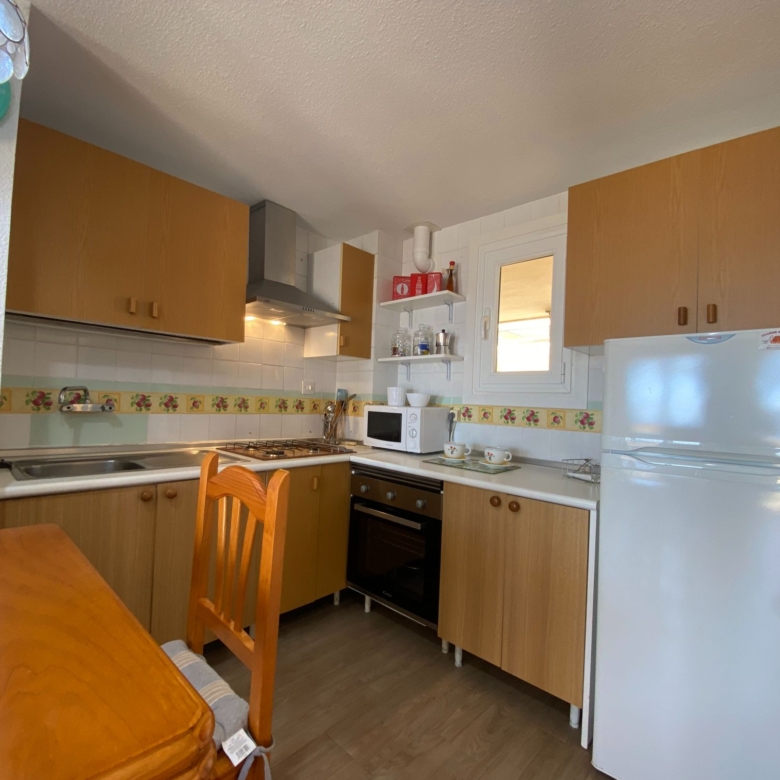 Apartment on the first floor with beautiful views of the sea and a good orientation. From the entrance we access directly to the living room and kitchen, it is furnished and with appliances, it also has an opposite-facing window for better ventilation. From the living room and dining area, you access the terrace and the most special area, where you can enjoy the views and the morning sun.