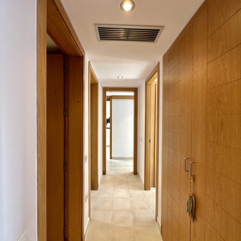 This property is not only perfect for permanent residence but also a fantastic option for rental during the high season. The community boasts direct access to the beach and offers round-the-clock security. The community fees for this freehold property amount to €107.18 per month. The apartment is equipped with hot and cold central air conditioning. The annual municipal tax (IBI) is approximately €320 per year.