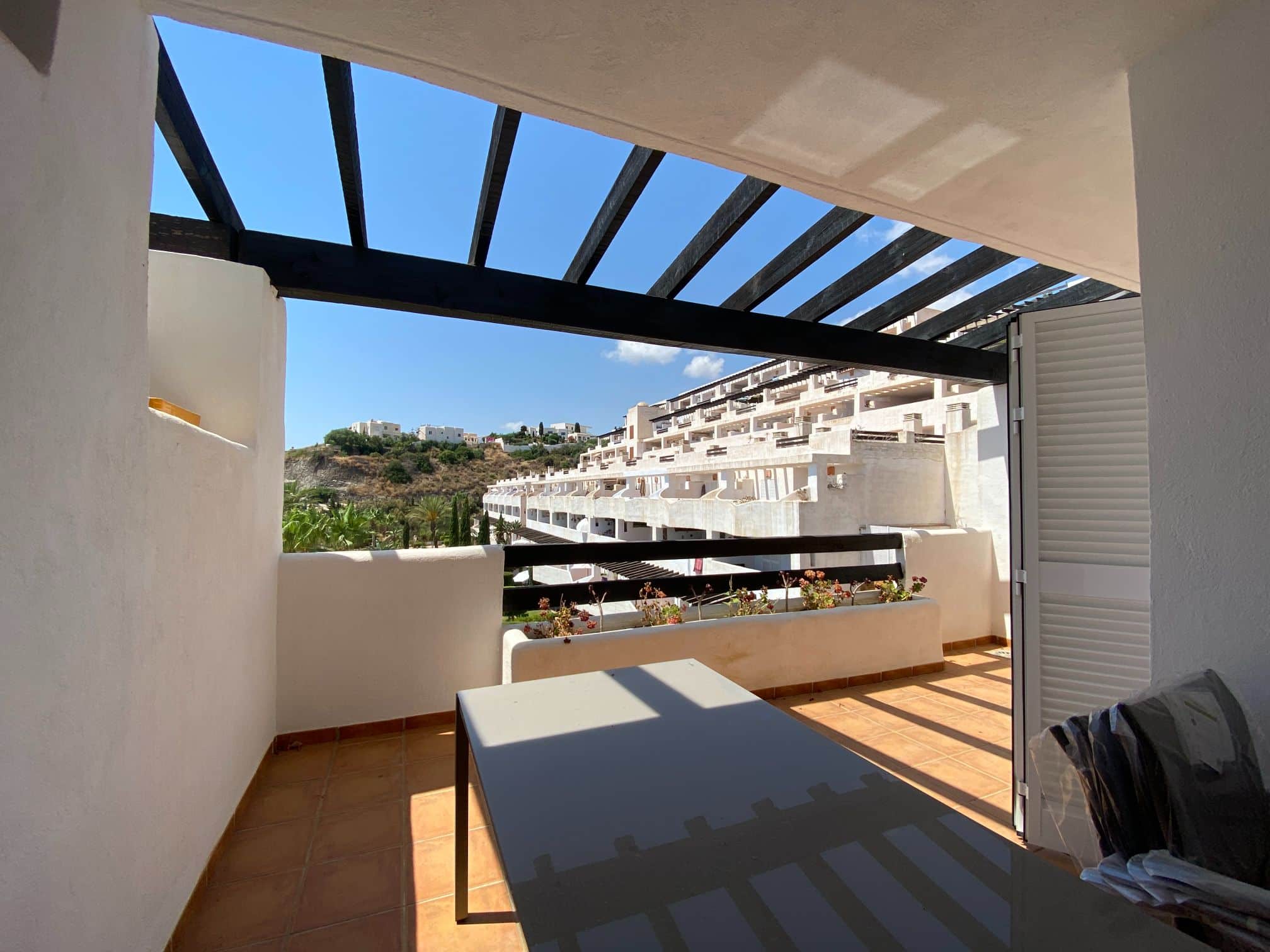Spirit of Mojacar penthouse apartment is in Block 1, consisting of 2 beds / 1 bathroom with a south-facing terrace. This is a quiet area between the beach of Cantal and Lance Nuevo Beach. It is approx. 500 meters from the beach, local amenities, supermarkets, cafes and bars.