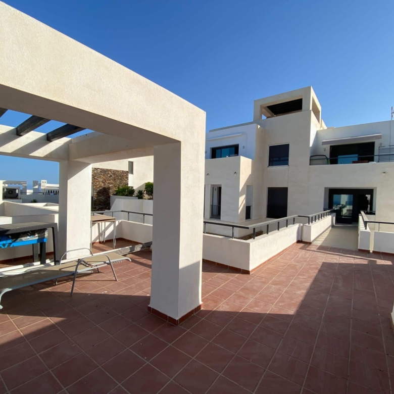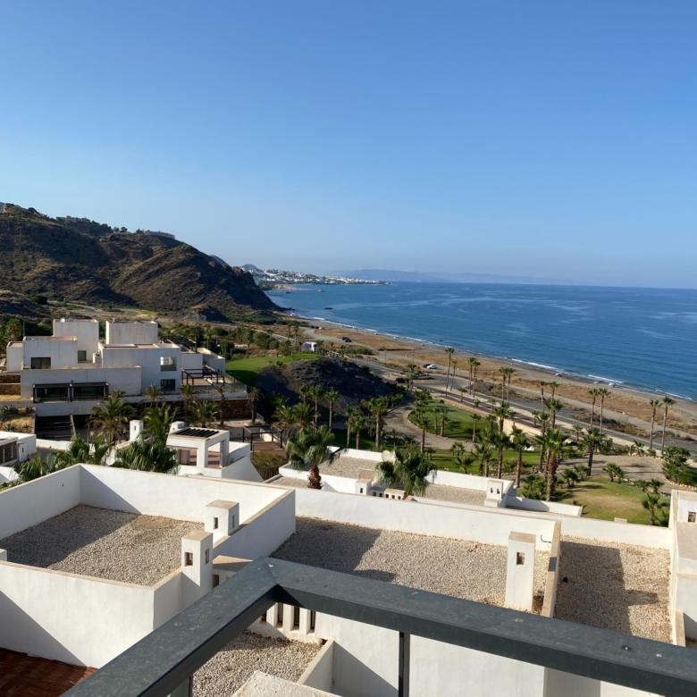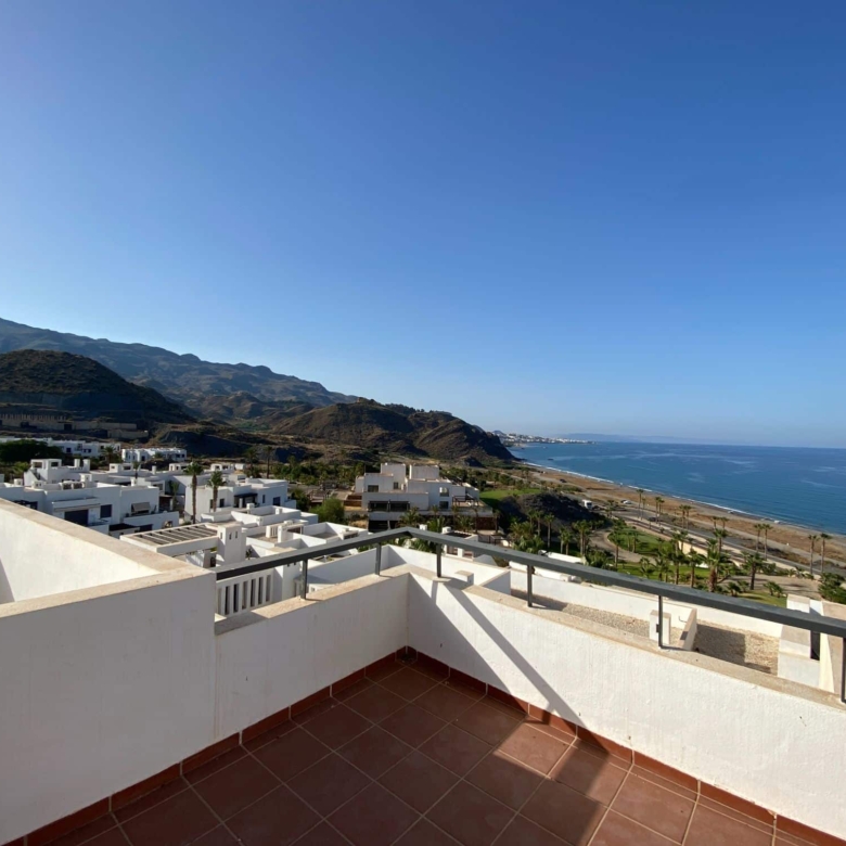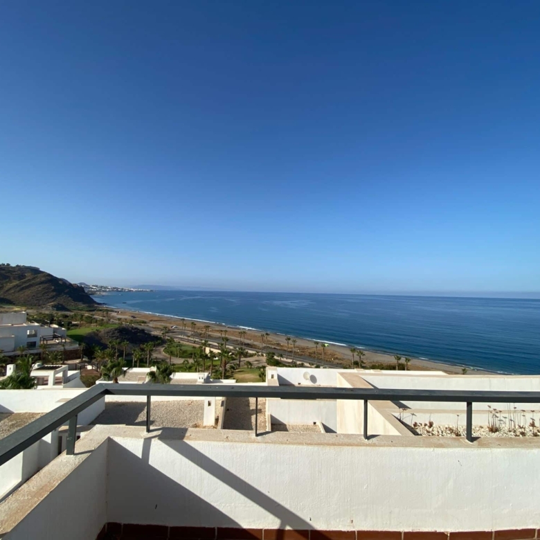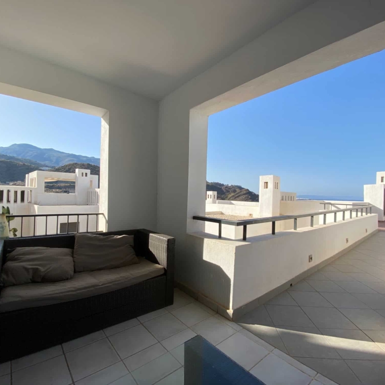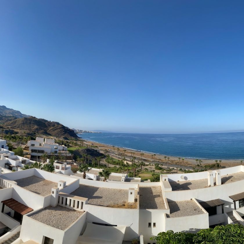 Playa Macenas beach resort is five minutes drive along the coast from Mojacar in the province of Almeria. This is a great location for a family holiday or a golfing break. The complex is quite different from the majority found in Spain with its superior build, architectural design, and high-quality finish. There are many top golf courses within a short drive of the resort including Desert Springs, Valle Des Este, and Aguillas. The nightlife of Mojacar provides an endless supply of evening entertainment in the form of restaurants, bars, and clubs. For the family there are numerous swimming pools on the resort plus off resort there is 17km of unspoiled beaches to choose from, two great water parks, go-karting and also the mini Hollywood Studios at the Tabernas Desert. The romantic white village of Old Mojacar is perched high on the nearby hilltop.