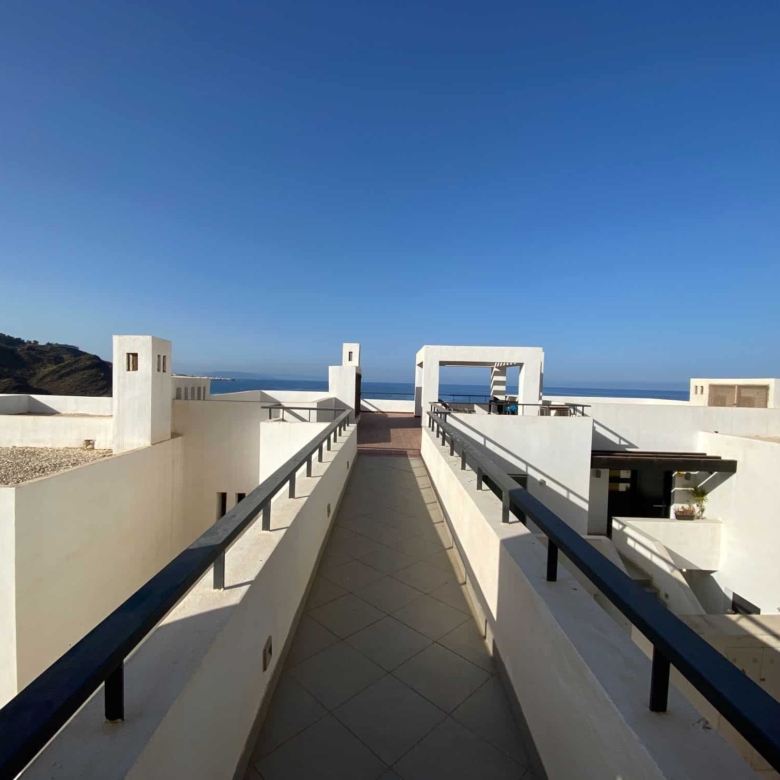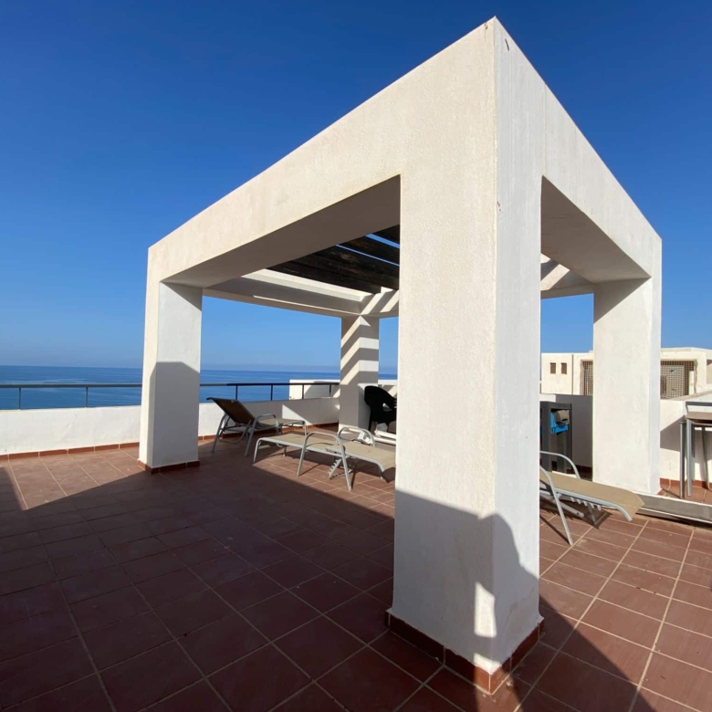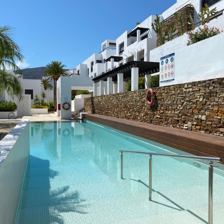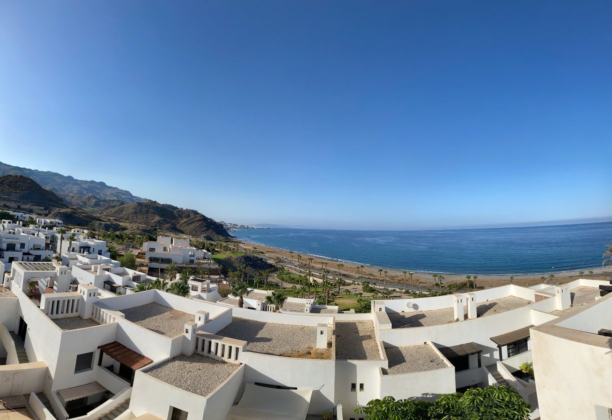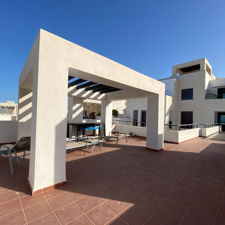 Playa Macenas beach resort is five minutes drive along the coast from Mojacar in the province of Almeria. This is a great location for a family holiday or a golfing break. The complex is quite different from the majority found in Spain with its superior build, architectural design, and high-quality finish. There are many top golf courses within a short drive of the resort including Desert Springs, Valle Des Este, and Aguillas. The nightlife of Mojacar provides an endless supply of evening entertainment in the form of restaurants, bars, and clubs. For the family there are numerous swimming pools on the resort plus off resort there is 17km of unspoiled beaches to choose from, two great water parks, go-karting and also the mini Hollywood Studios at the Tabernas Desert. The romantic white village of Old Mojacar is perched high on the nearby hilltop.