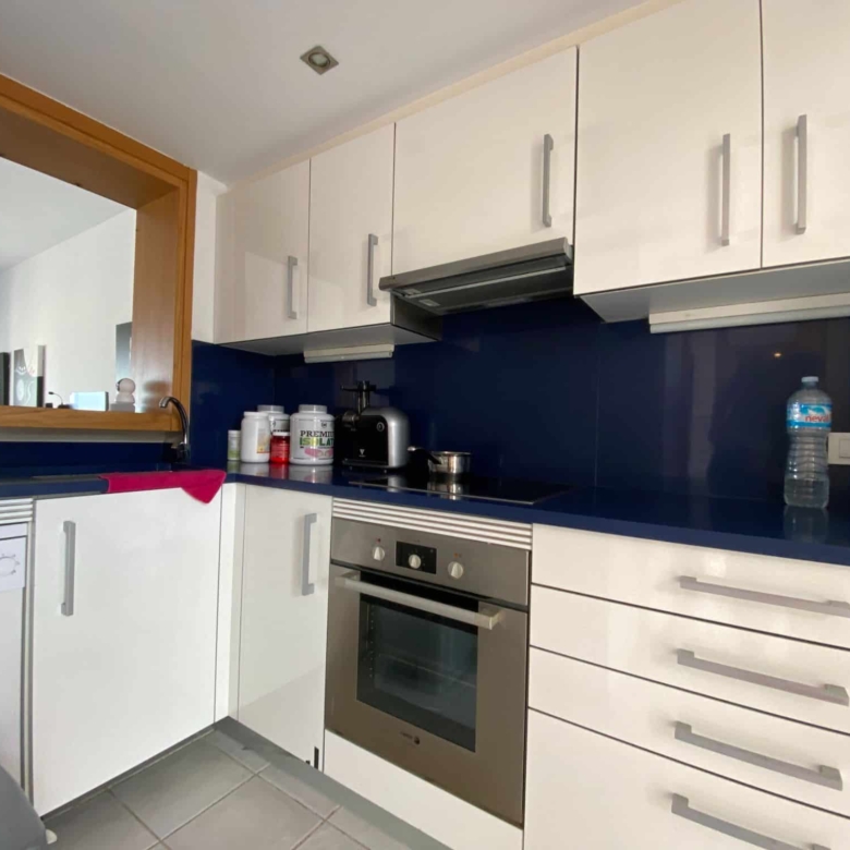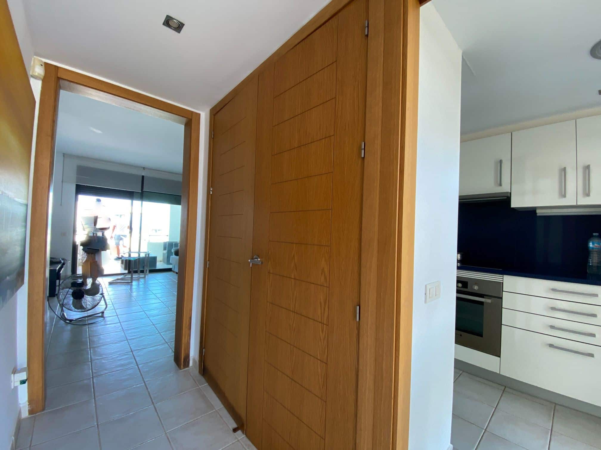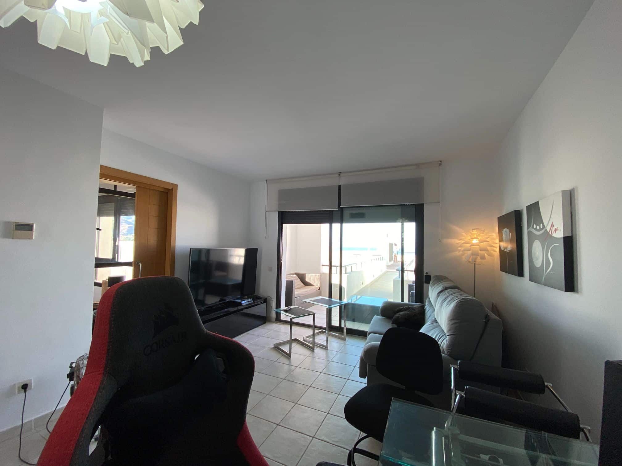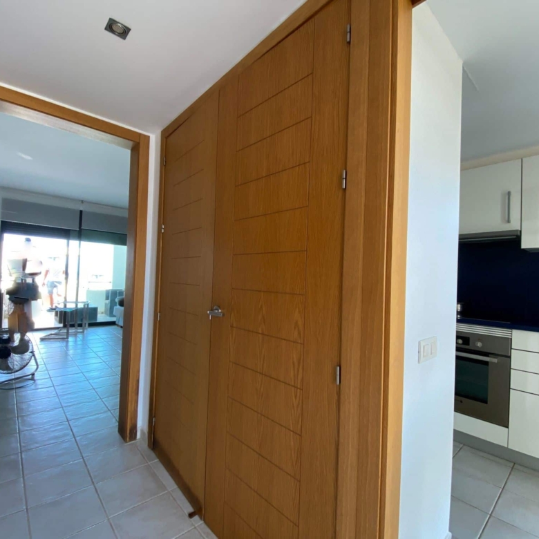 Located on the Playa Macenas Beach Resort, this is a fabulous, air-conditioned, 2 bedroom, 2 bathroom apartment with wonderful sea views. The Lounge and dining room are well proportioned. The lounge area has a sofa coffee table and 65″ Flat Screen TV (UK & Spanish channels). The dining area has a dining table with 4 chairs and a dresser. Patio doors from the lounge to the terrace. Terrace furniture includes a round table and 4 chairs – an ideal place for breakfast, lunch, and dinner!