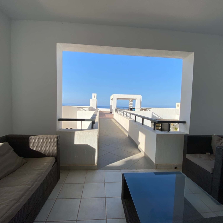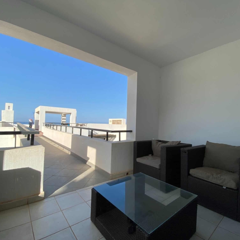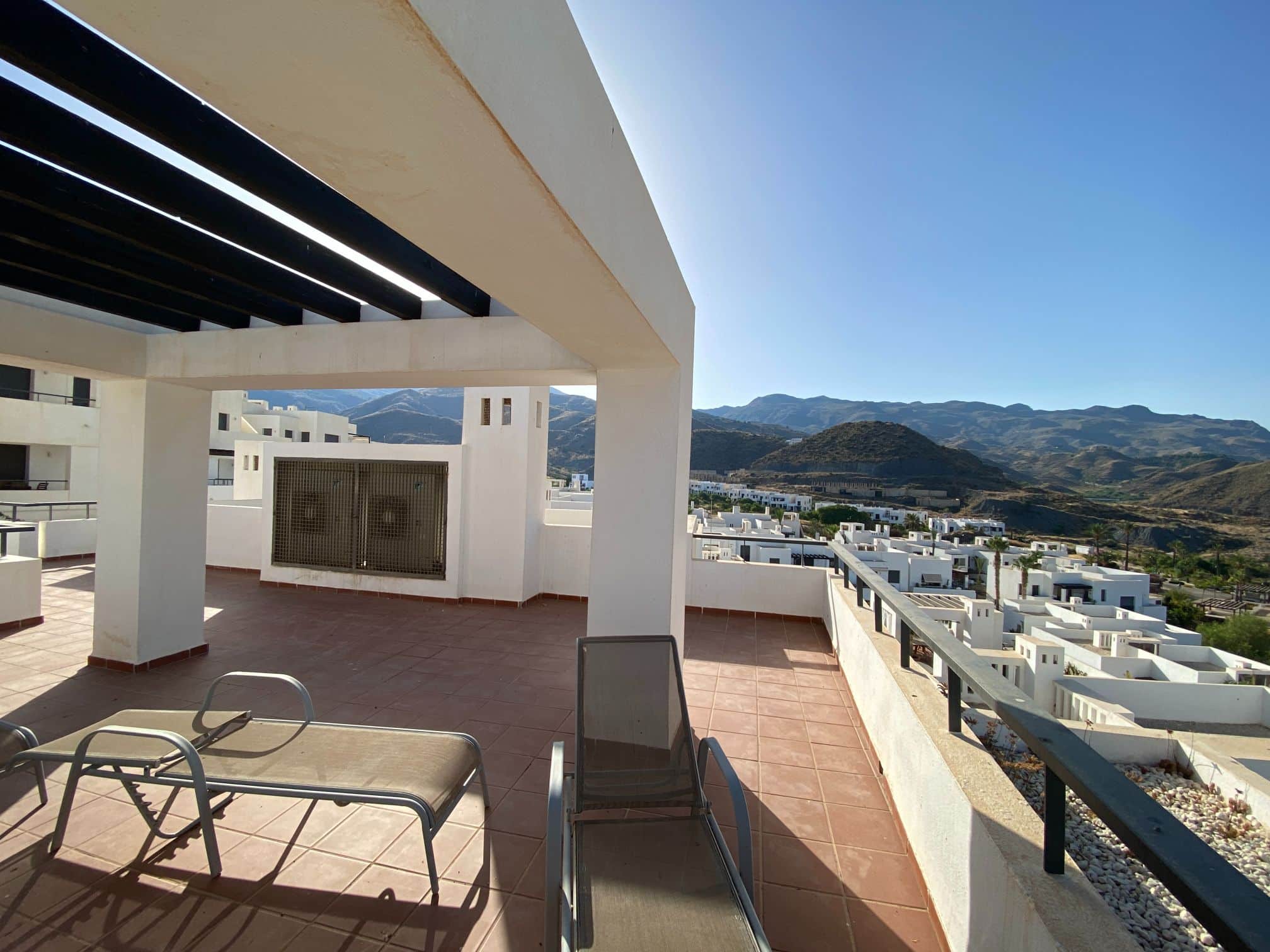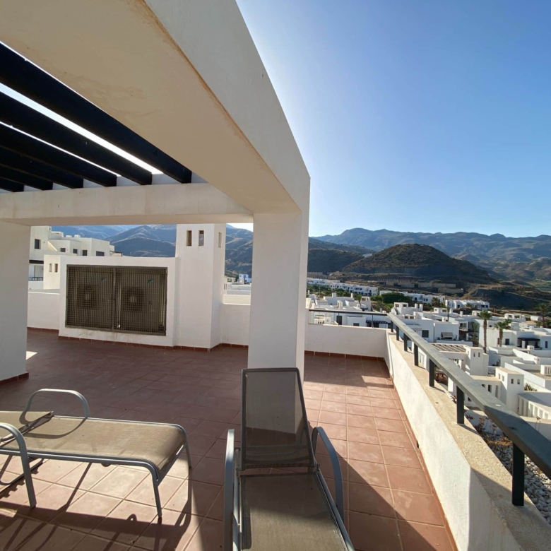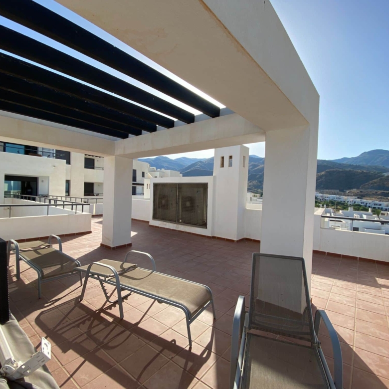 The terrace areas have sea and mountain views. Terrace furniture includes a table and 4 chairs. There are 5 swimming pools within 3 minutes walk of the apartment with one 40 yards away which can be seen down on from the terrace area in the apartment. The pools are shared and are not heated. The resort is built around the Playa Macenas Golf course.