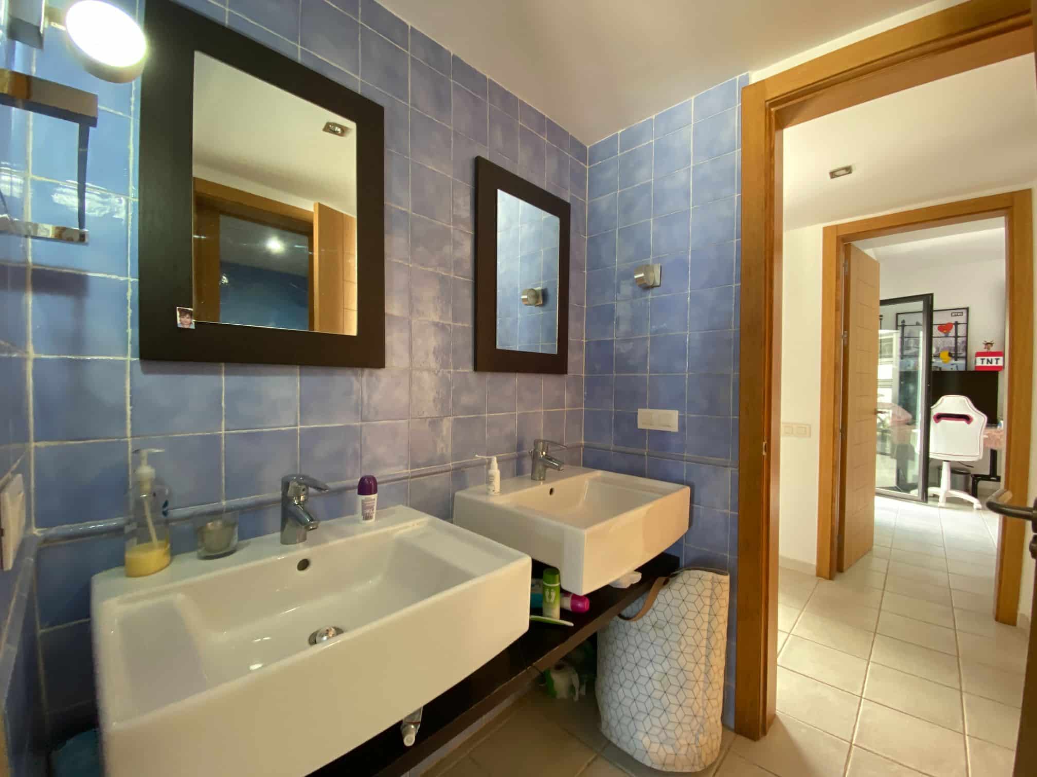 The master double bedroom is en-suite with bath, shower, bidet, w/c, and washbasin and has access to a terrace via patio doors. The second bedroom is also a double, next to the second bathroom which has a shower, w/c, and washbasin. The kitchen is fully fitted with an oven and hob, dishwasher, fridge freezer, microwave, and toaster. There is a separate utility room with a washing machine, ironing board, etc.