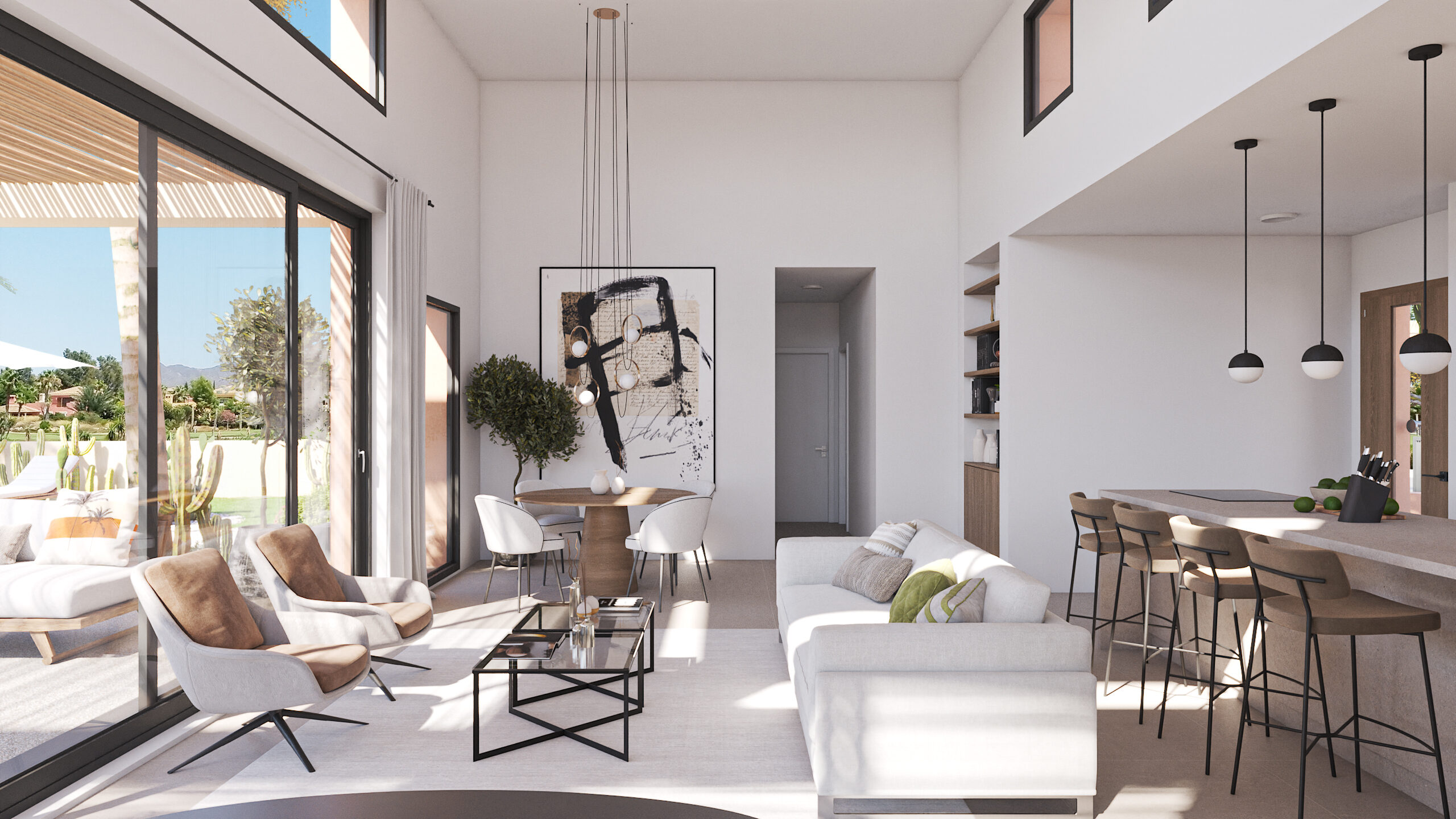 The bright and spacious interior seamlessly blends with the exterior through covered verandas, providing over 93m2 of combined living and dining space. The master bedroom opens onto the veranda and pool, offering a serene retreat. Each of the three bedrooms features its own en-suite bathroom.