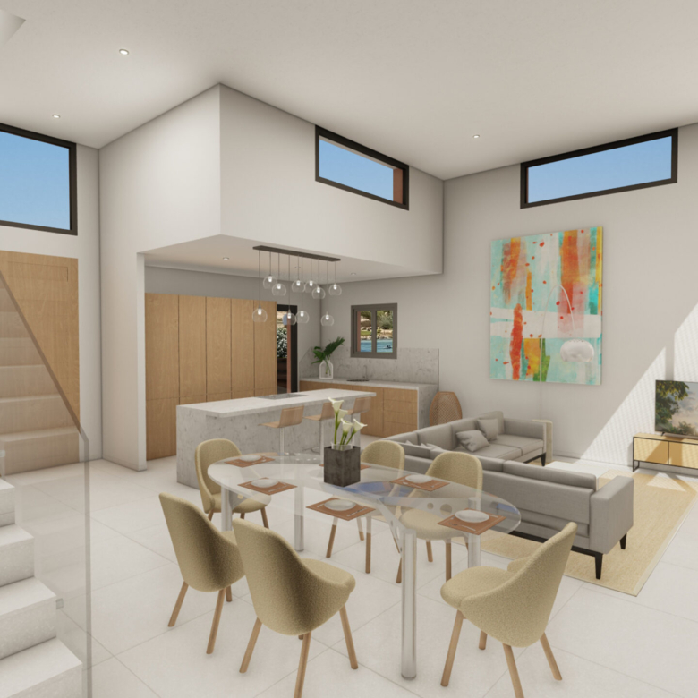 – Mechanical ventilation system and photovoltaic panels for eco-friendly living.