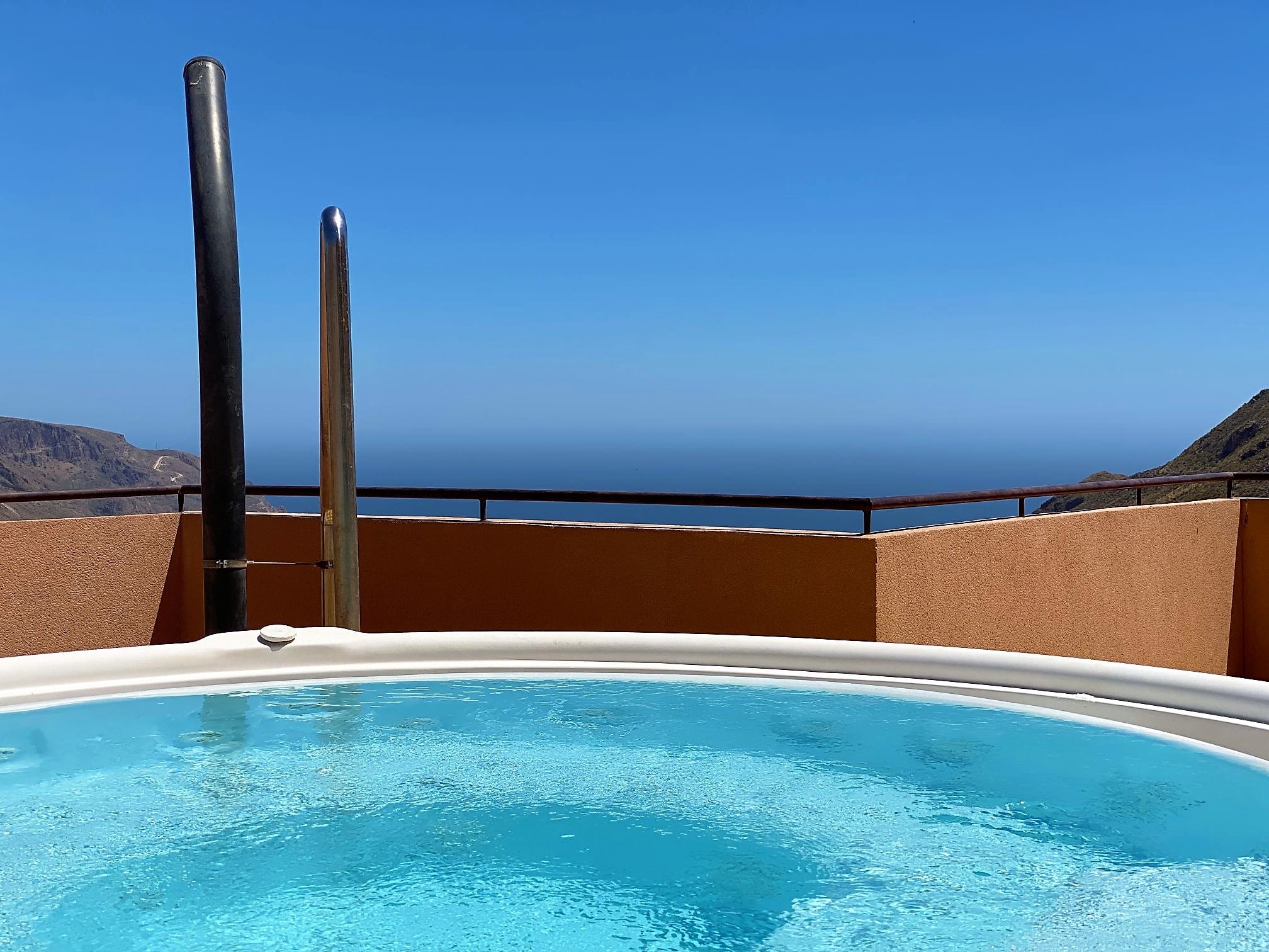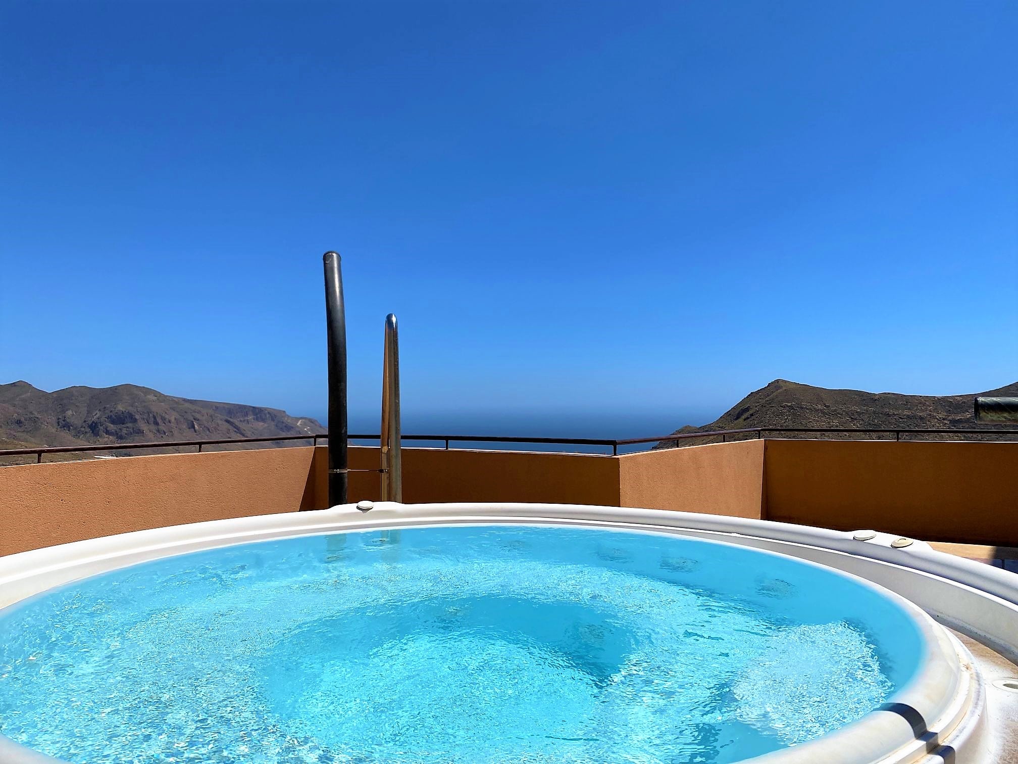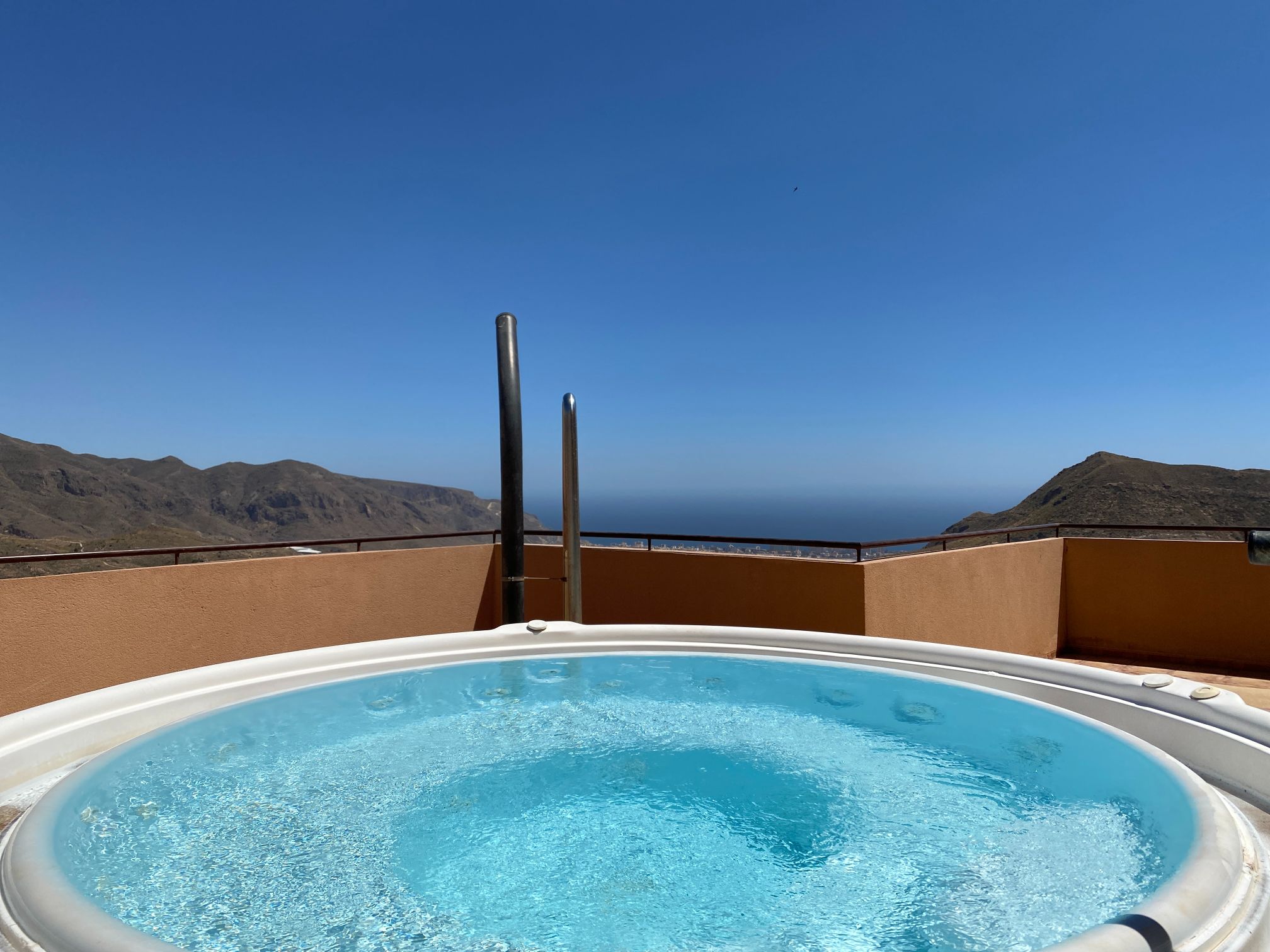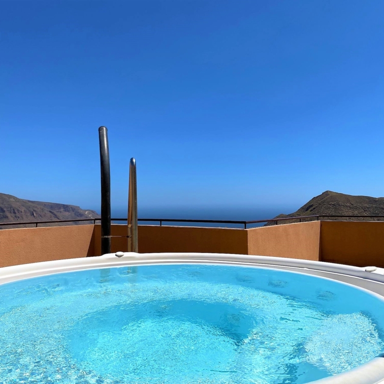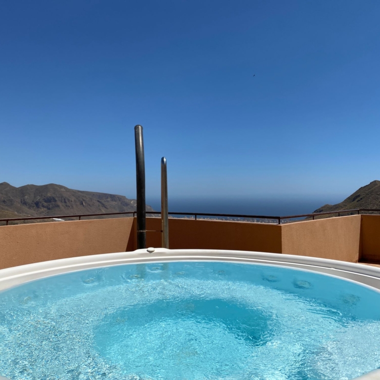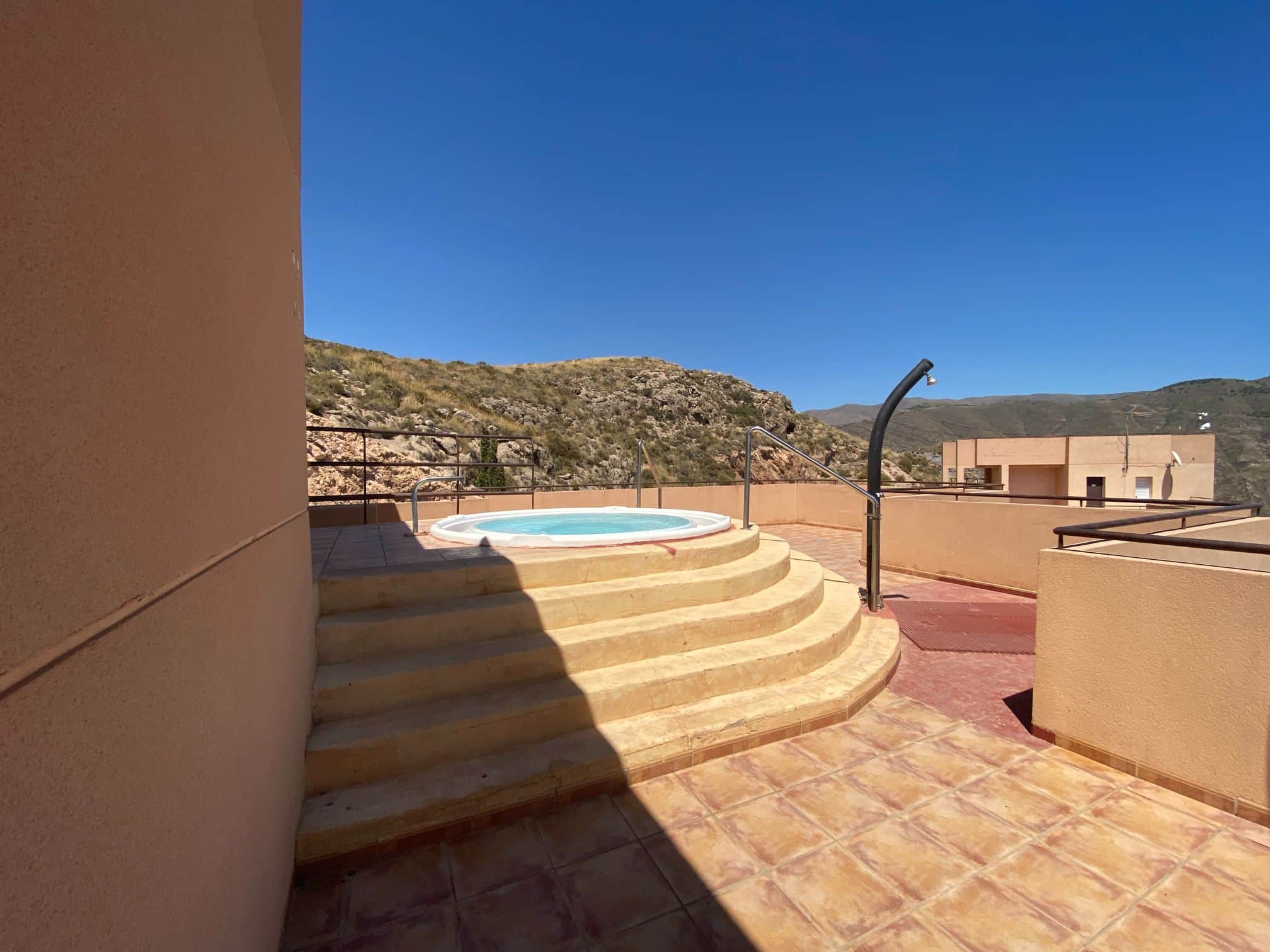 The apartment has access to a rooftop terrace and a jacuzzi