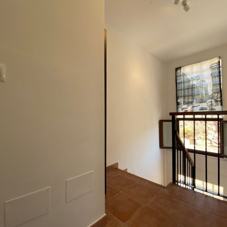 On the first floor, you will find two generous double bedrooms and a spacious balcony leading off from bedroom one where you can sit and watch the sunset behind the stunning village backdrop whilst sipping a cool glass of wine. Bedroom two looks over the olive fields and from here you can watch the sunrise in the mornings. Each bedroom has floor to ceiling double doors with Juliet balconies together with professionally fitted fly screens so they can be left open without any bugs joining you for bedtime! Both bedrooms come with ceiling fans and plenty of power sockets. A full bathroom with basin, WC, bidet and bath with shower over is also on this floor.