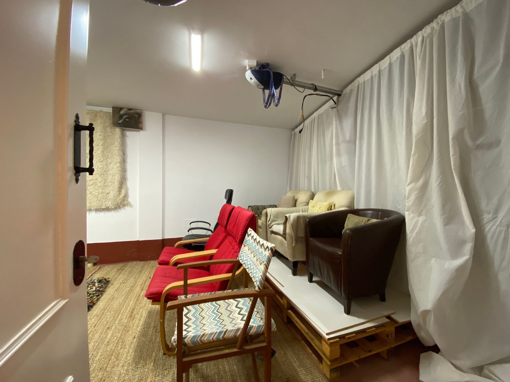 Descending down the stairwell again you’ll find the basement garage. A generous space that also contains a utility area with plumbing for a washing machine, also in this area is the hot water tank and deep freeze. The twist in this house is that this garage area has been converted into an 8-seated mini cinema where the current owner and friends enjoy big-screen movies! If you’re not a movie buff then this area offers a lot of scope for alternative uses – some may even park a car in it!
