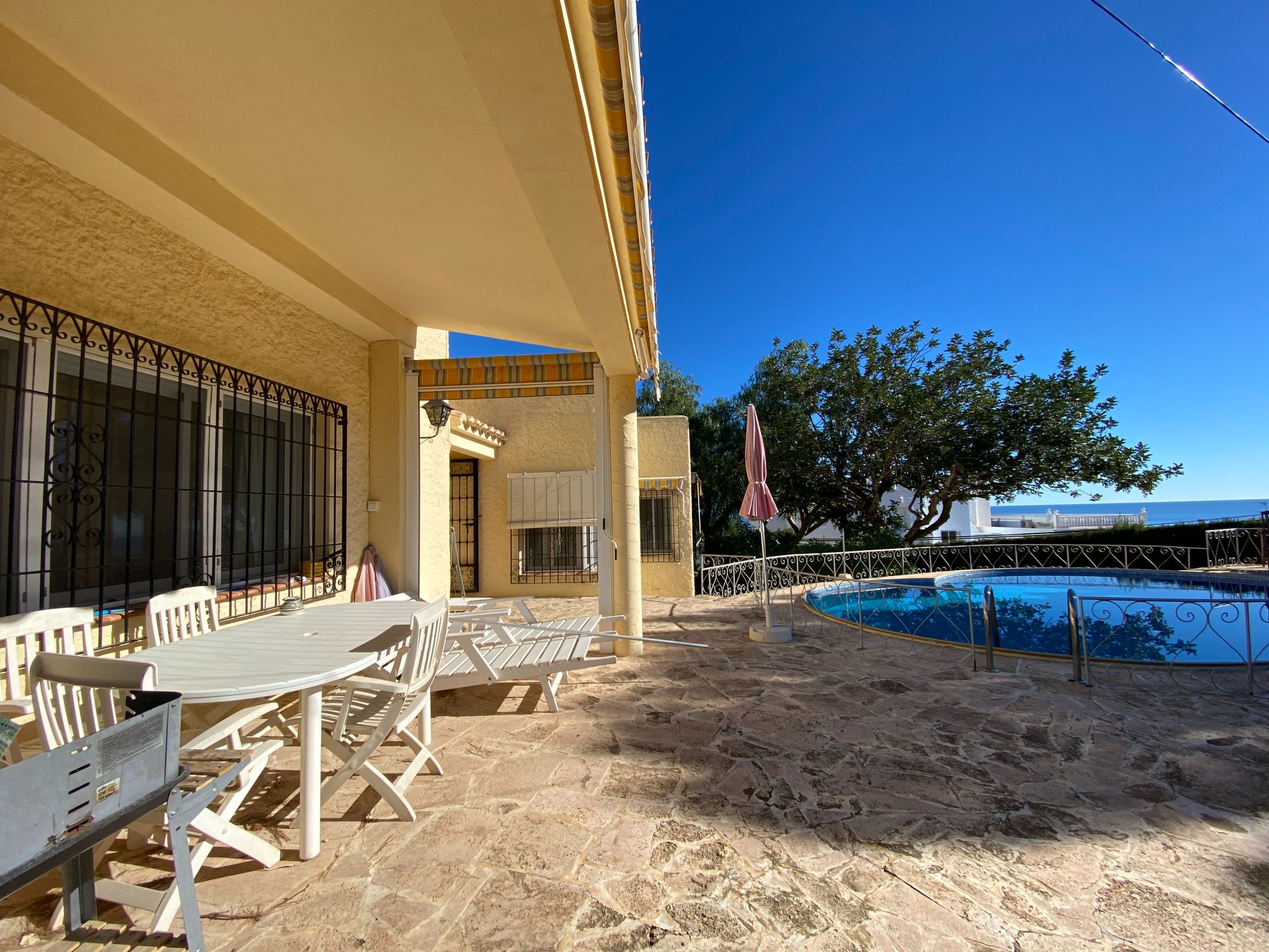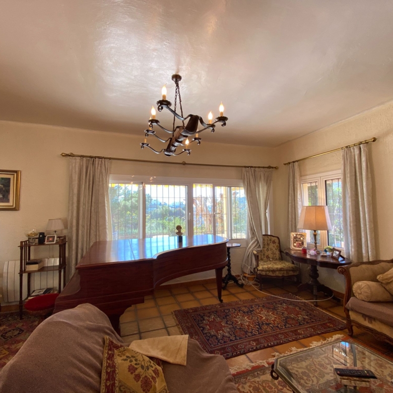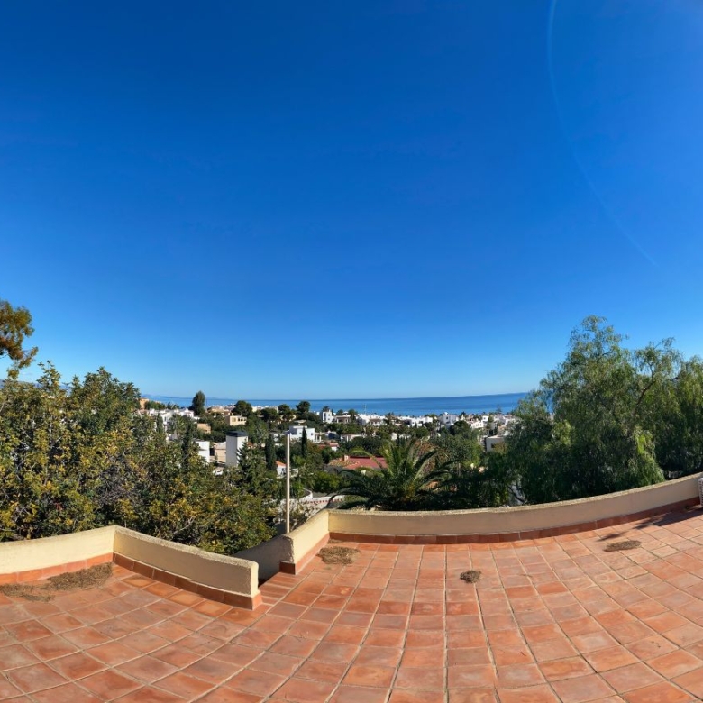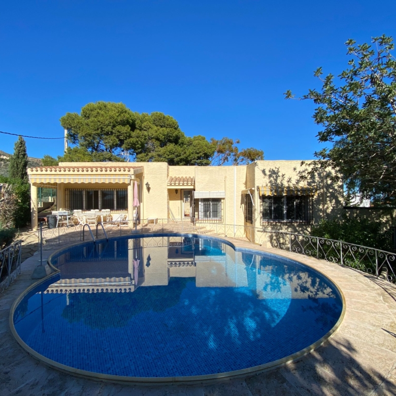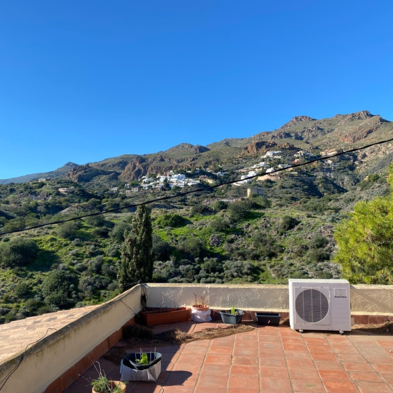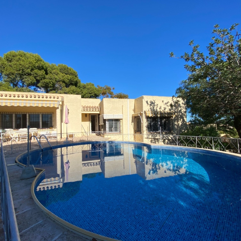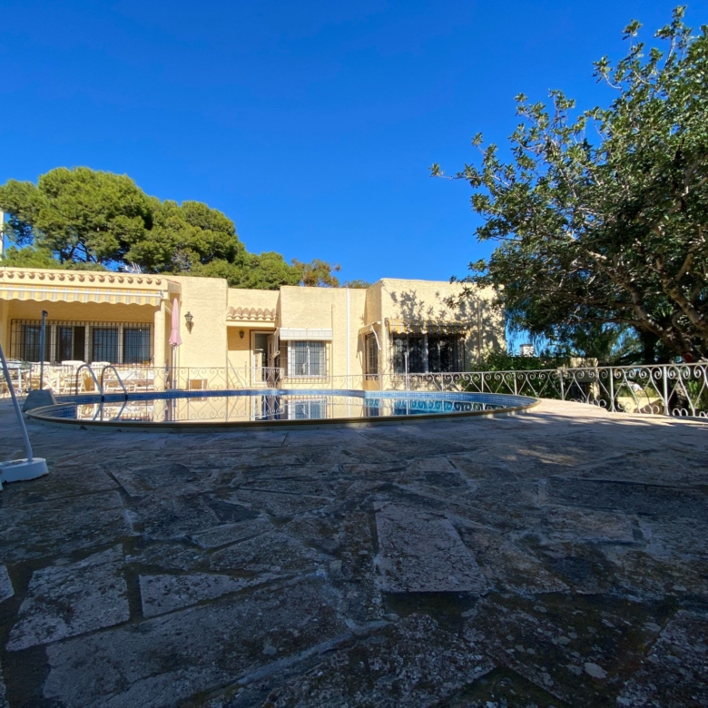 This a unique home with a guest apartment that benefits from spectacular panoramic views of the mountains and the Mediterranean Sea and is located in a unique residential area in the hills of Mojácar Spirit. The villa with 300 m2 is located on a beautiful plot of 1100 m2 against the mountains overlooking the Mediterranean. At the end of a small cul-de-sac, enter the property through automatic doors. There is a garage and private parking for three or four vehicles. Rock gardens surround the whole property with beautiful gardens. A large pool is located at the back of the villa. Inside there is a large dining room and living room with spectacular sea views from the side windows. From the dining room, you access an elegant and spacious kitchen. Outside, it has an intimate dining room surrounded by a beautiful garden. The first floor has two large bedrooms with access to a large terrace where you can enjoy the magnificent views again. The luxurious and spacious master bedroom benefits from a private bathroom, There is electricity and mains water, as well as a water tank and a well for the garden and the pool, internet, telephone and electric heating. It is a family home located in an ideal place with total privacy.