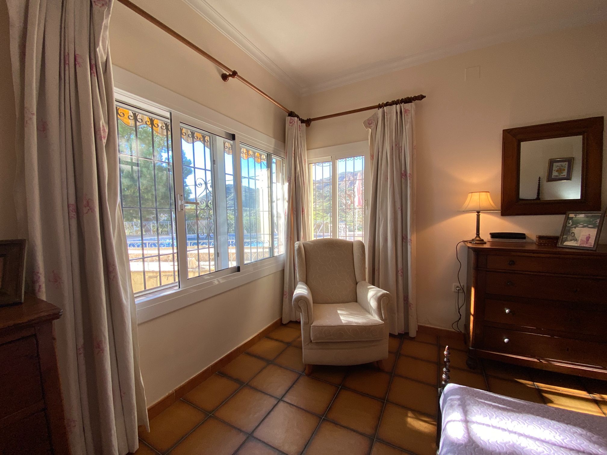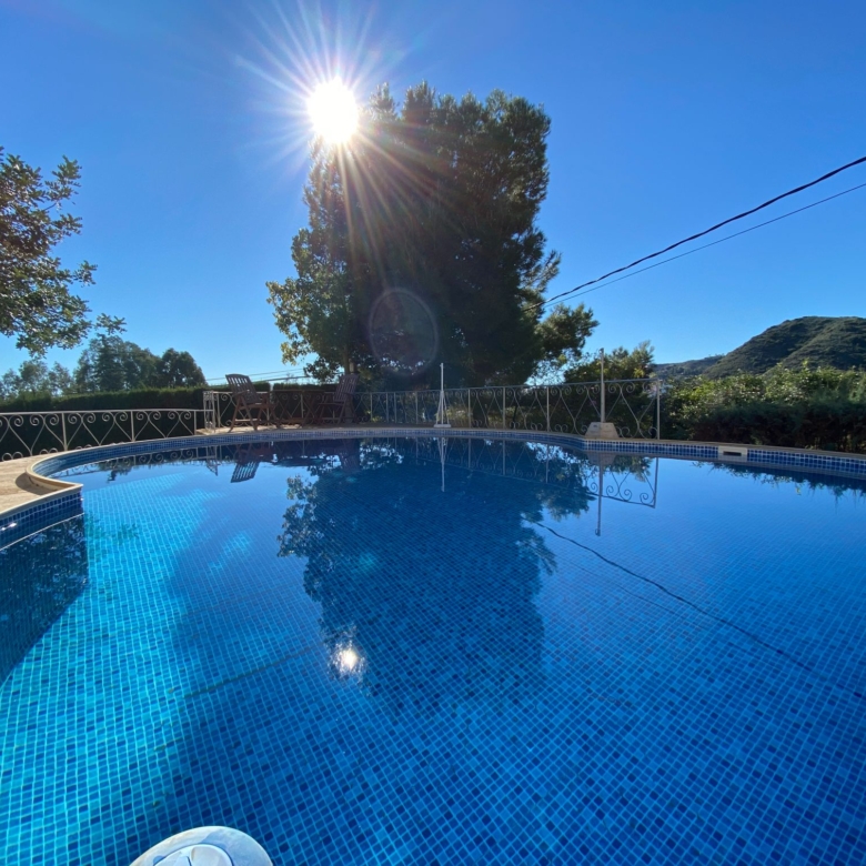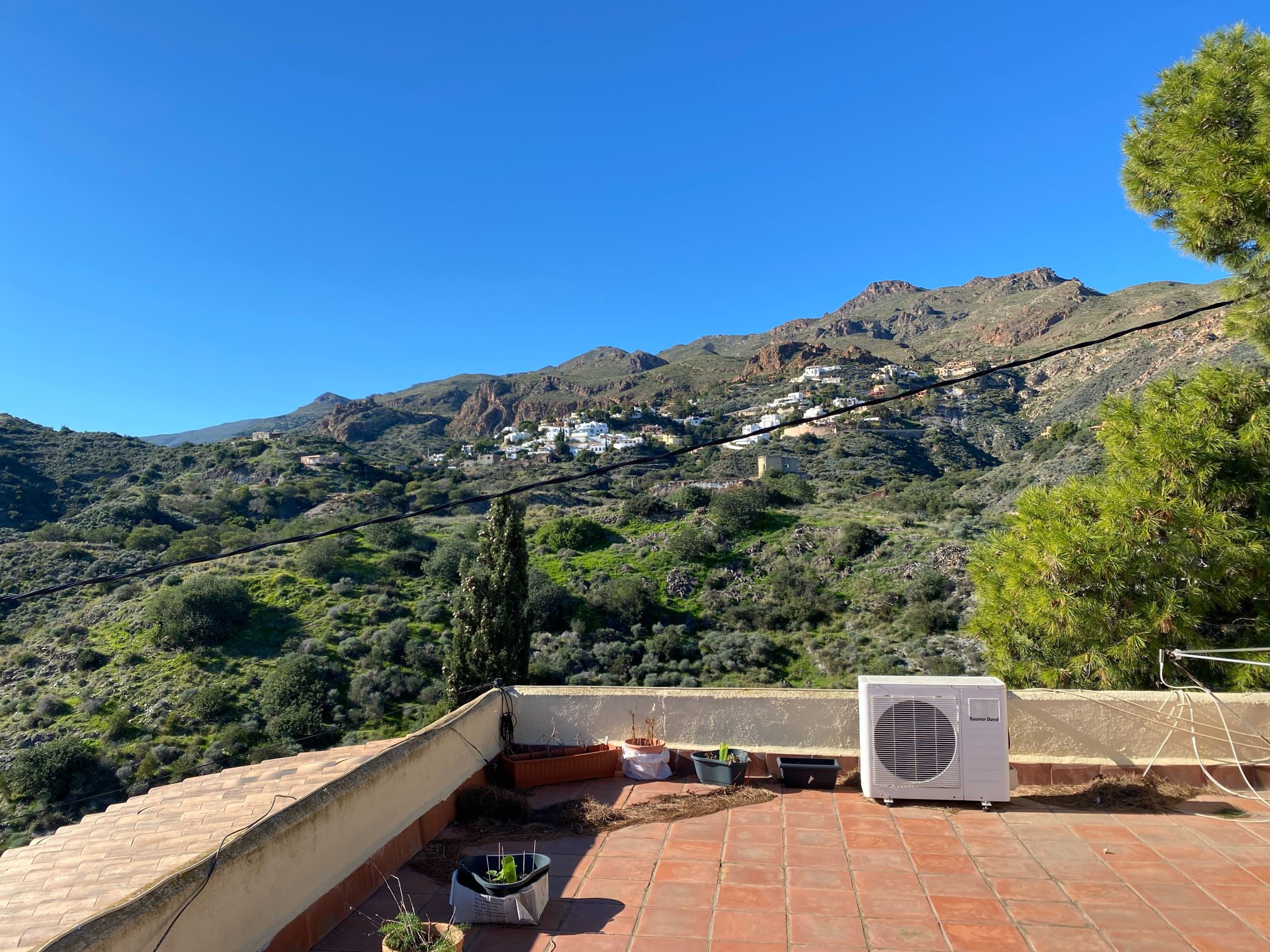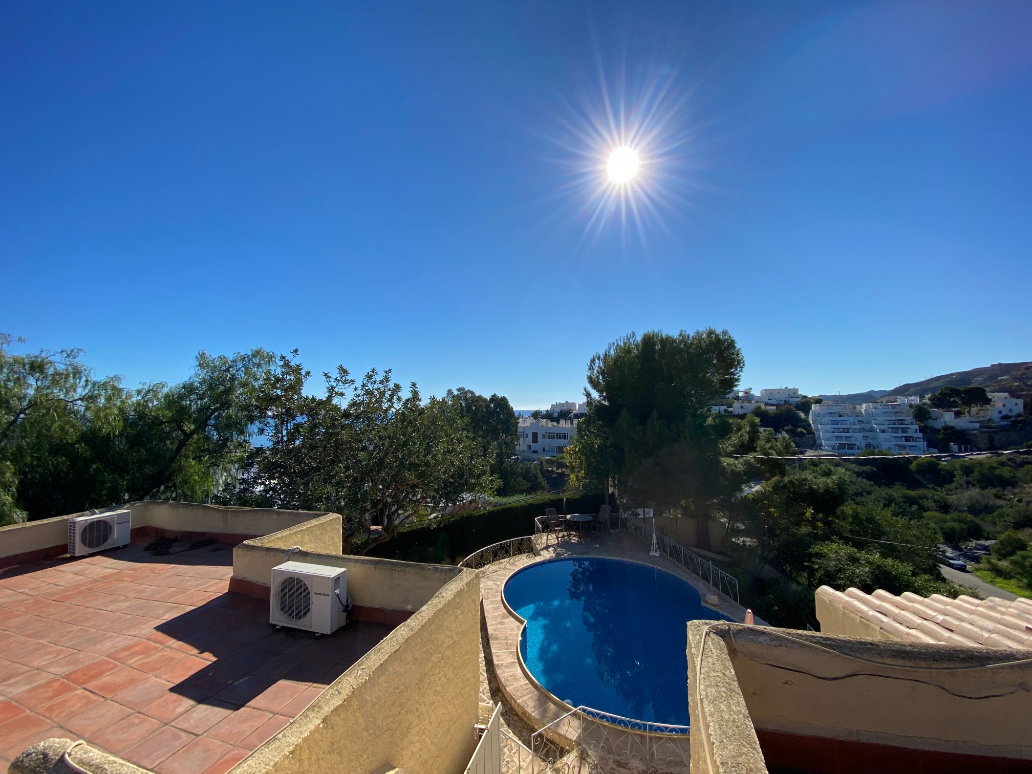 This a unique home with a guest apartment that benefits from spectacular panoramic views of the mountains and the Mediterranean Sea and is located in a unique residential area in the hills of Mojácar Spirit. The villa with 300 m2 is located on a beautiful plot of 1100 m2 against the mountains overlooking the Mediterranean. At the end of a small cul-de-sac, enter the property through automatic doors. There is a garage and private parking for three or four vehicles. Rock gardens surround the whole property with beautiful gardens. A large pool is located at the back of the villa. Inside there is a large dining room and living room with spectacular sea views from the side windows. From the dining room, you access an elegant and spacious kitchen. Outside, it has an intimate dining room surrounded by a beautiful garden. The first floor has two large bedrooms with access to a large terrace where you can enjoy the magnificent views again. The luxurious and spacious master bedroom benefits from a private bathroom, There is electricity and mains water, as well as a water tank and a well for the garden and the pool, internet, telephone and electric heating. It is a family home located in an ideal place with total privacy.
